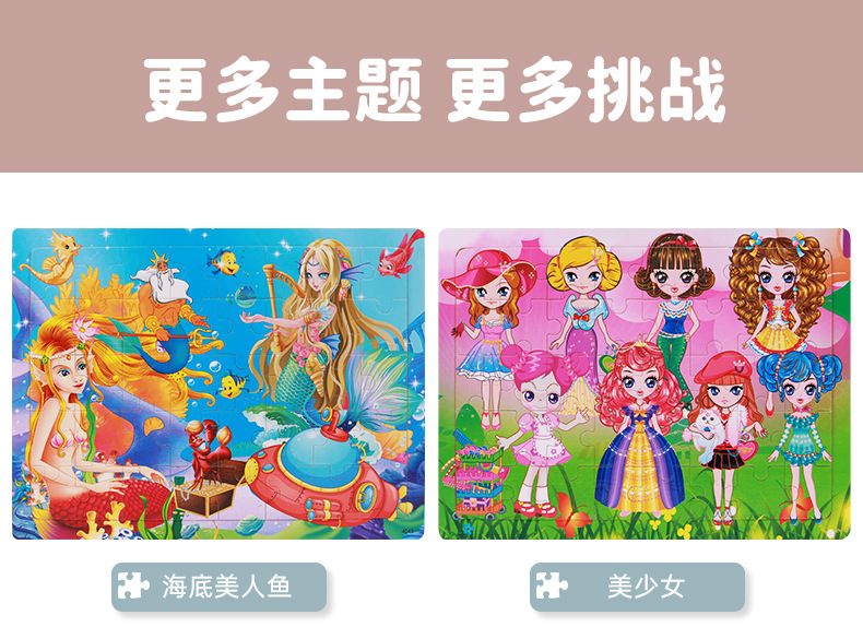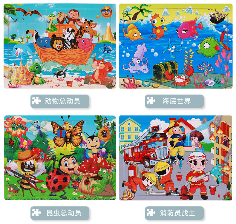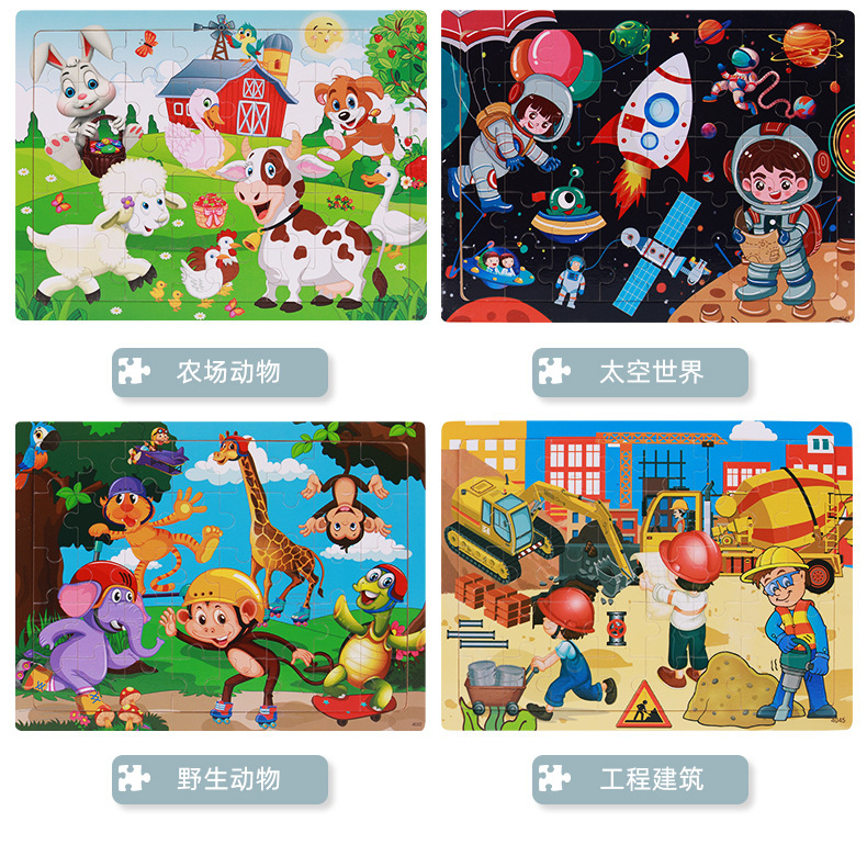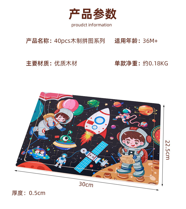 Choice Young Kidsren's Wooden Puzzle Puzzle 40 Pieces Cartoon Theme Animal Space Enlightenment Early Education Educational Toy Gift