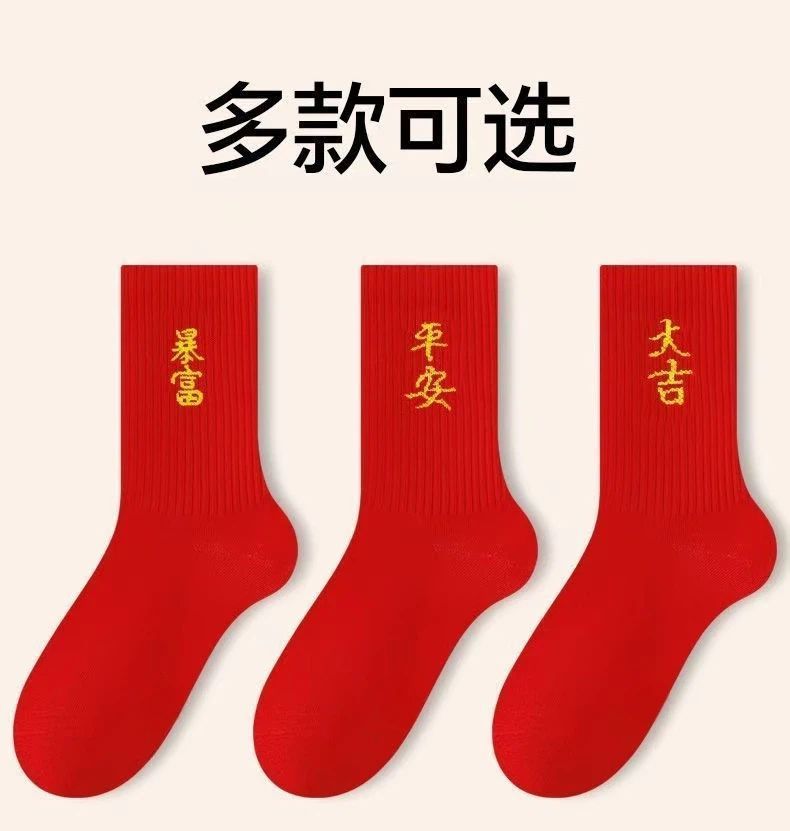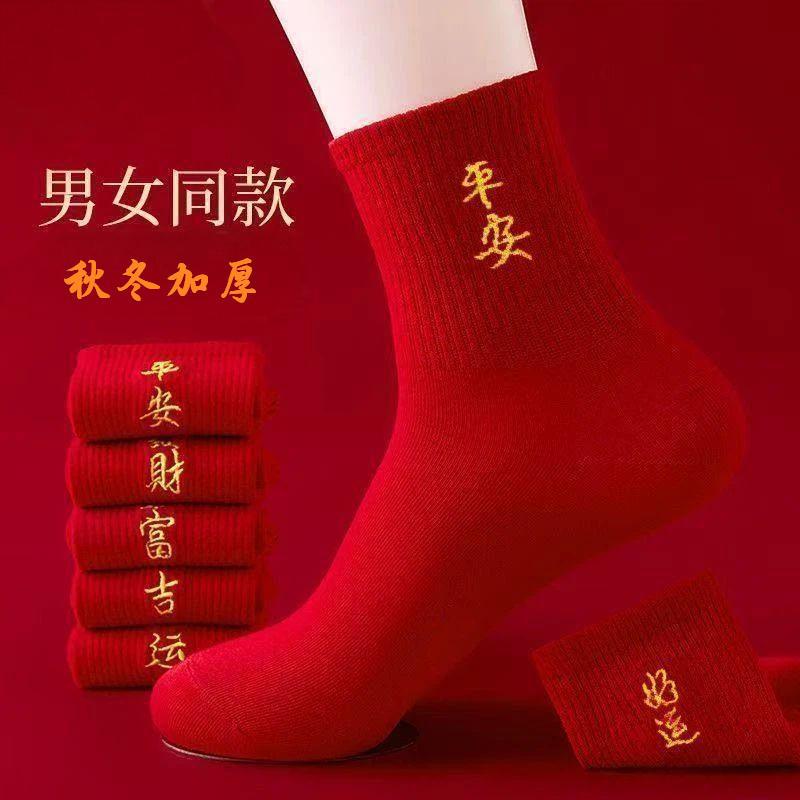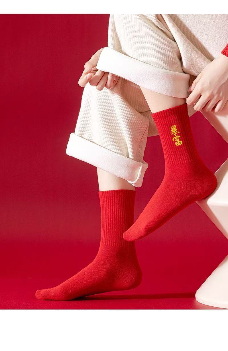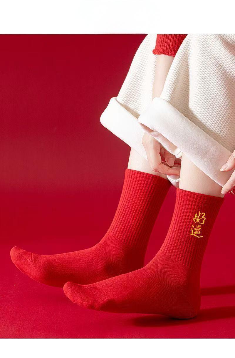 Choice Year of the Horse Red Socks for Men and Women, New Year Socks for Couples, Zodiac Year Red Socks, Mid-Tube Autumn and Winter Red Socks, Cotton Socks with the Character "Fu"