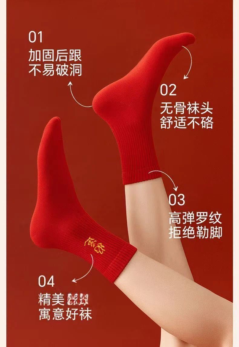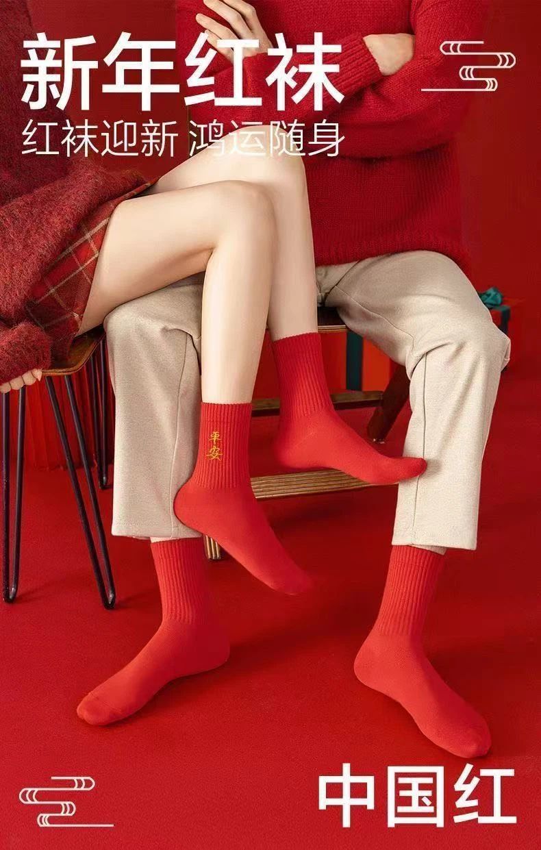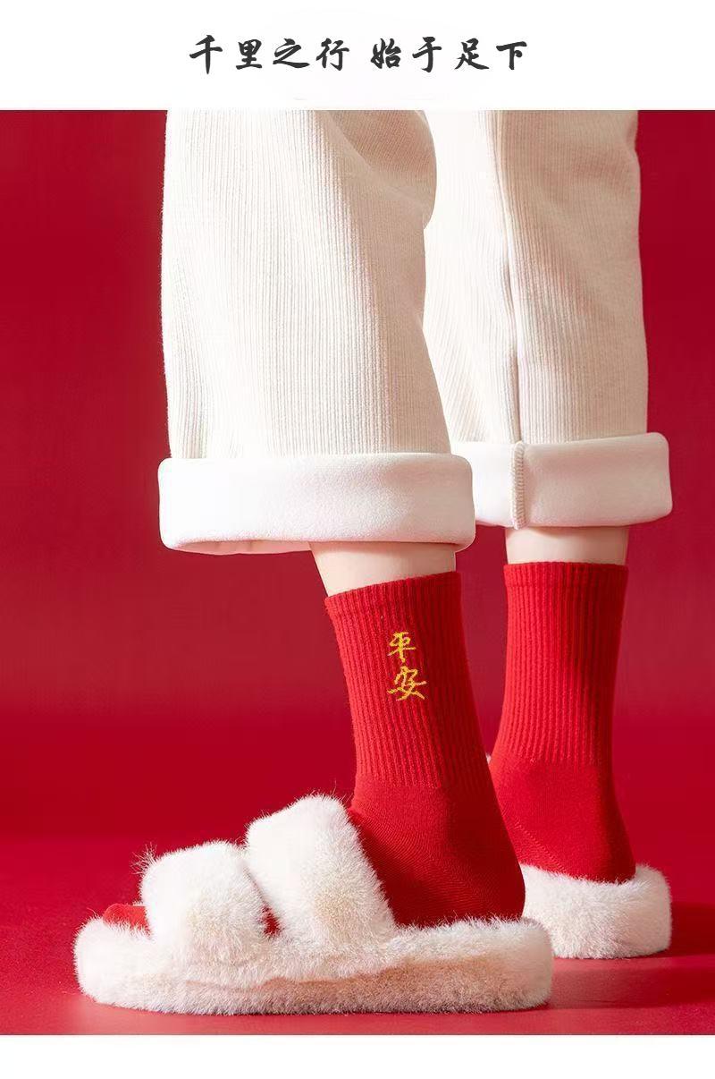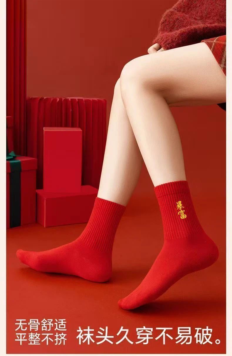 Choice Year of the Horse Red Socks for Men and Women, New Year Socks for Couples, Zodiac Year Red Socks, Mid-Tube Autumn and Winter Red Socks, Cotton Socks with the Character "Fu"