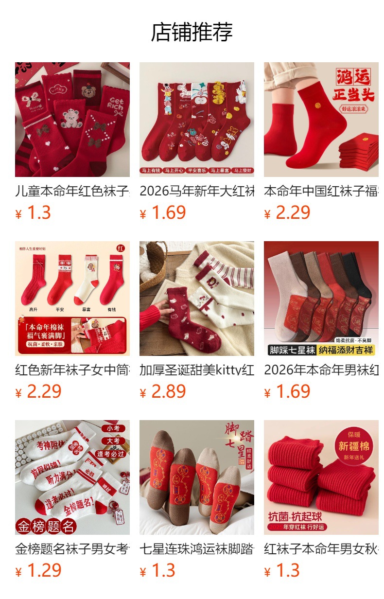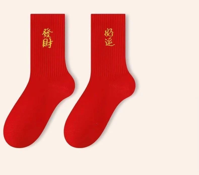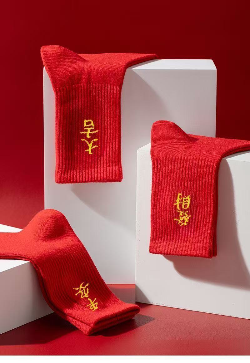 "men's and women's year of the horse new arrival 2026 year of the zodiac festive fall and winter long tube fu character big red red socks pure cotton sweat-absorbent socks"