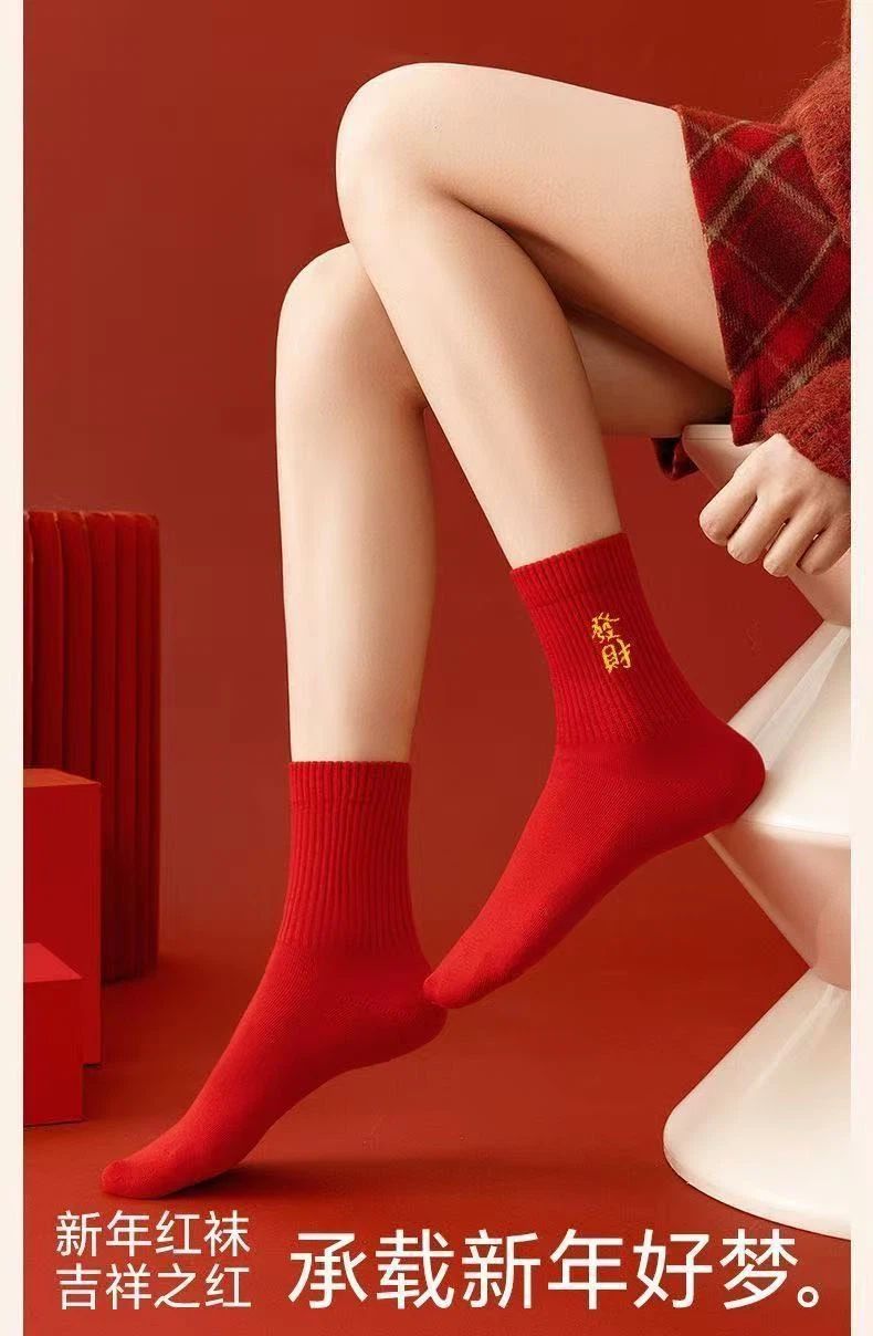 Red lucky socks for the year of the zodiac 2026 year of the horse new year socks wedding red knee socks cotton socks non-embroider red socks