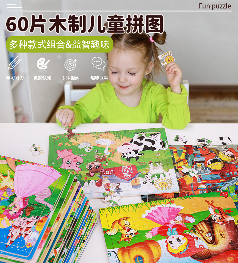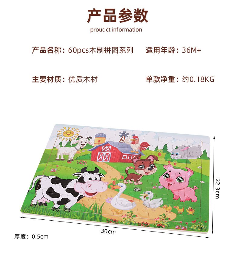 Choice Young Kidsren's 60-Piece Puzzle Cartoon Theme Animal Digital Letter Cognitive Learning Early Education Educational Toys