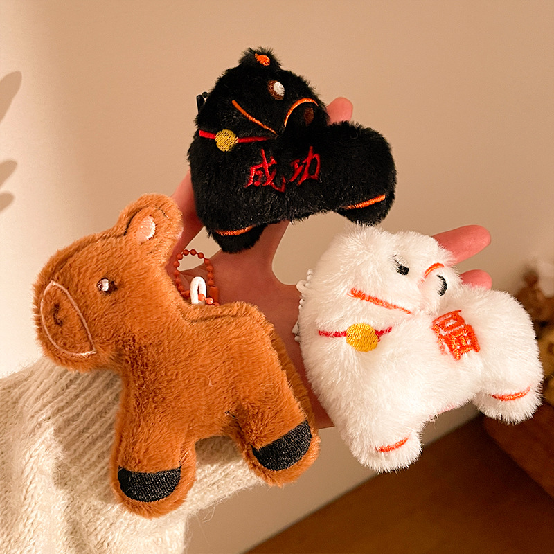 Creative New Year Limited Edition Year of the Horse Mascot Plush Keychain Cute Cartoon Doll Student Bag Pendant Souvenir