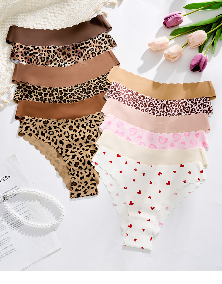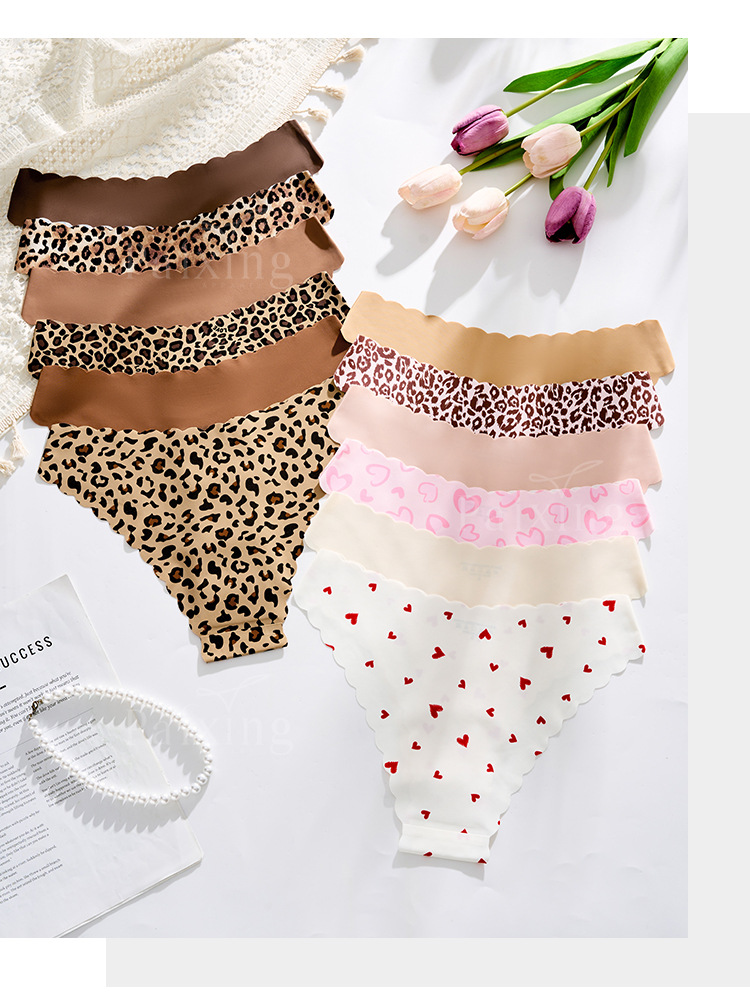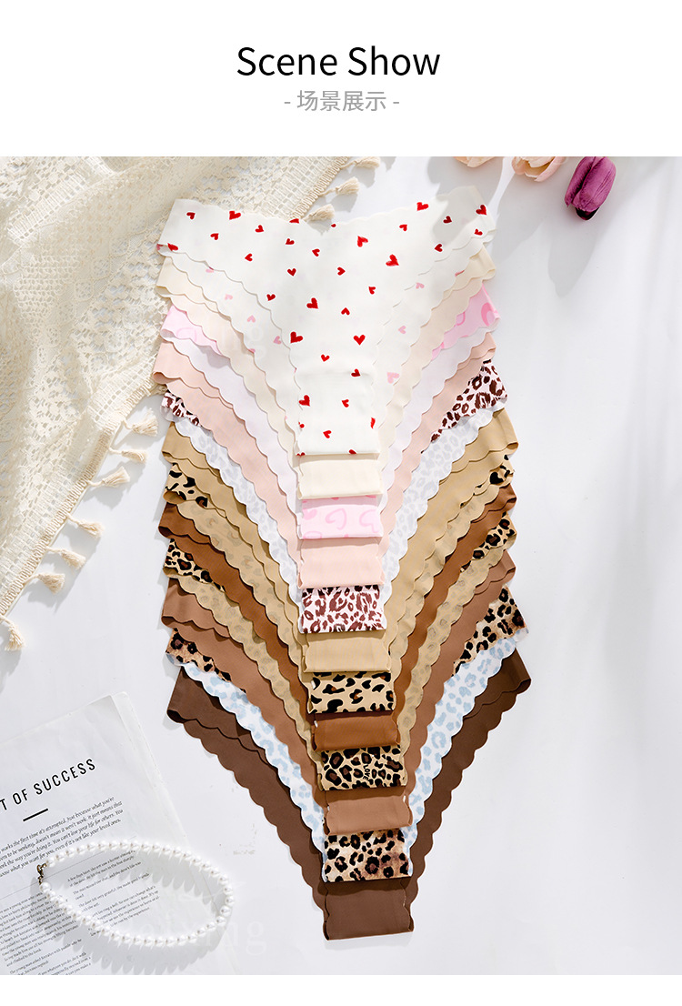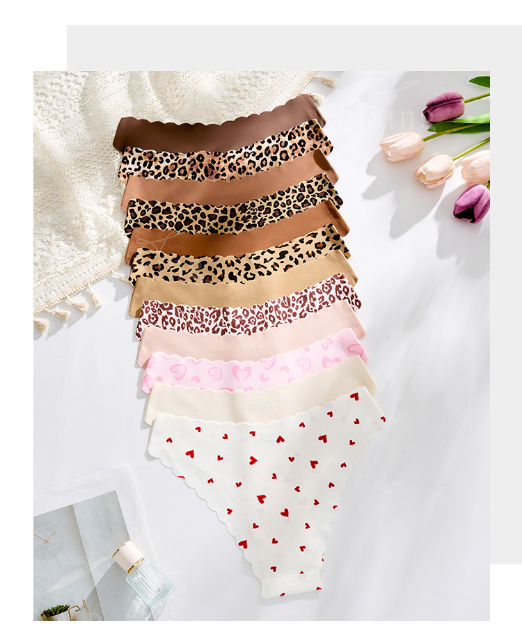 European and American Cross-Border Ice Silk Seamless Women's Underwear Sexy High Elastic Wavy Edge Comfortable Breathable Pure Cotton Crotch Briefs