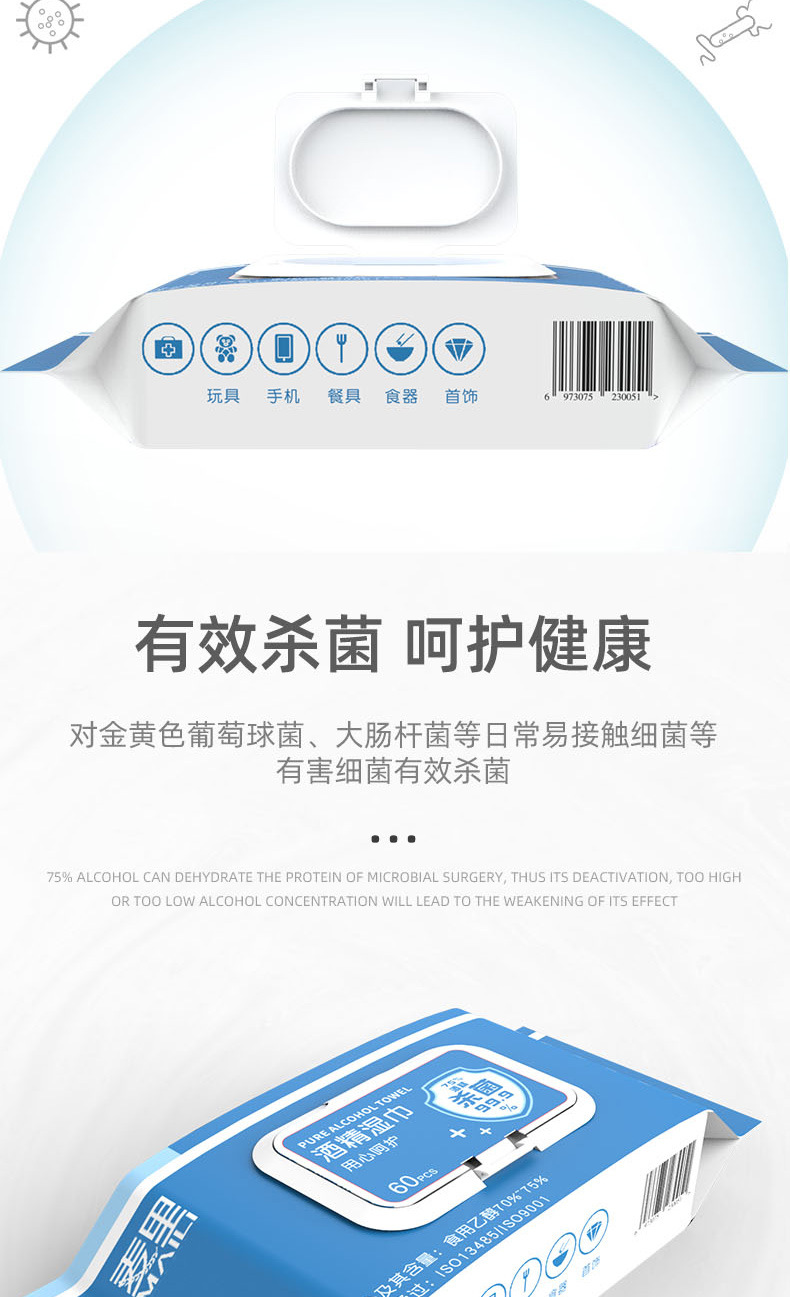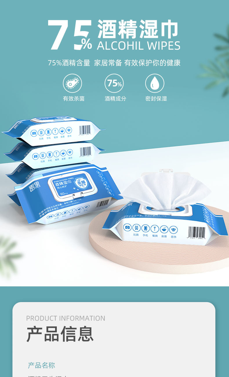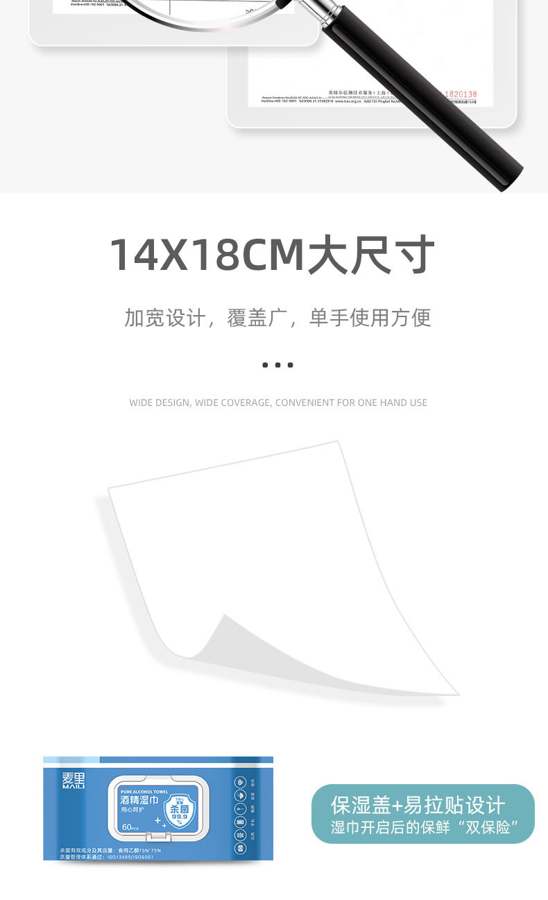Miley 75% alcohol wipes 75 degrees 60 pumping household large package disposable cleaning sterilization wipes factory wholesale