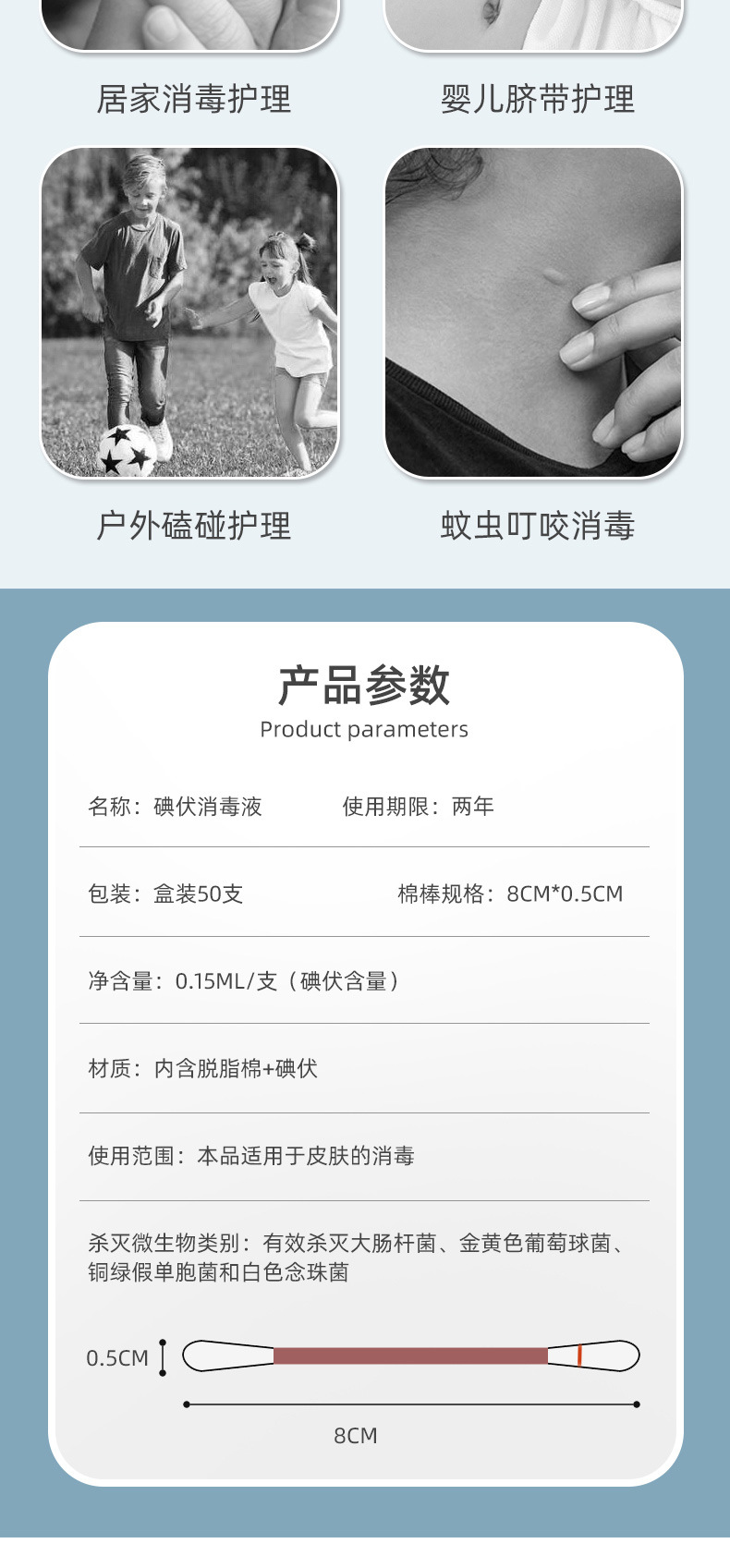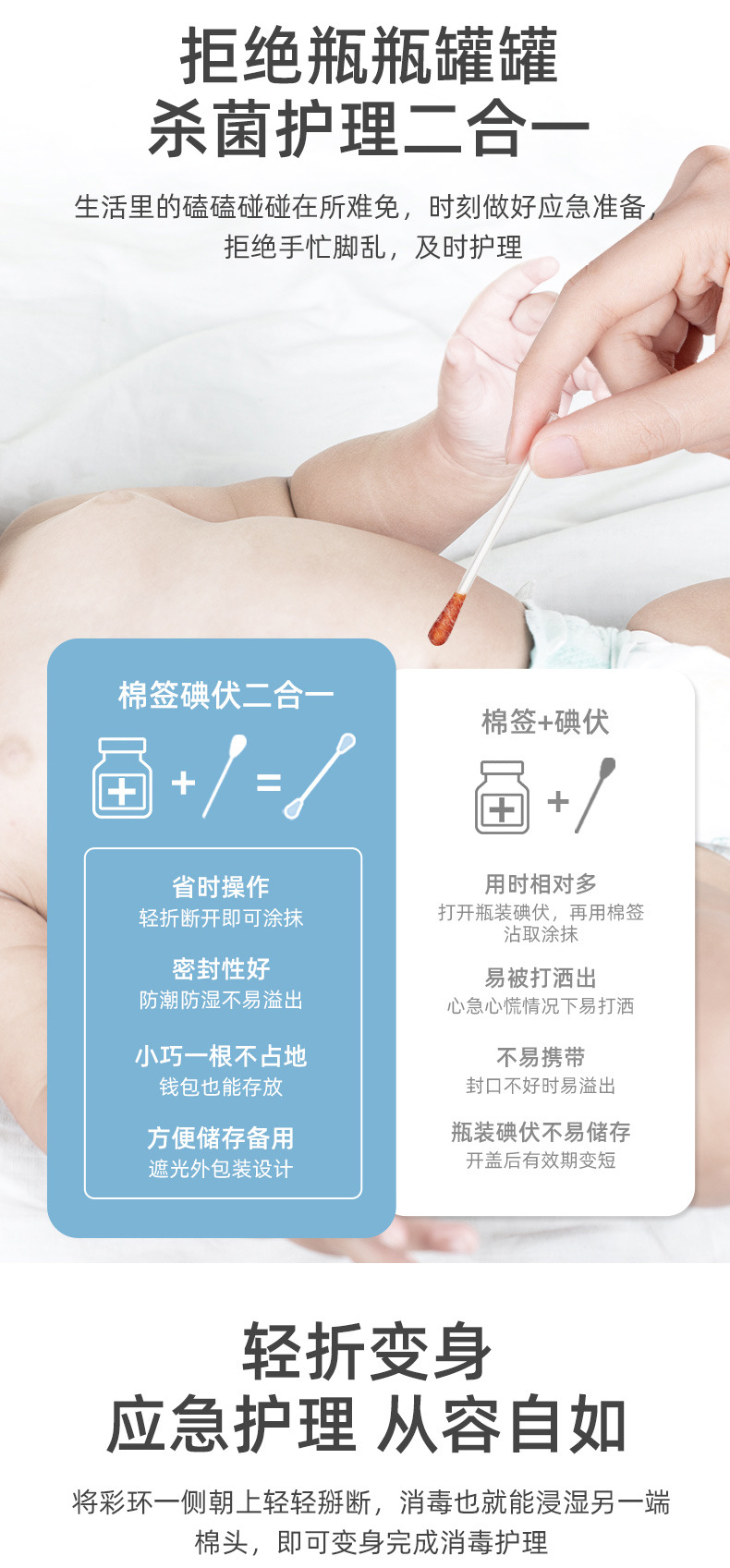 Wholesale baby broken iodophor cotton swab disposable disinfection sterilization cotton swab portable boxed 50 household manufacturers