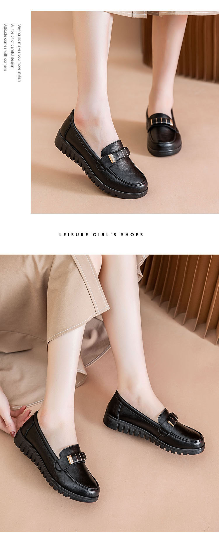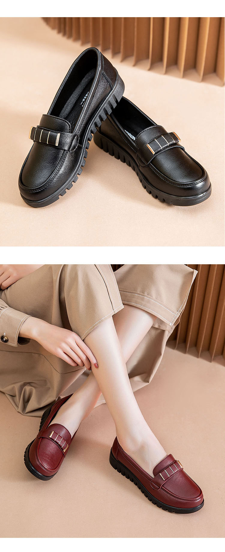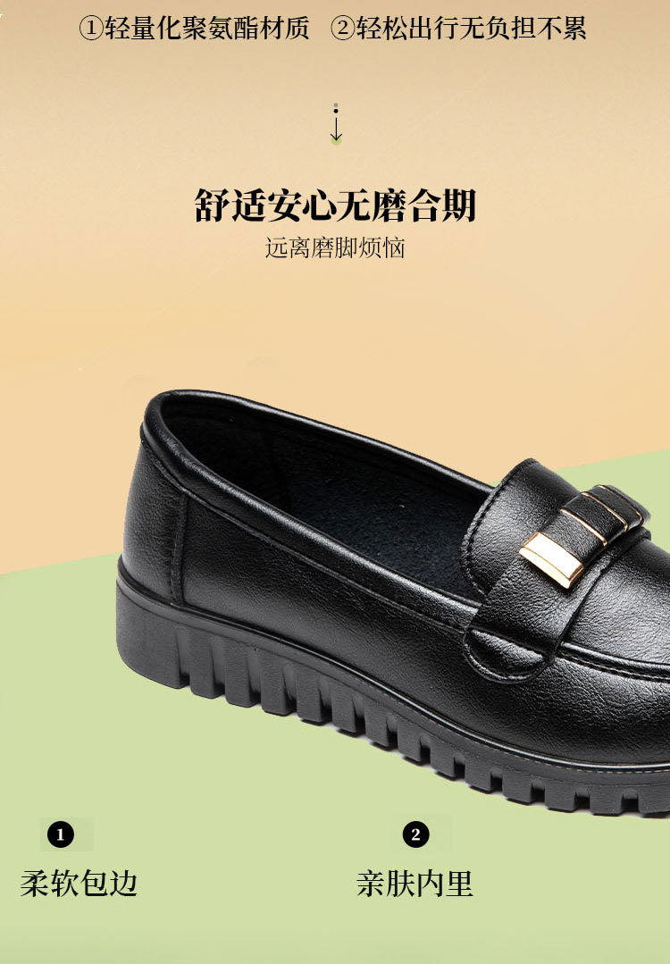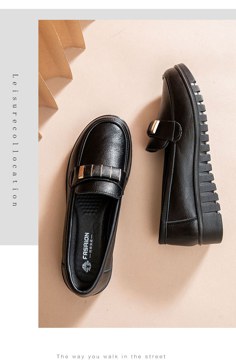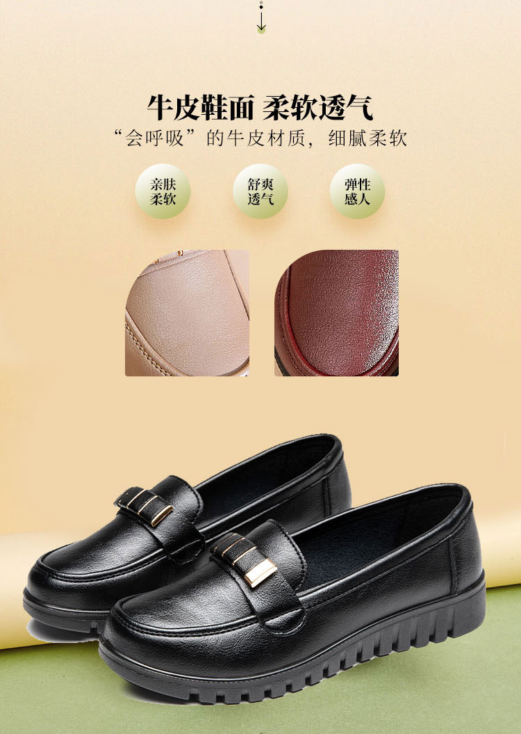 Genuine Leather Soft-Soled Non-Slip Shoes for Middle-Aged and Elderly Women, Flat-Soled Work Shoes, Black Casual, Comfortable, Versatile, and Not Tiring on the Feet