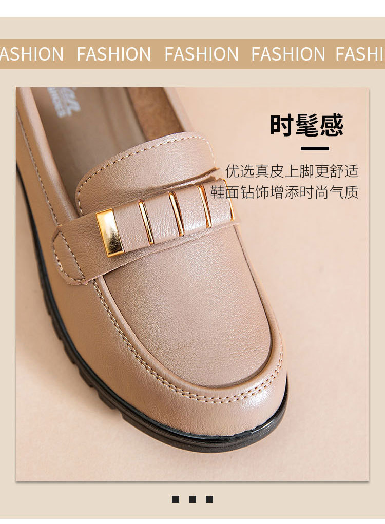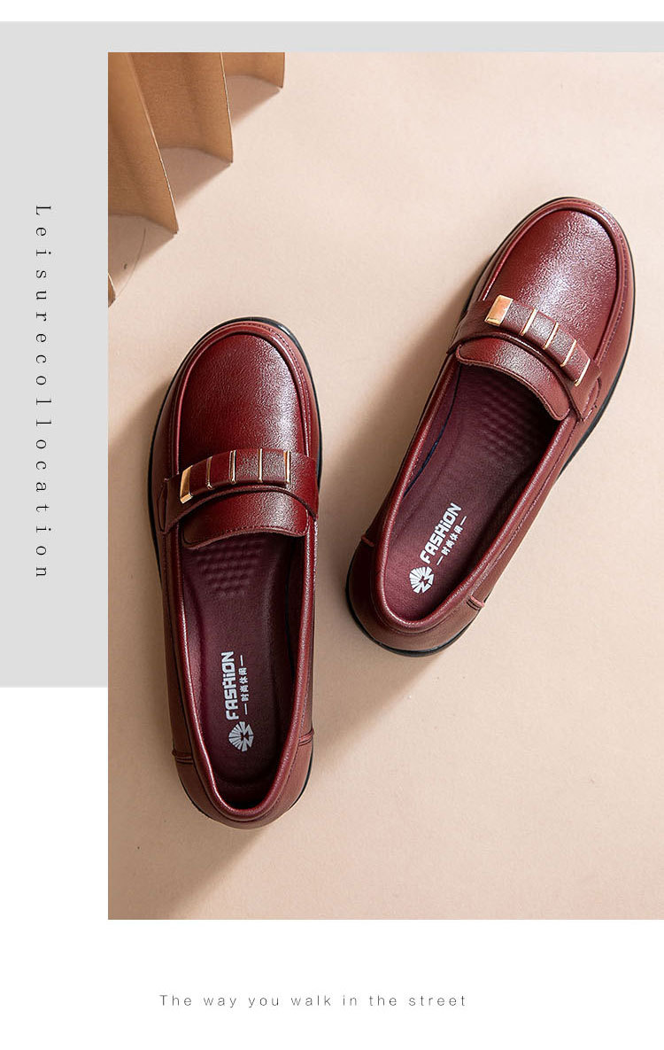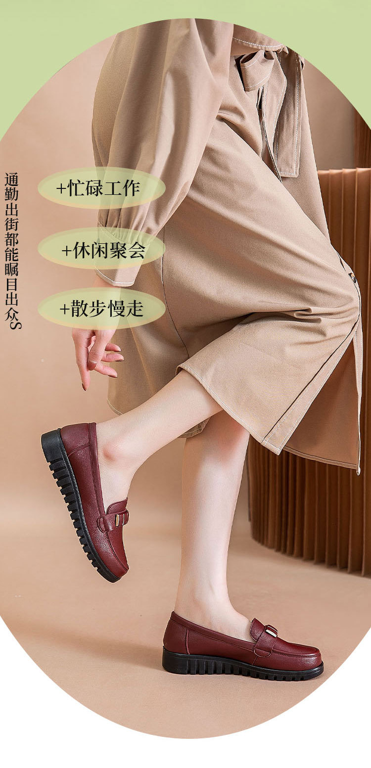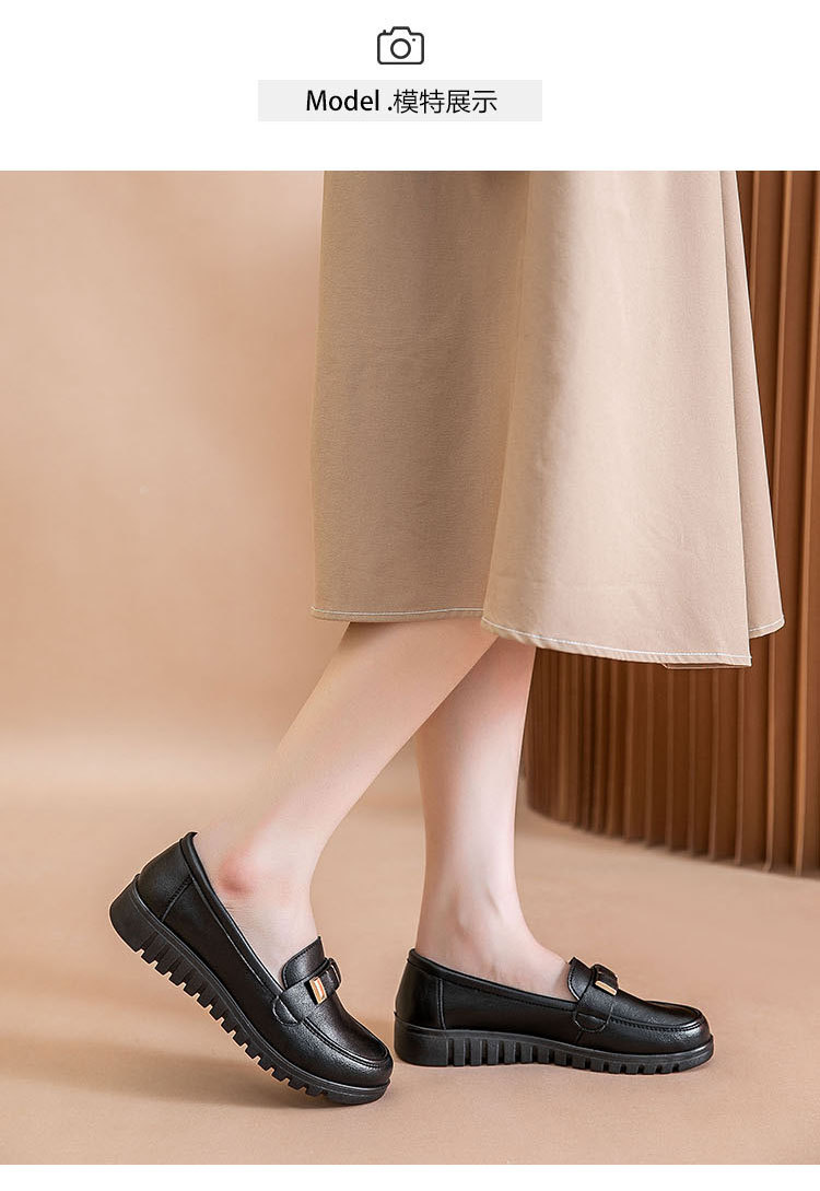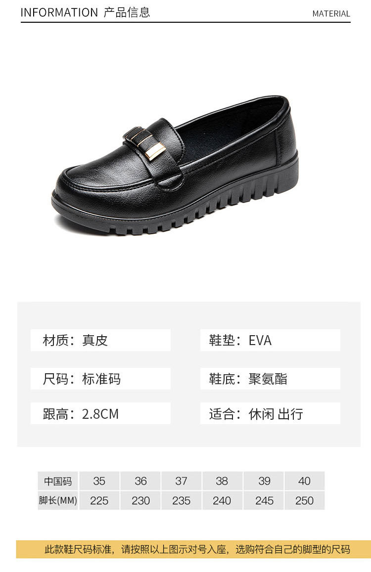Genuine Leather Soft-Soled Non-Slip Shoes for Middle-Aged and Elderly Women, Flat-Soled Work Shoes, Black Casual, Comfortable, Versatile, and Not Tiring on the Feet