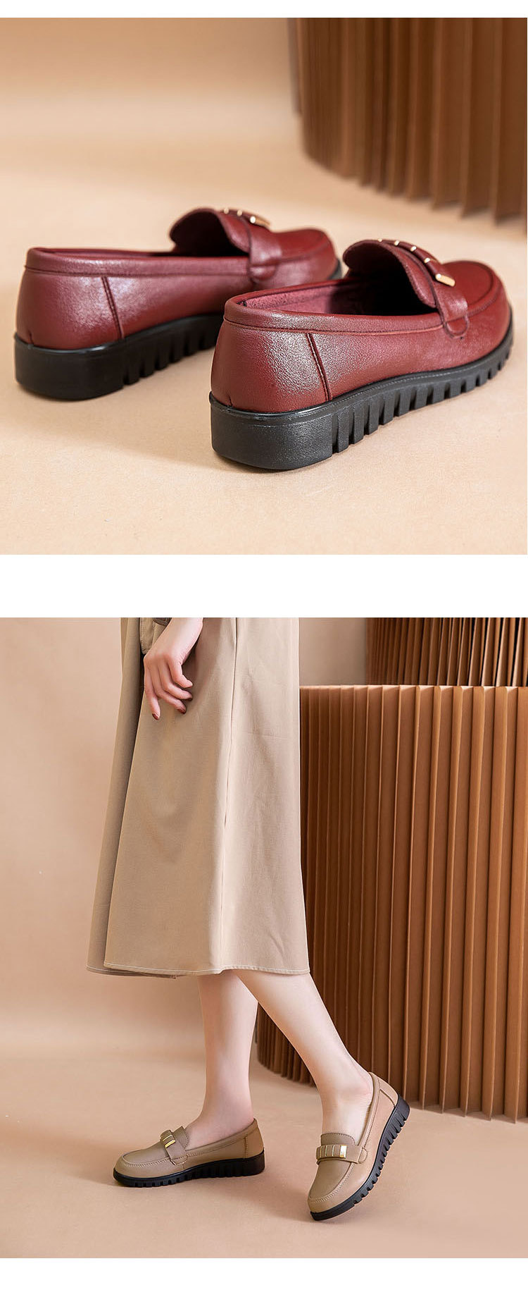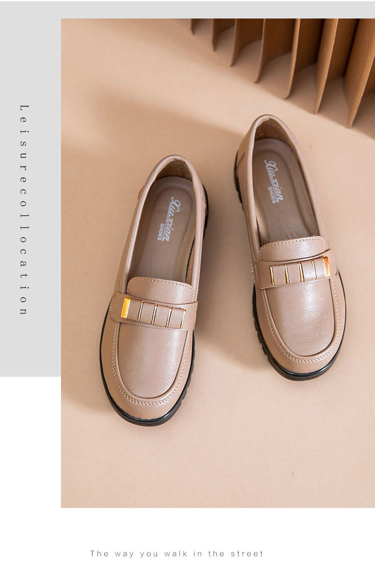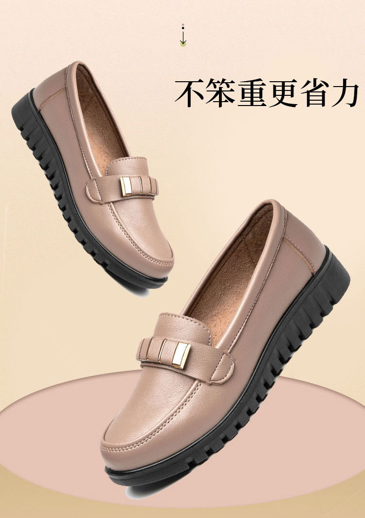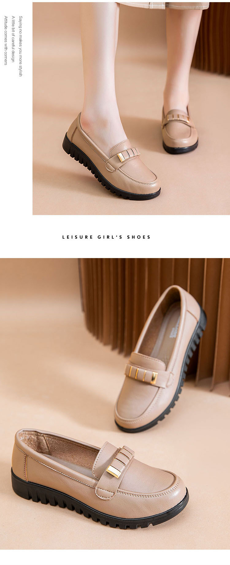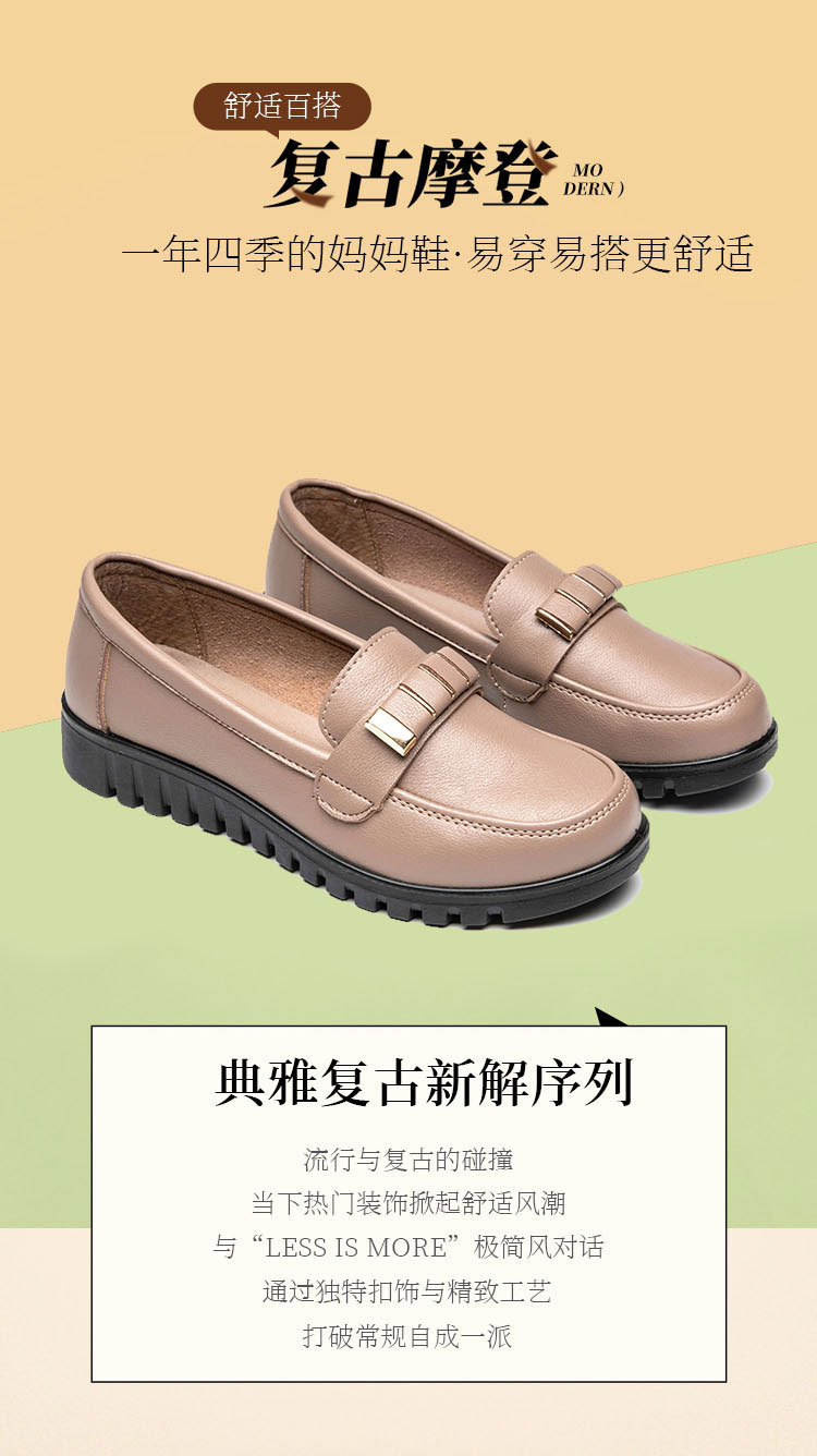 Genuine Leather Soft-Soled Non-Slip Shoes for Middle-Aged and Elderly Women, Flat-Soled Work Shoes, Black Casual, Comfortable, Versatile, and Not Tiring on the Feet