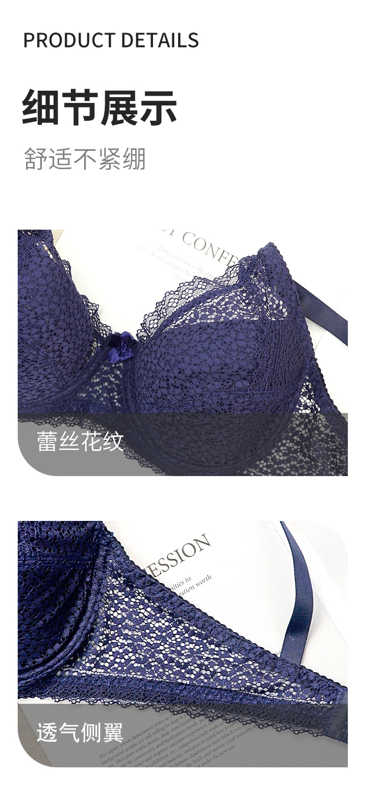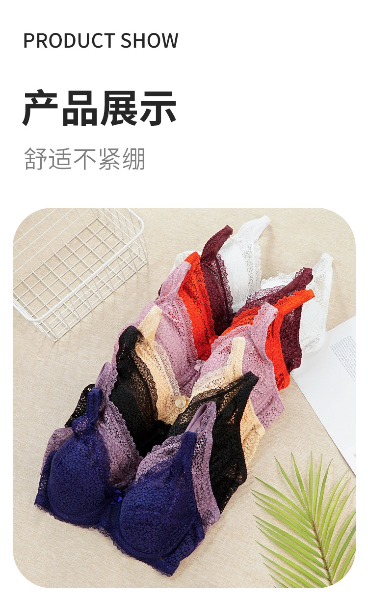 Foreign Trade Cross-border White Lace Large Size Women's Underwear Breathable and Comfortable bra with Rim Bow