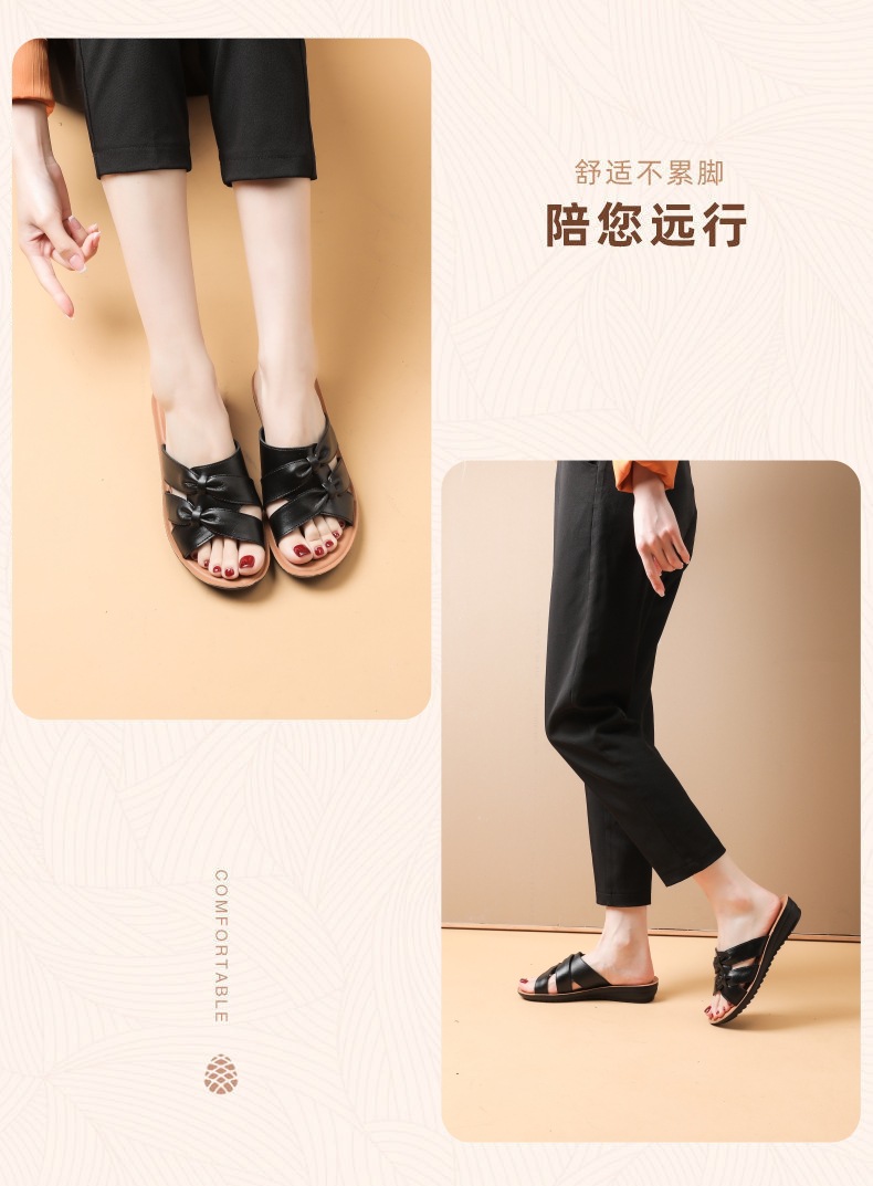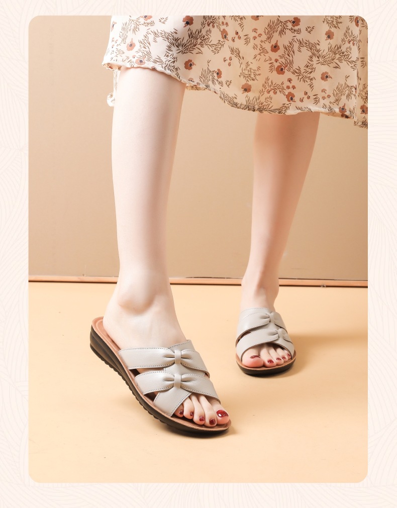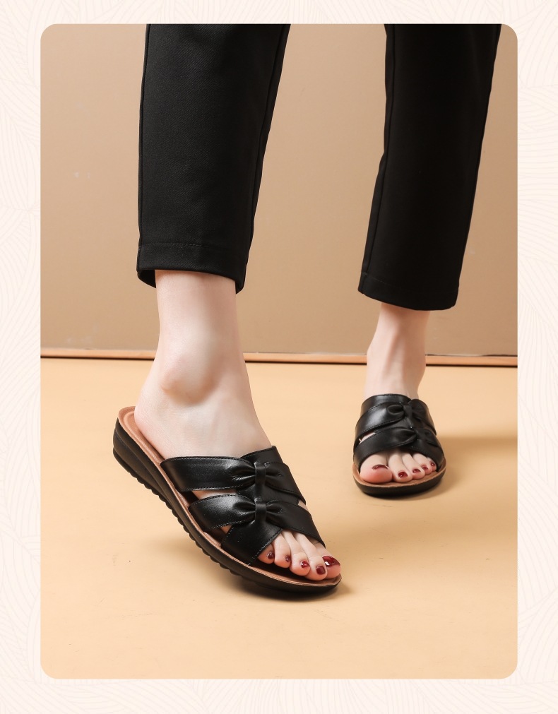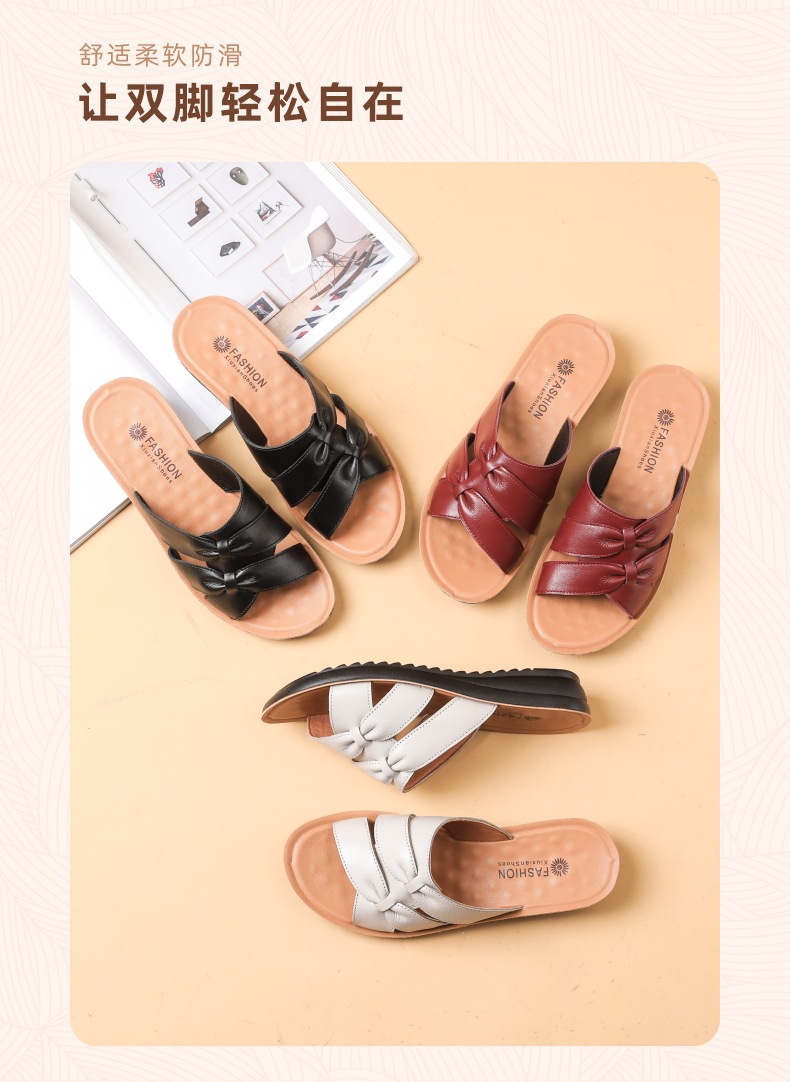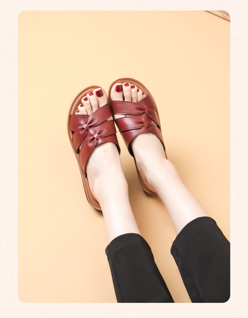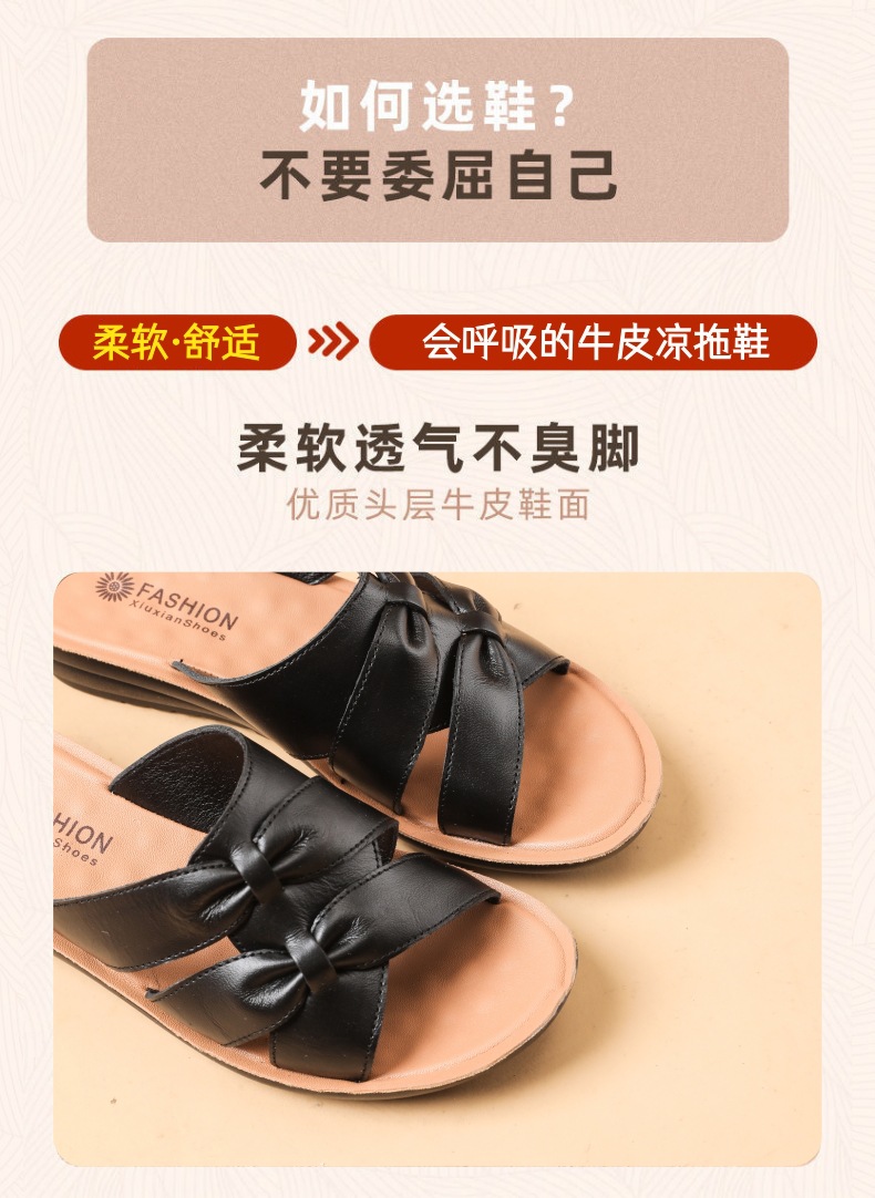 Choice First-Layer Cowhide Leather Slippers for Women, Soft-Soled, Non-Slip, Genuine Leather, Suitable for Middle-Aged and Elderly People, Casual Everyday Style