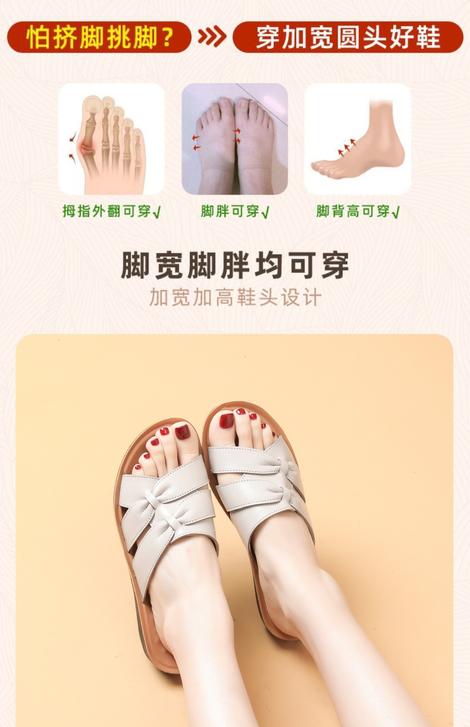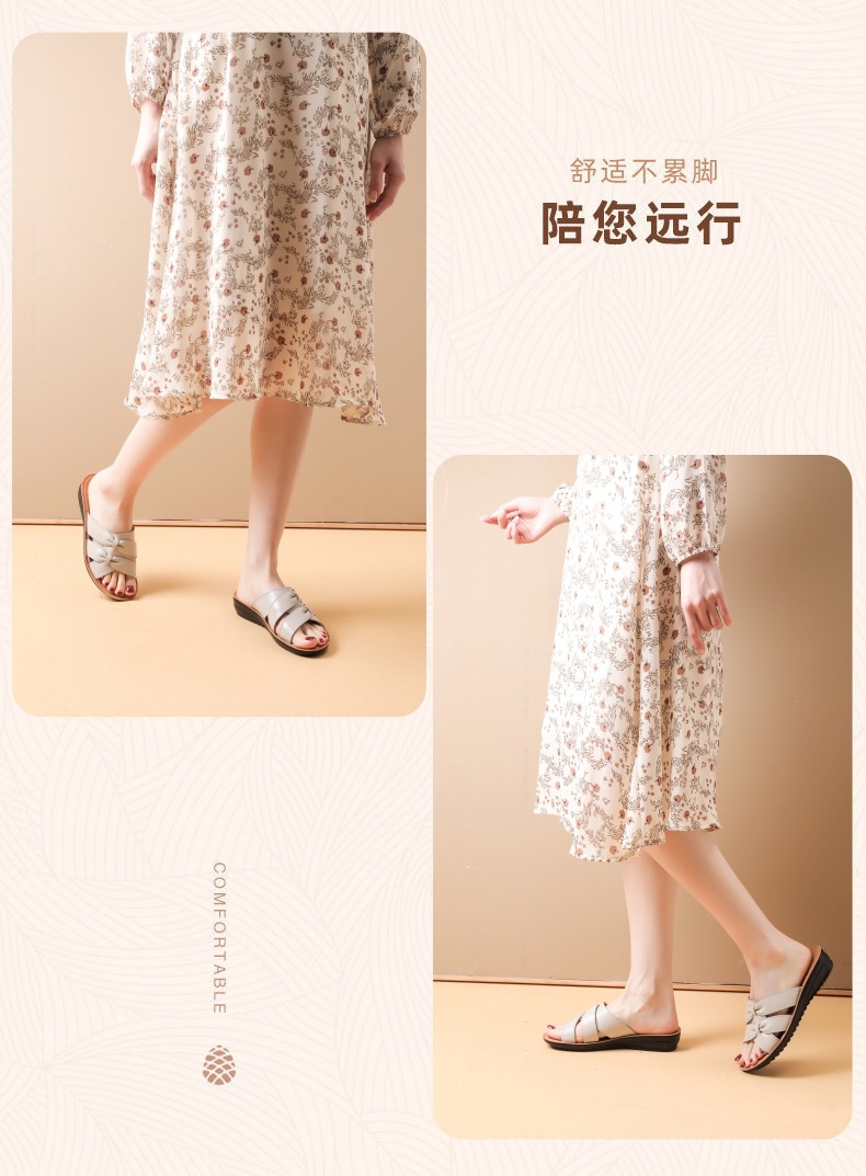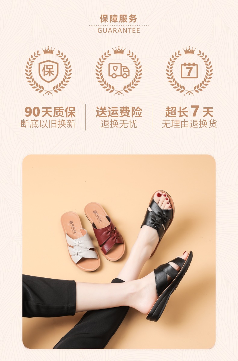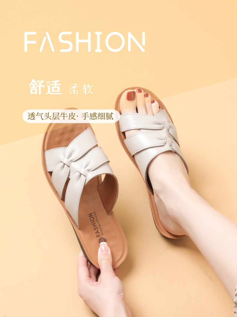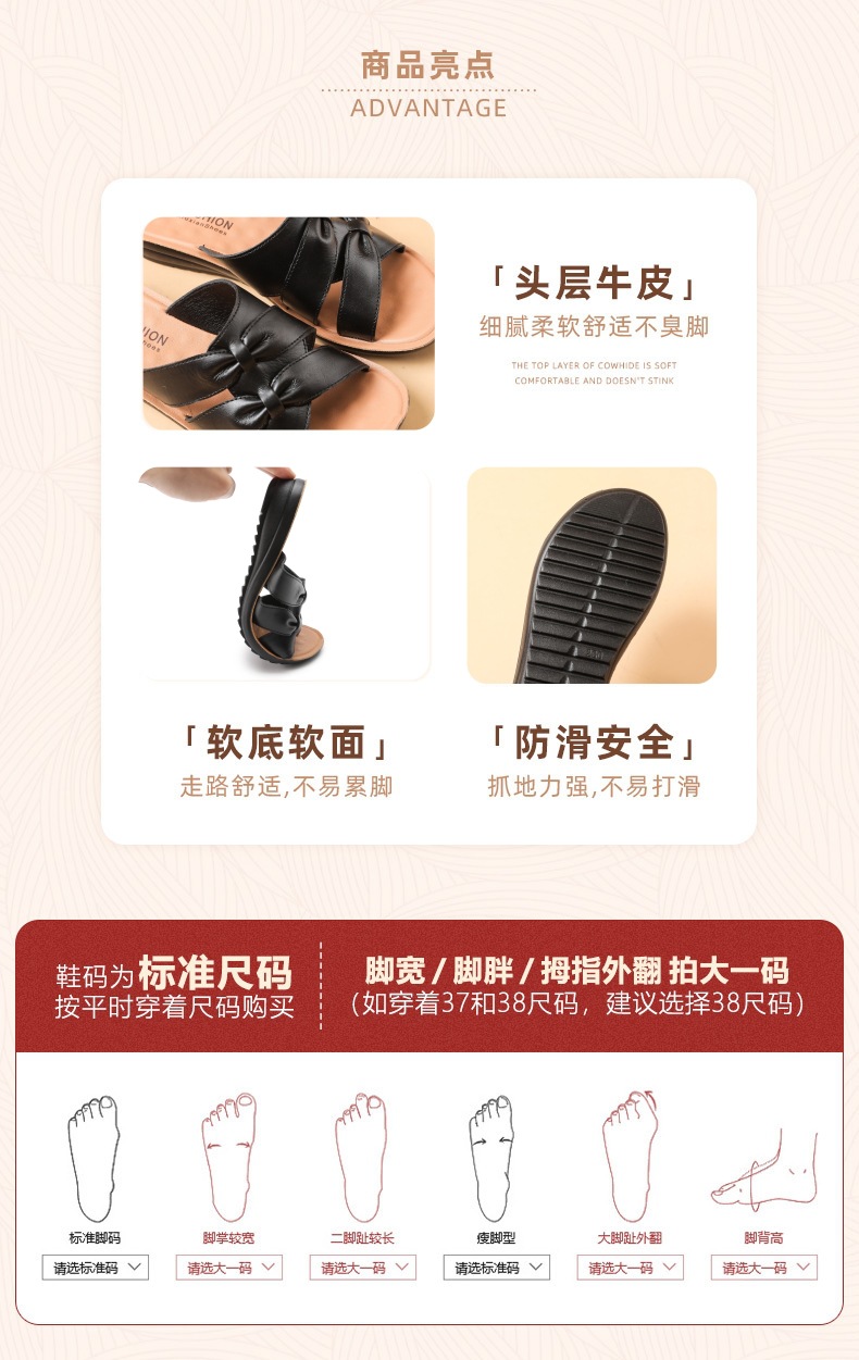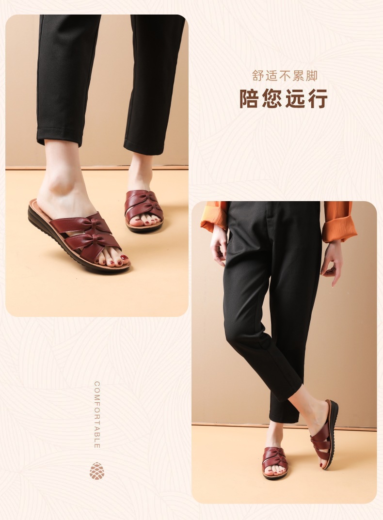 Choice First-Layer Cowhide Leather Slippers for Women, Soft-Soled, Non-Slip, Genuine Leather, Suitable for Middle-Aged and Elderly People, Casual Everyday Style