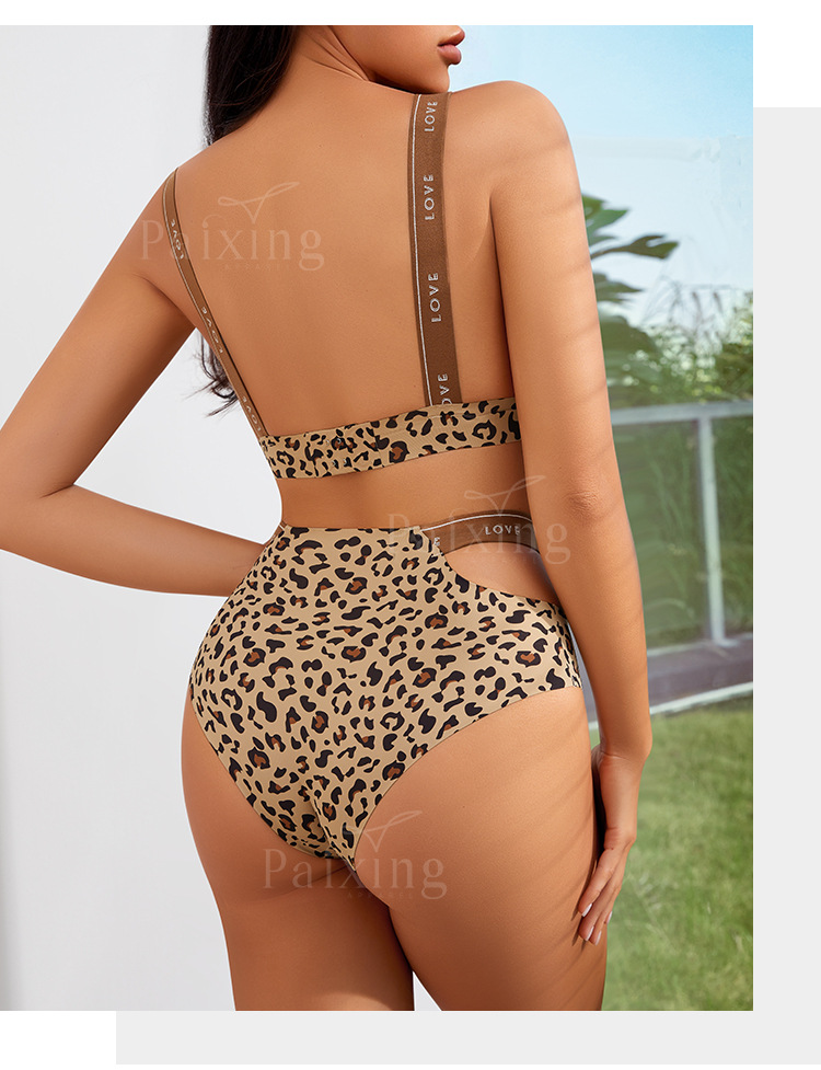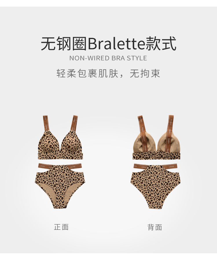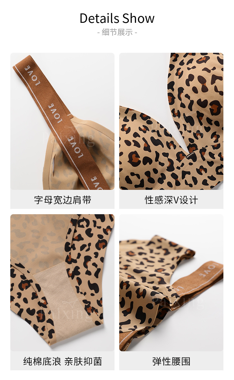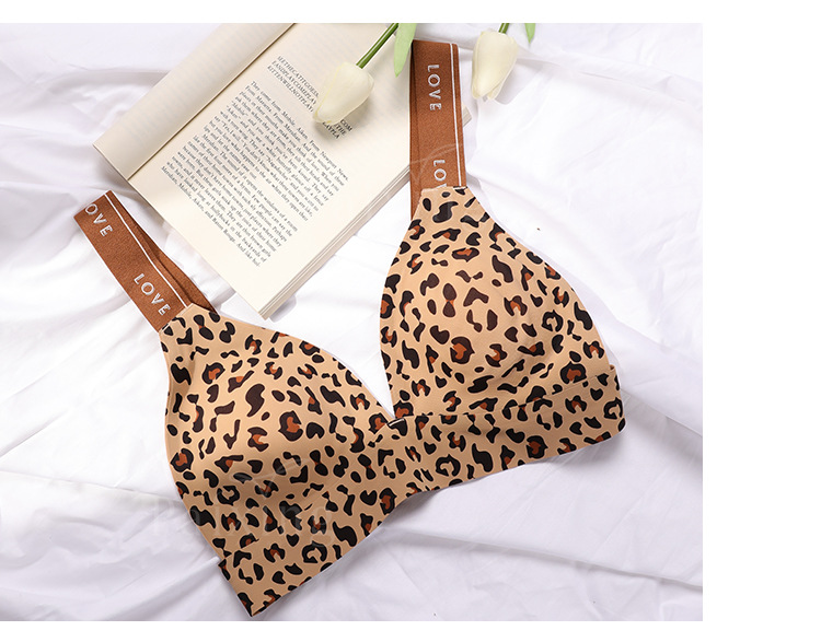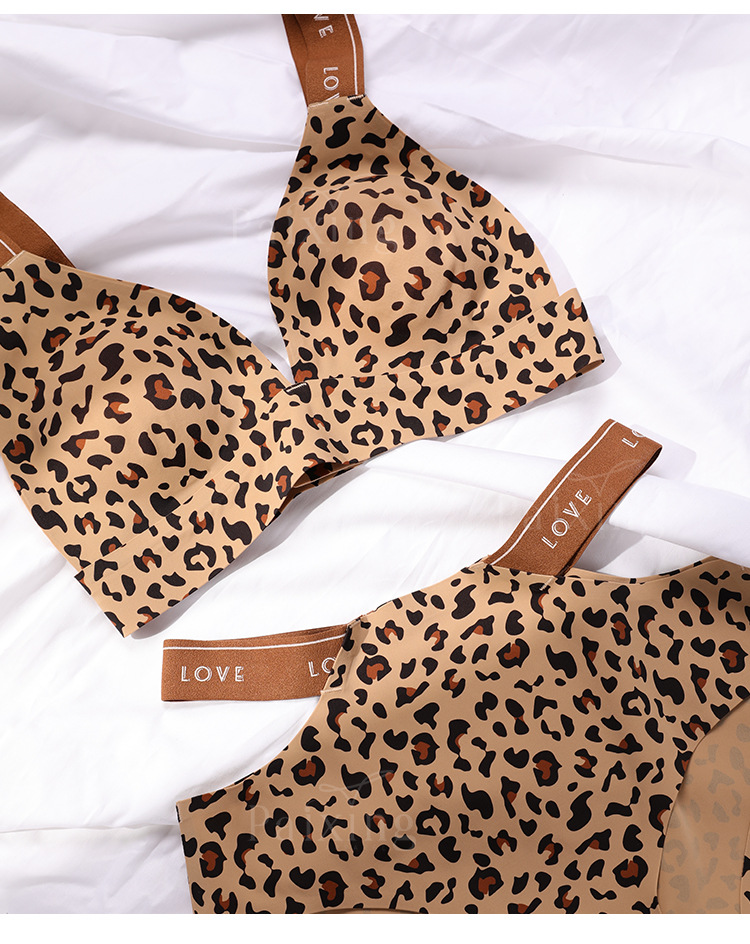 Choice European and American Large Size Intimates Set Sexy Letter Shoulder Straps Comfortable Ice Silk Seamless Leopard Print Temptation Women's Bra