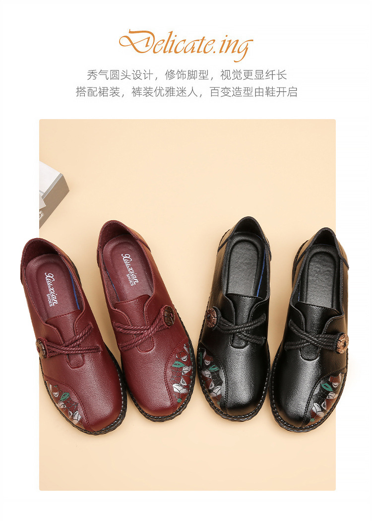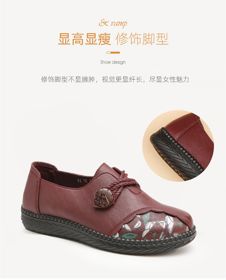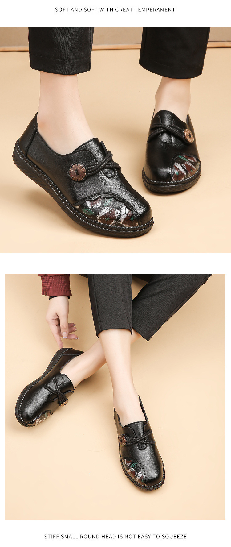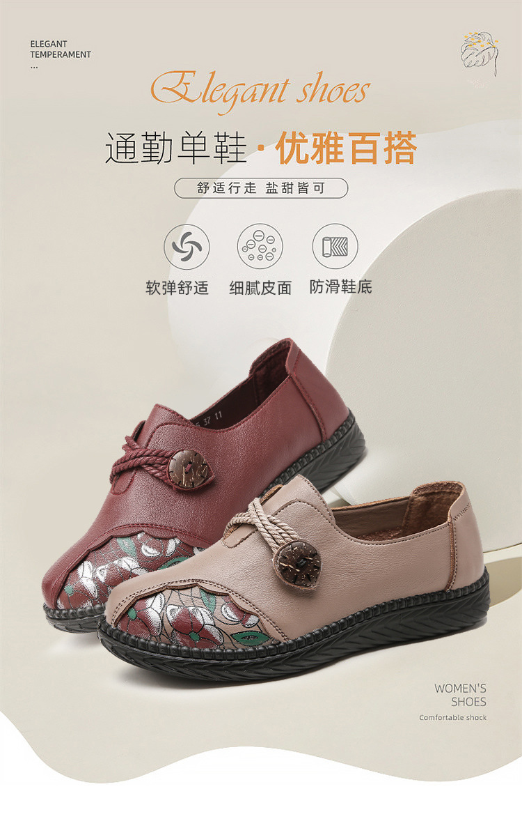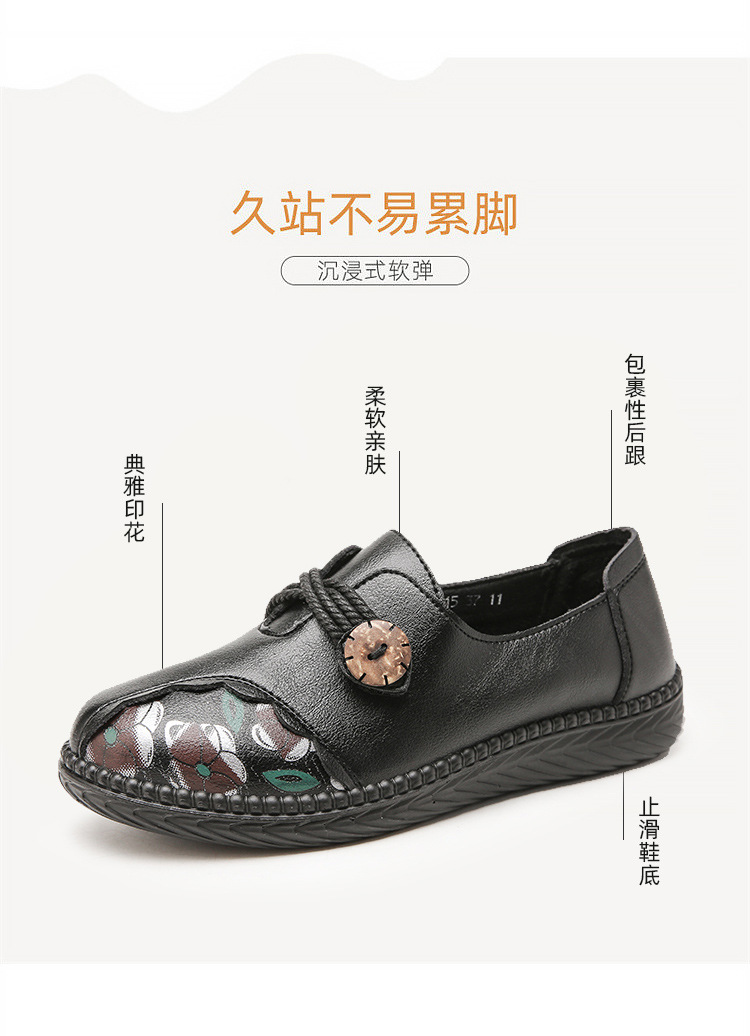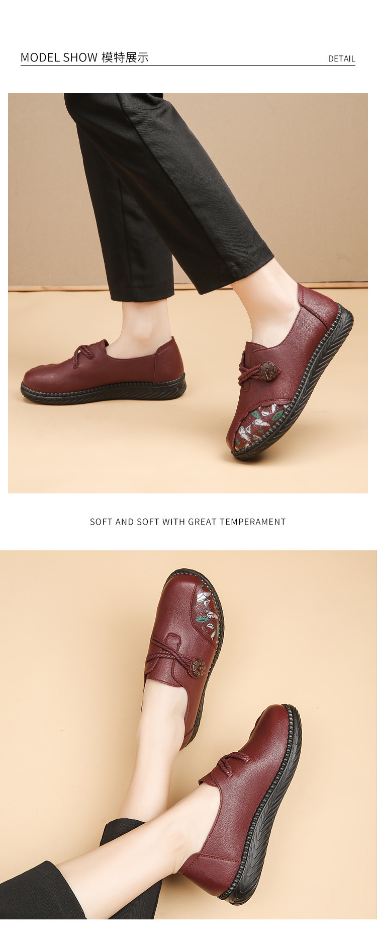 Choice Ready Stock Spring and Autumn Mother's Shoes, Soft-Soled Single Shoes, Middle-Aged and Elderly Women's Shoes, Middle-Aged and Elderly People's Leather Shoes, Lightweight, Non-Slip, Floral Design