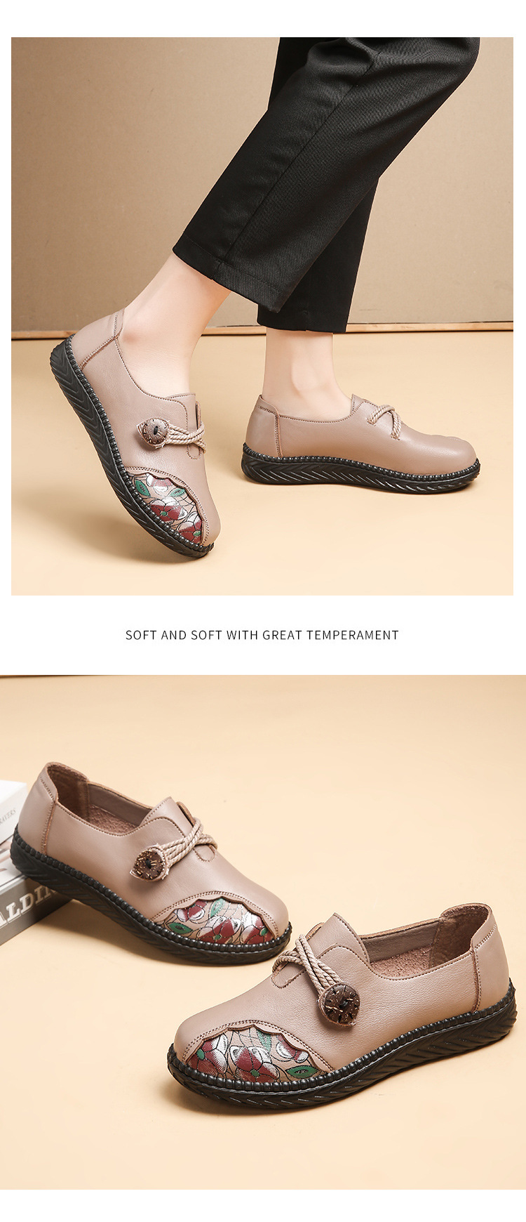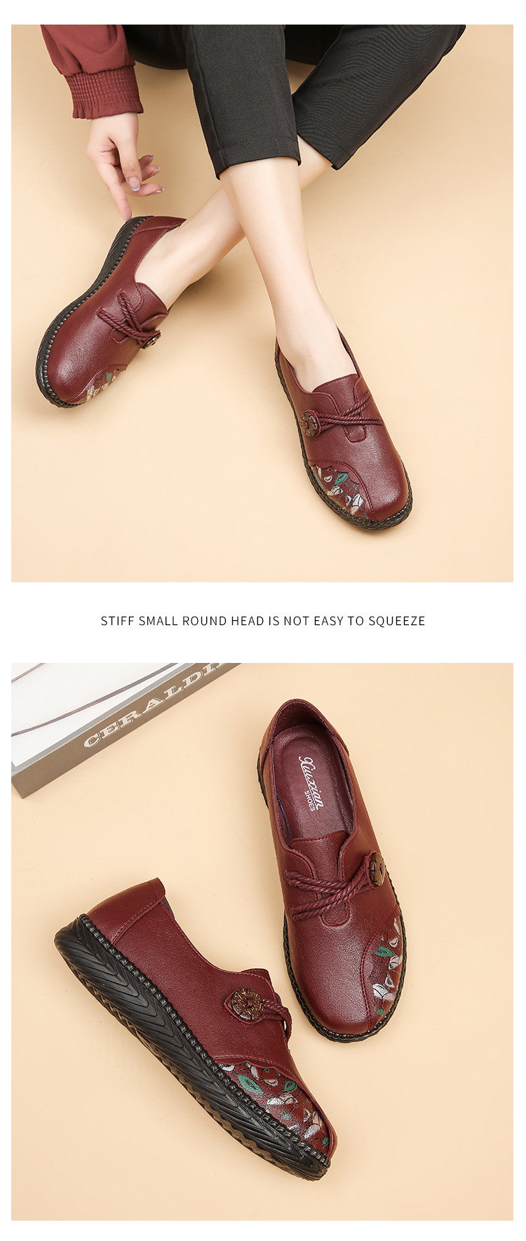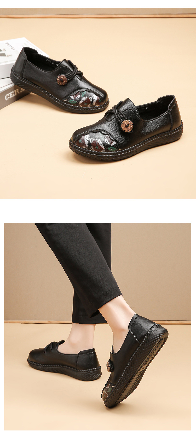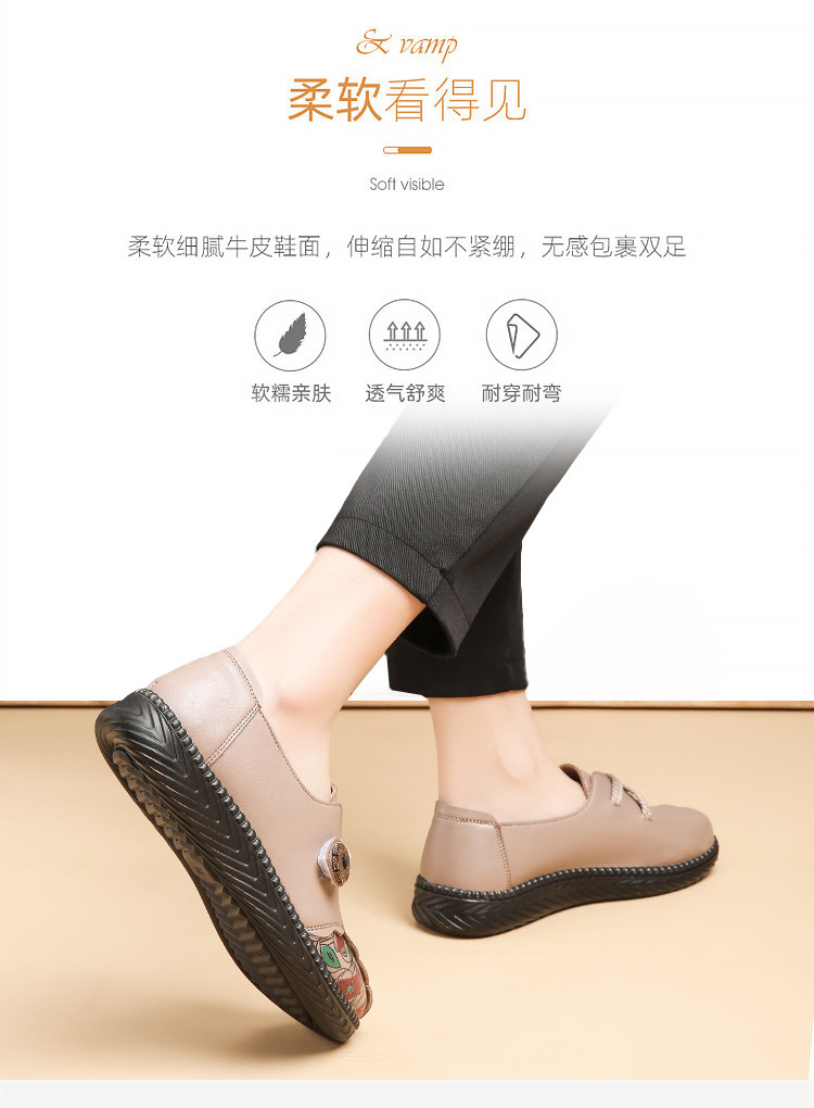 Choice Ready Stock Spring and Autumn Mother's Shoes, Soft-Soled Single Shoes, Middle-Aged and Elderly Women's Shoes, Middle-Aged and Elderly People's Leather Shoes, Lightweight, Non-Slip, Floral Design