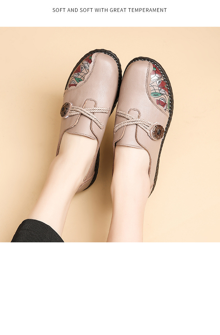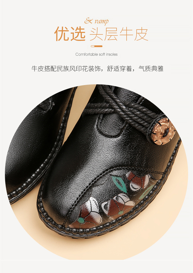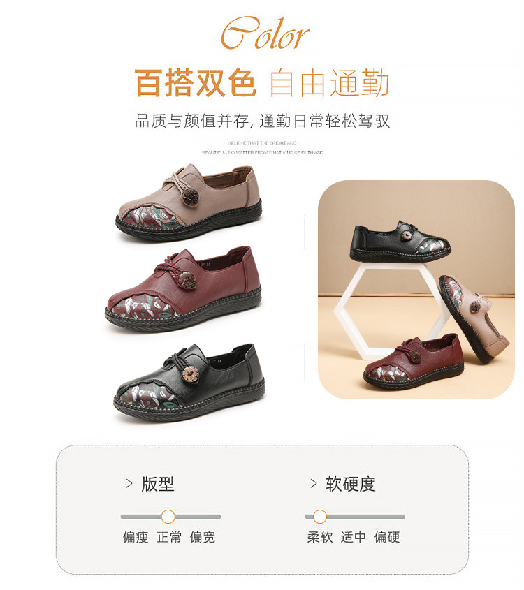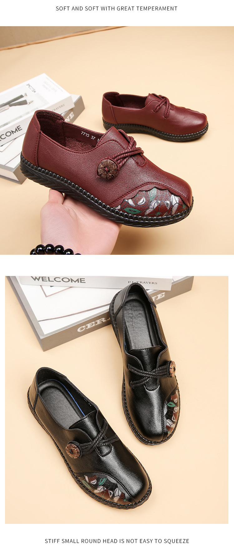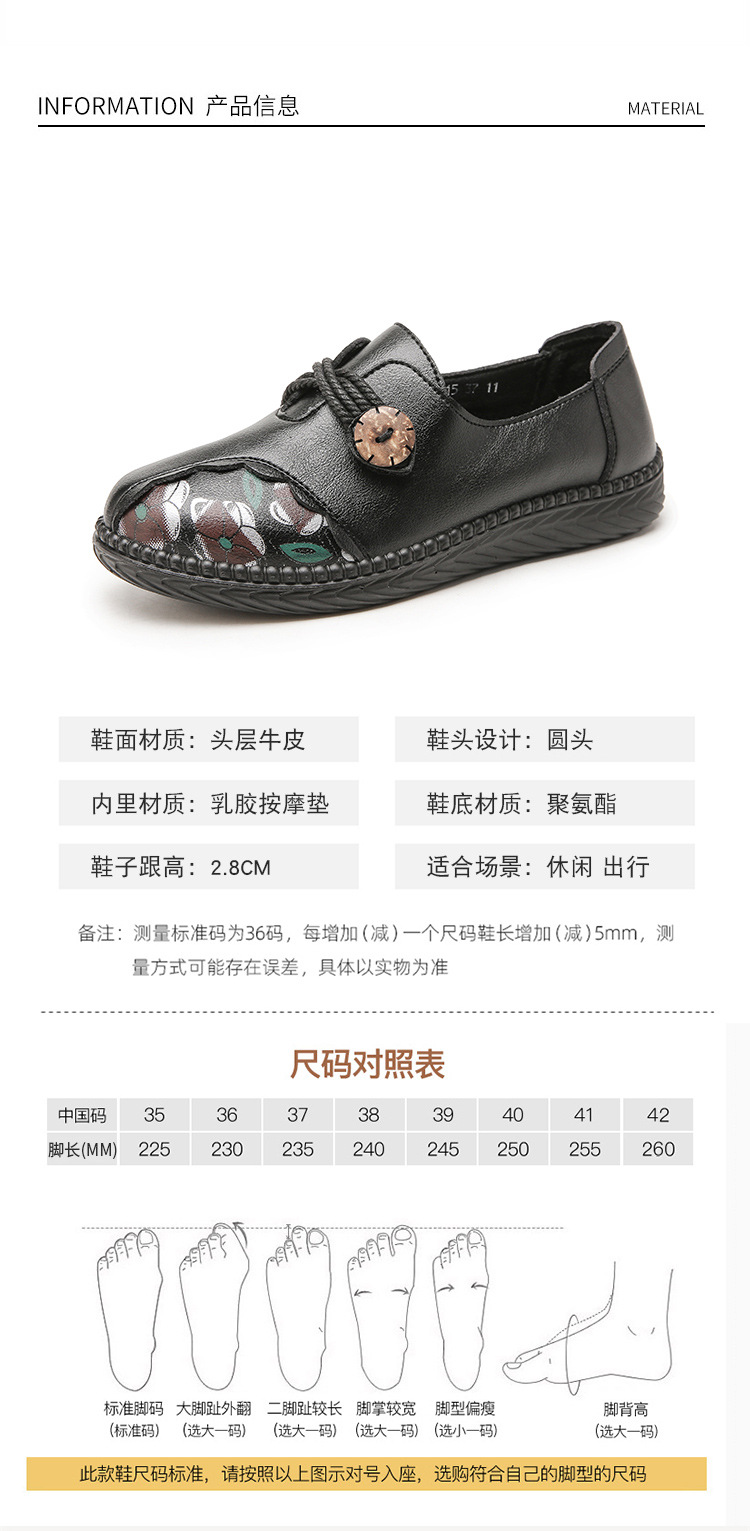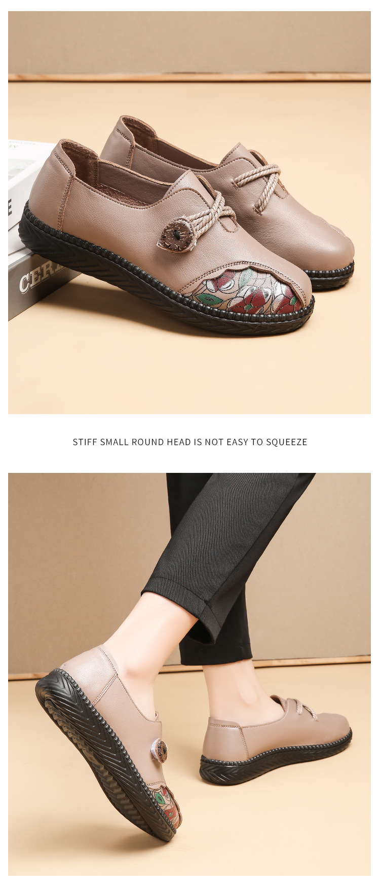 Choice Ready Stock Spring and Autumn Mother's Shoes, Soft-Soled Single Shoes, Middle-Aged and Elderly Women's Shoes, Middle-Aged and Elderly People's Leather Shoes, Lightweight, Non-Slip, Floral Design