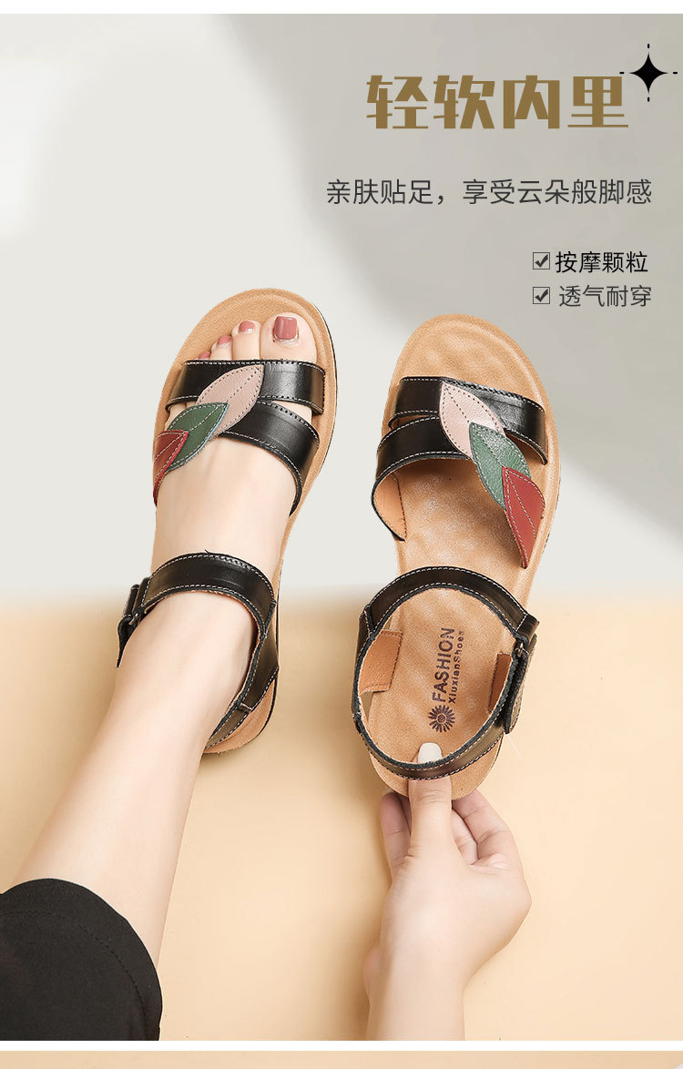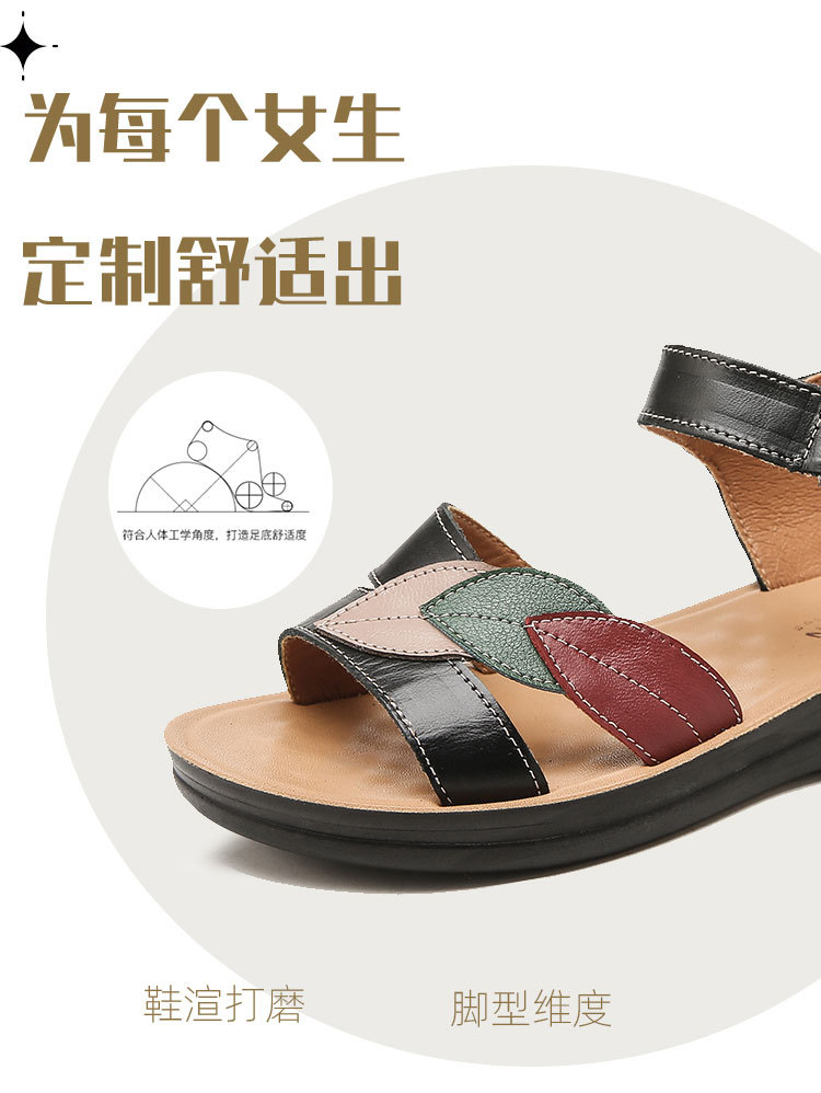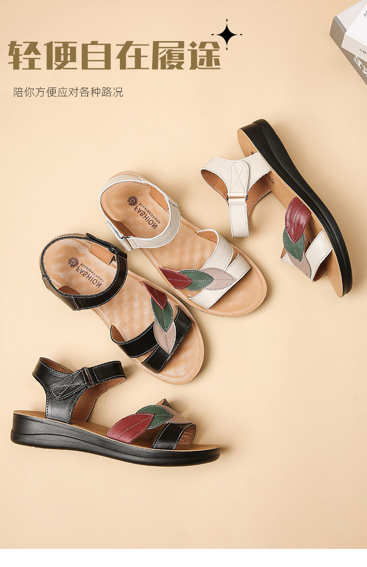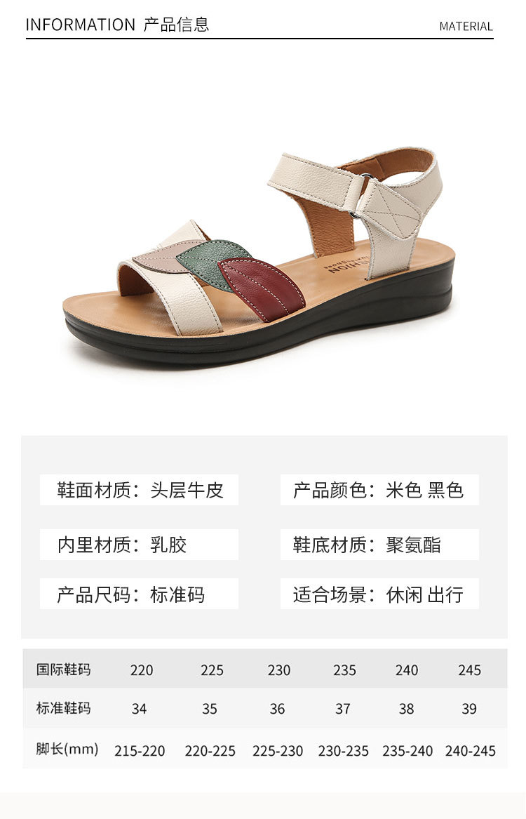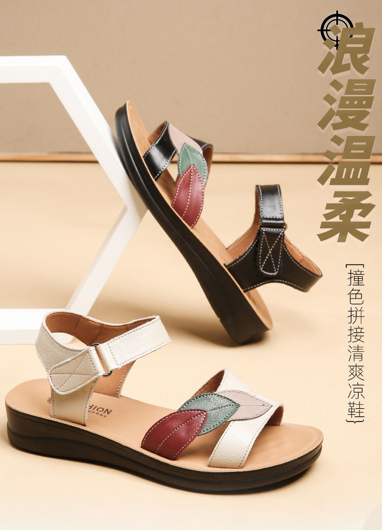 Choice First-Layer Cowhide Mother's Sandals, Genuine Leather, Summer Soft-Soled Women's Shoes for Middle-Aged and Elderly, Flat-Soled, Non-Slip, Peep-Toe for Seniors