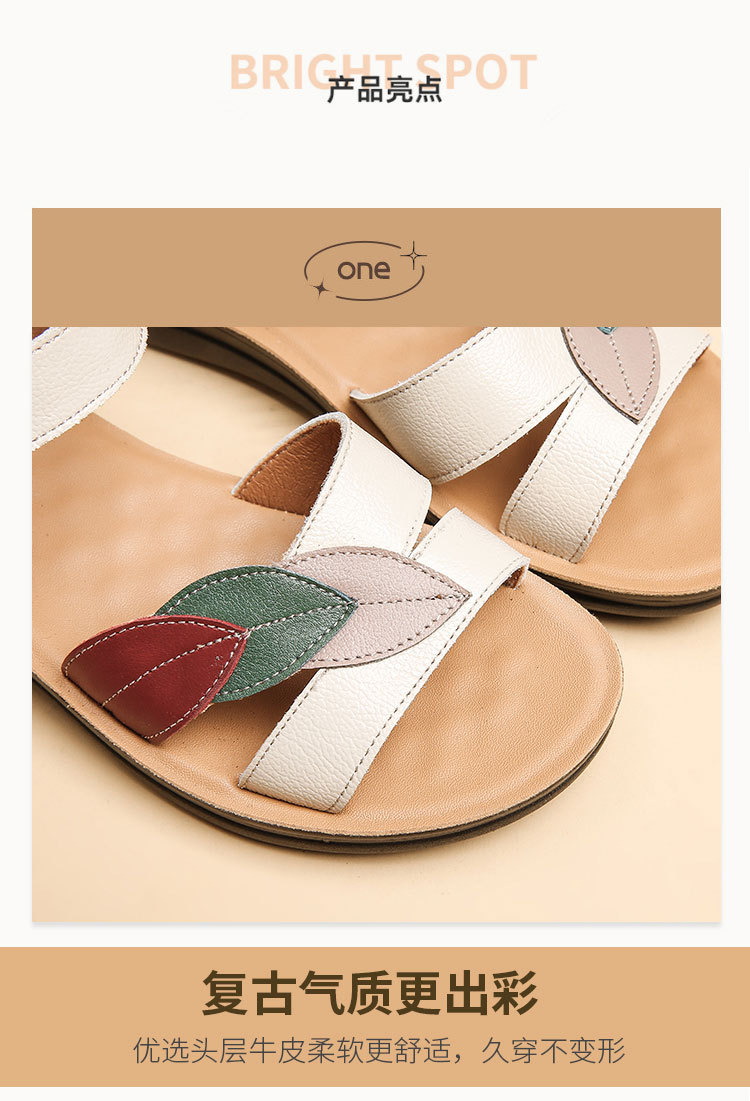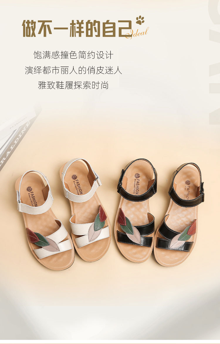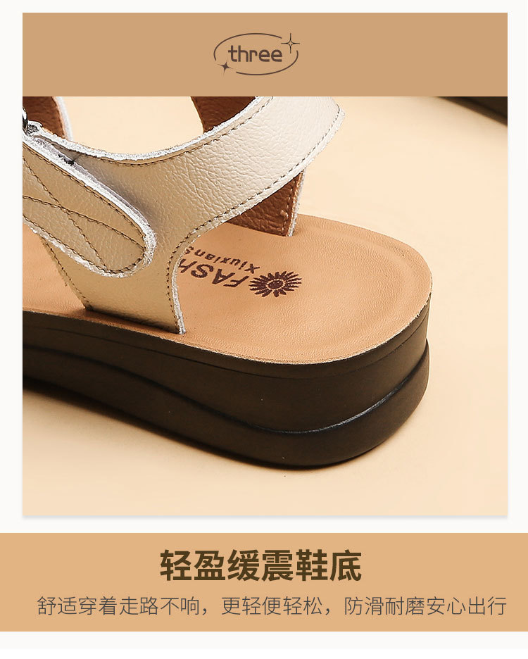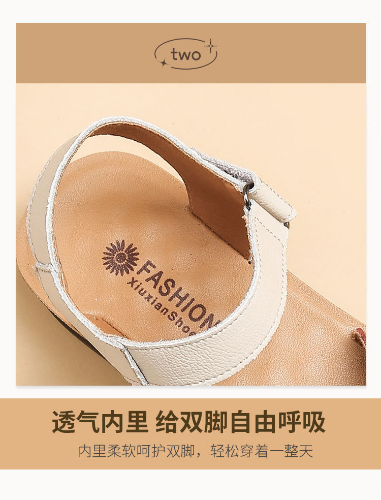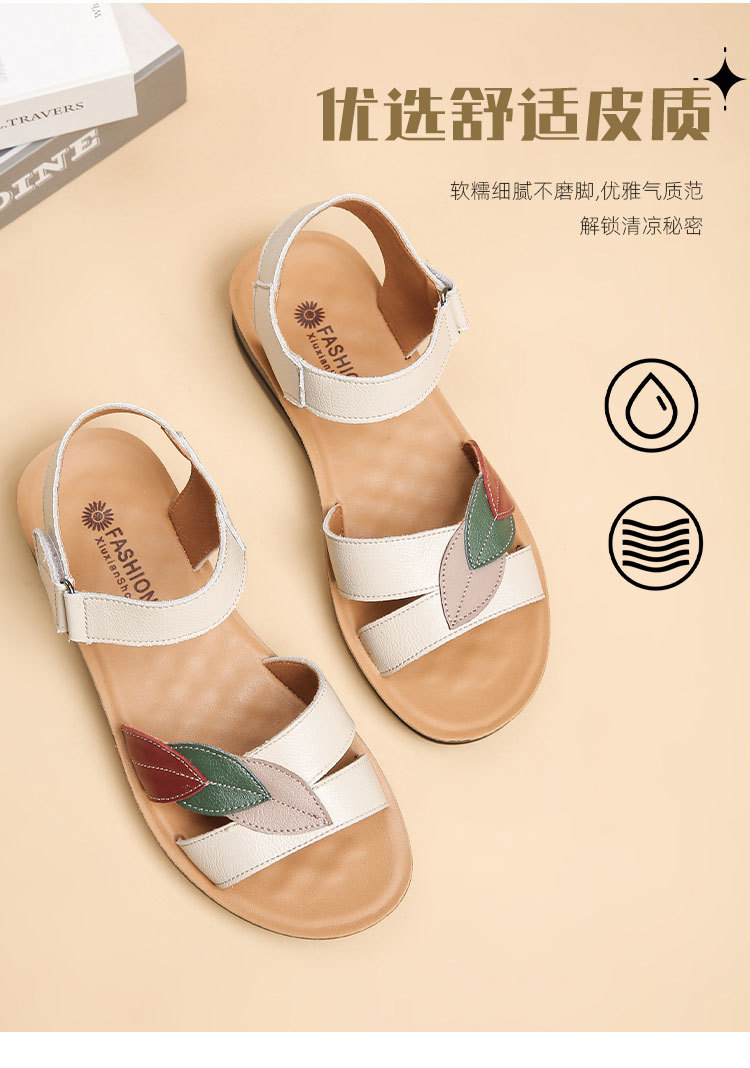 Choice First-Layer Cowhide Mother's Sandals, Genuine Leather, Summer Soft-Soled Women's Shoes for Middle-Aged and Elderly, Flat-Soled, Non-Slip, Peep-Toe for Seniors