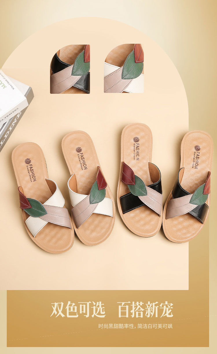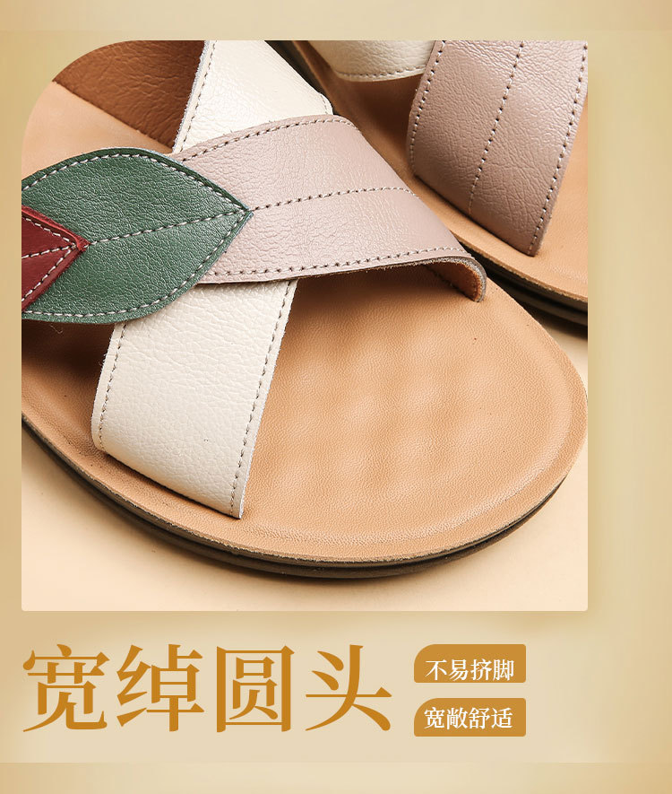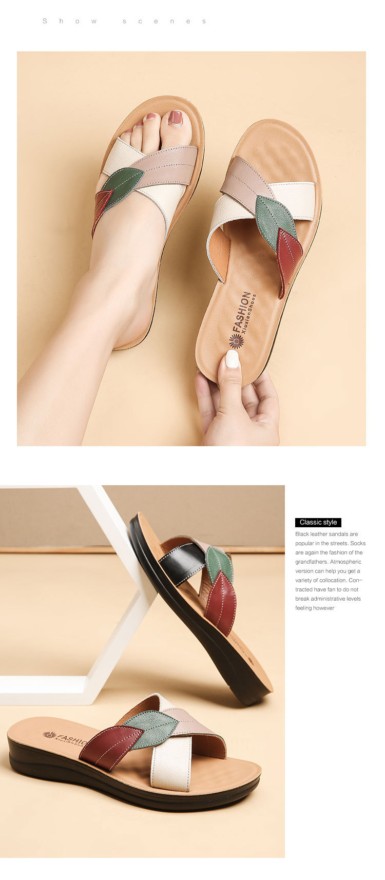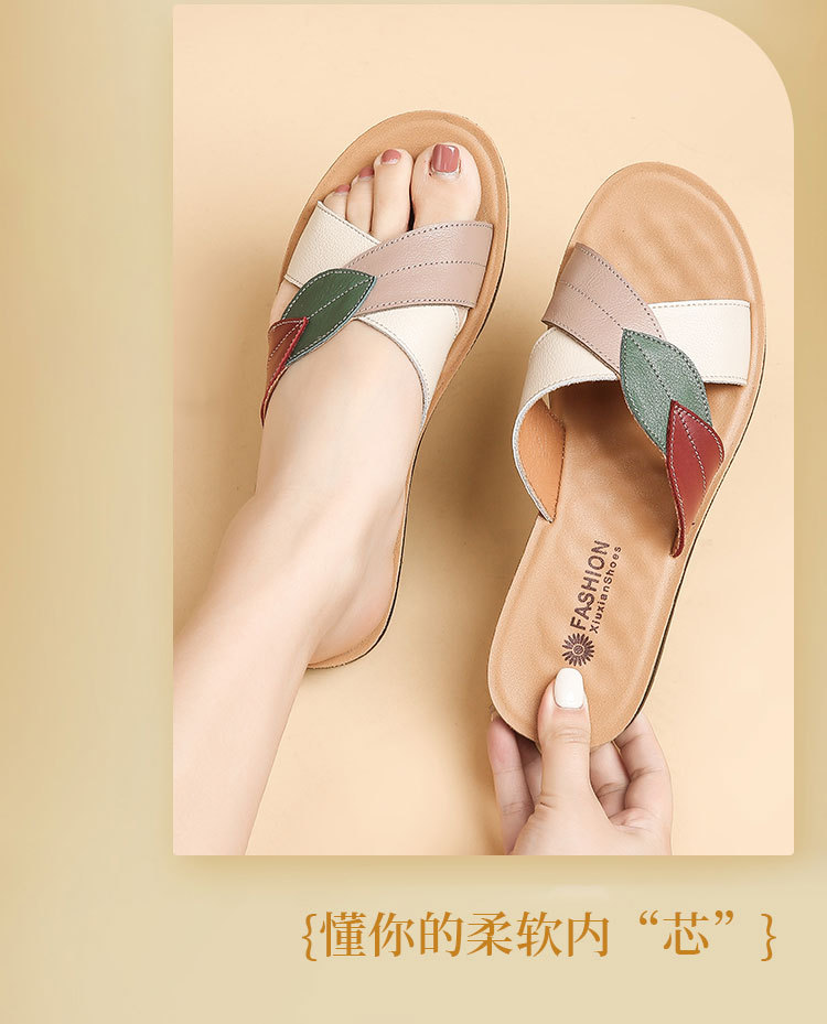 Ready Stock First-Layer Cowhide Slippers, Flat-Soled Non-Slip Sandals for Middle-Aged and Elderly Women, Lightweight and Comfortable for the Feet, Everyday Casual Style
