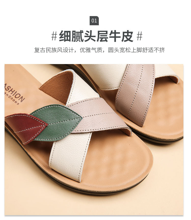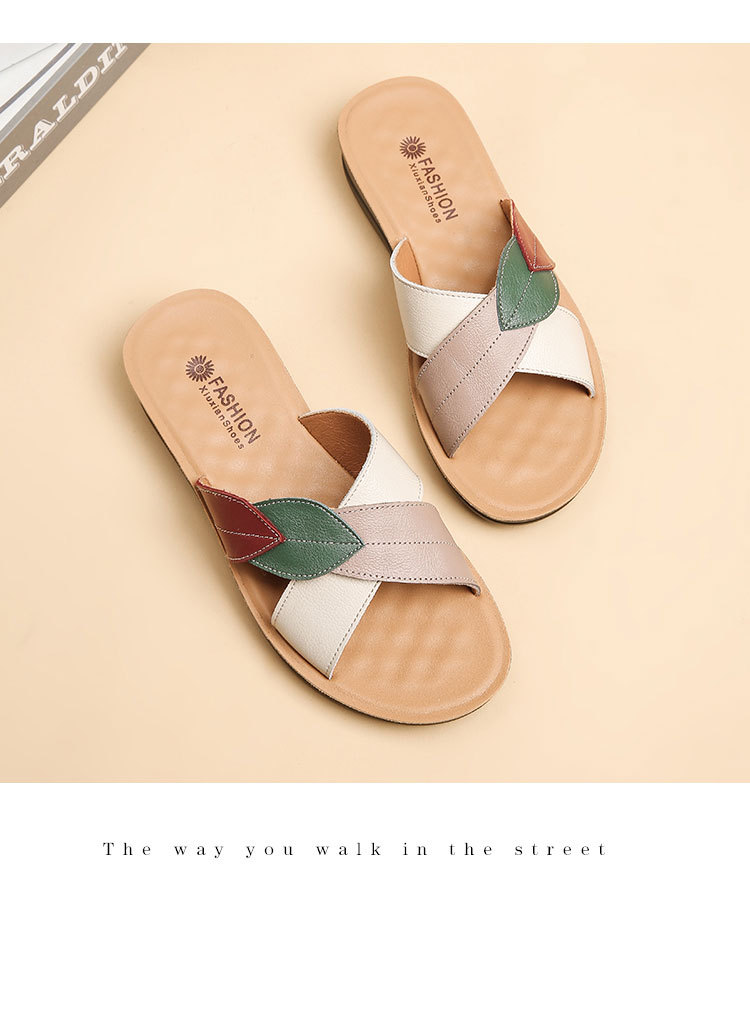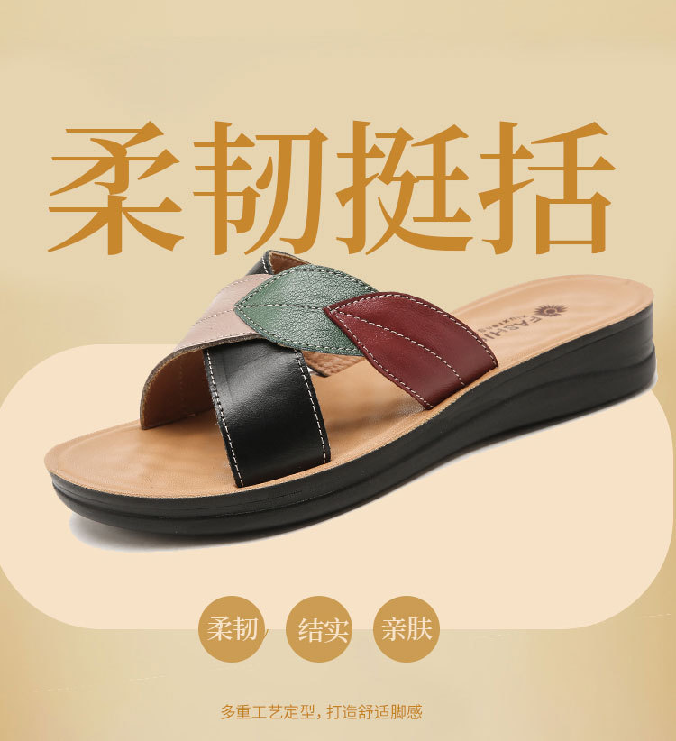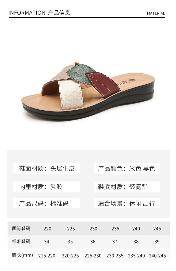 Ready Stock First-Layer Cowhide Slippers, Flat-Soled Non-Slip Sandals for Middle-Aged and Elderly Women, Lightweight and Comfortable for the Feet, Everyday Casual Style