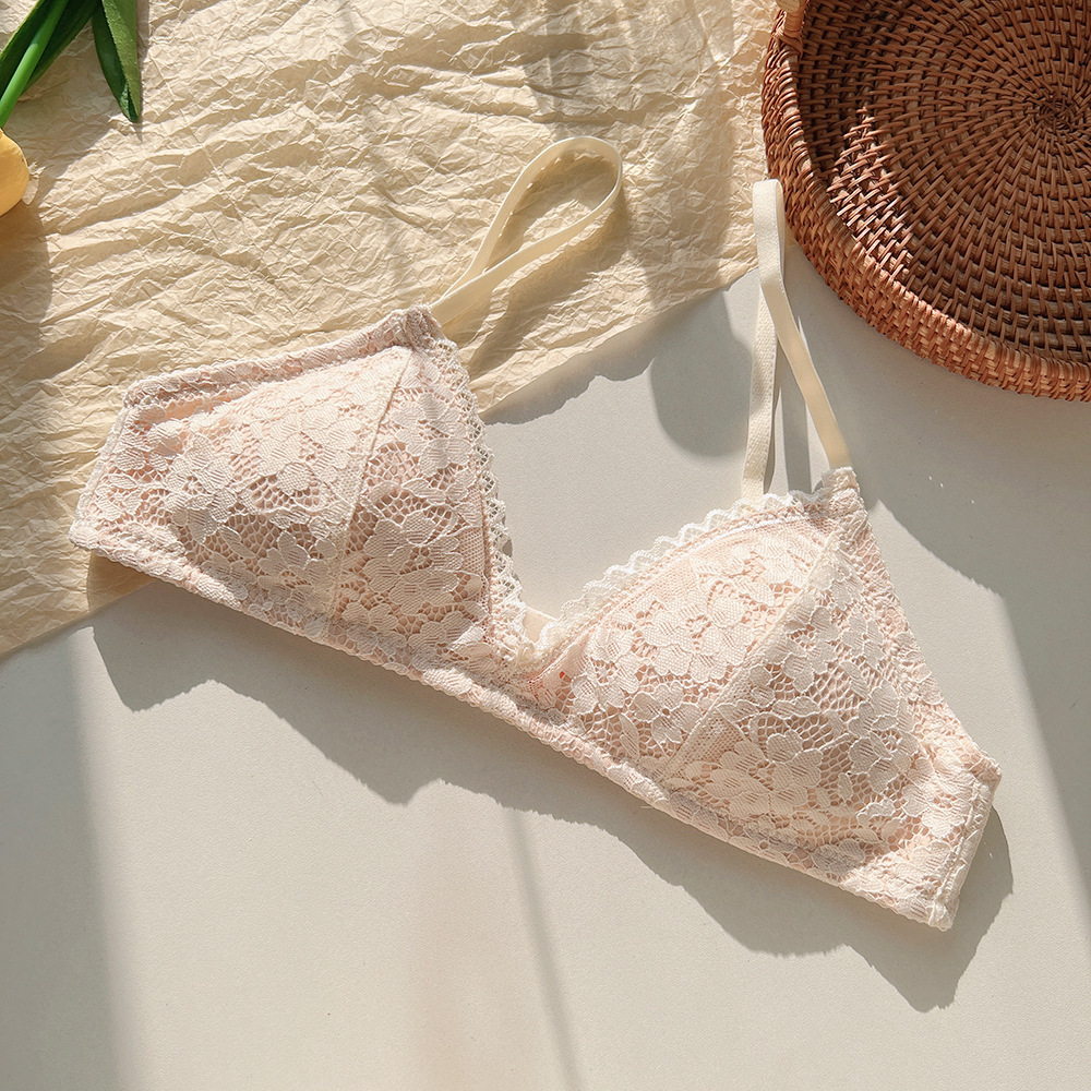 Lace Pure Desire Triangle Cup Bra for Small-Breasted Girls, Female Students' Summer Thin Style, Wireless Push-Up Bra with a Naked Feel
