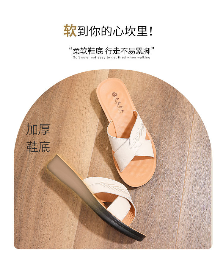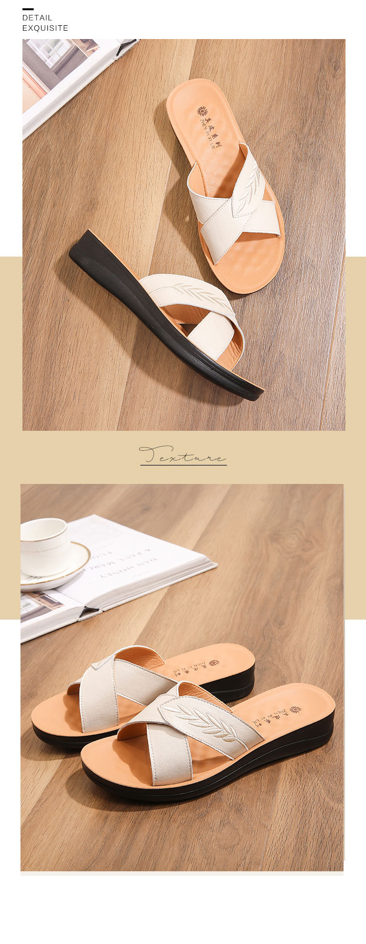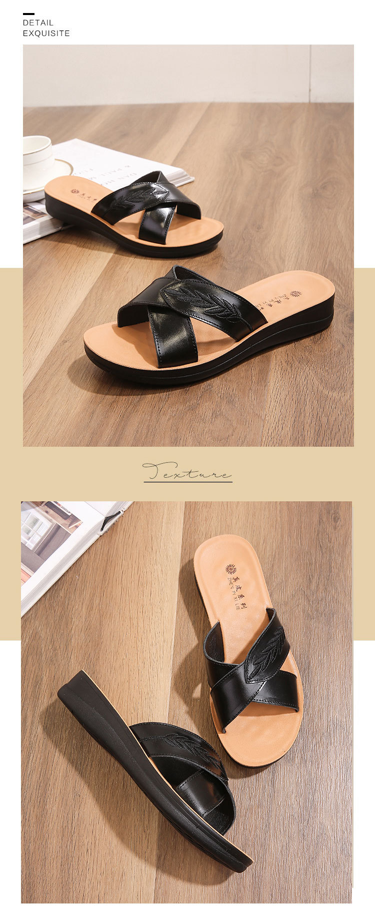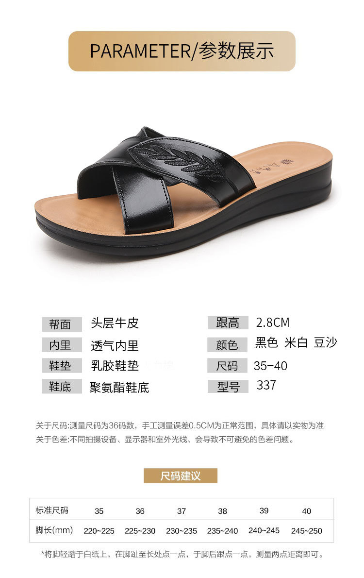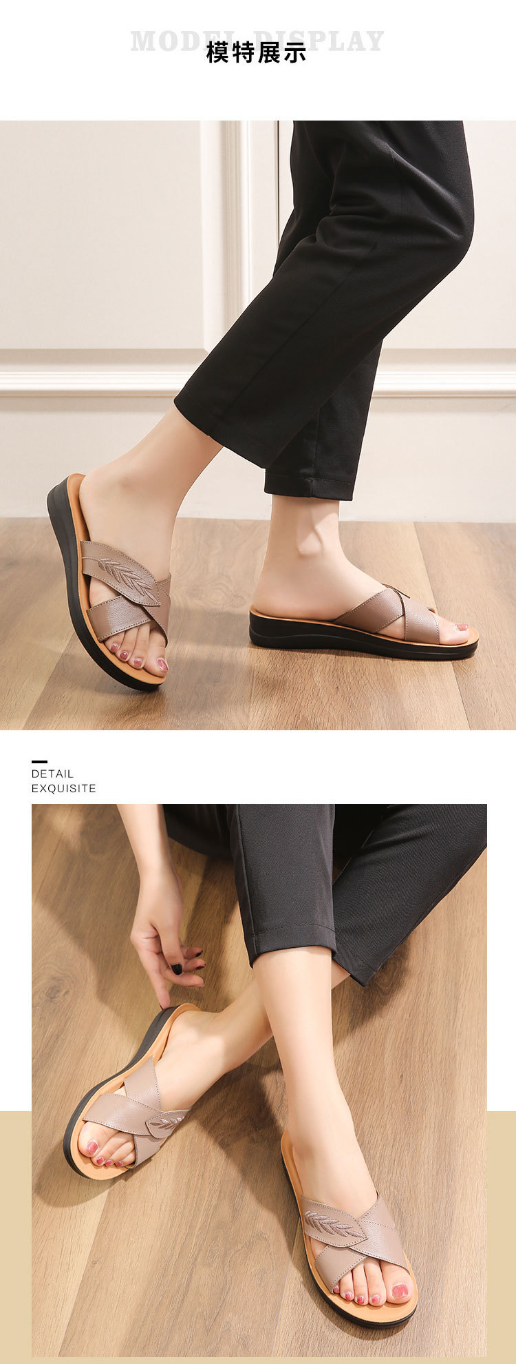 Choice In-Stock Genuine Leather Mom Slippers for Women, Middle-Aged, Non-Slip, Embroidered, Thick-Soled, Comfortable for Elderly, Flat Sole