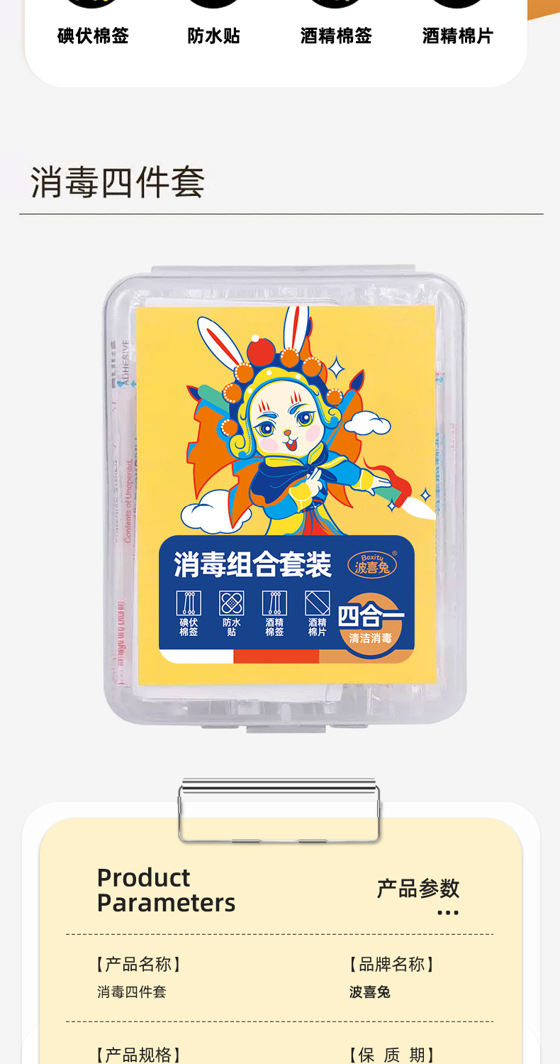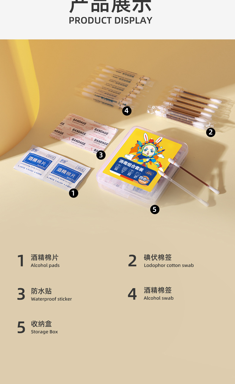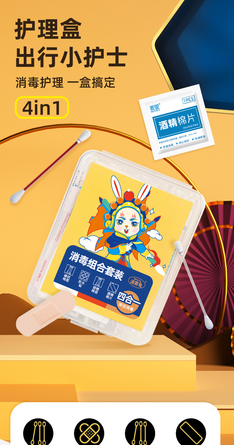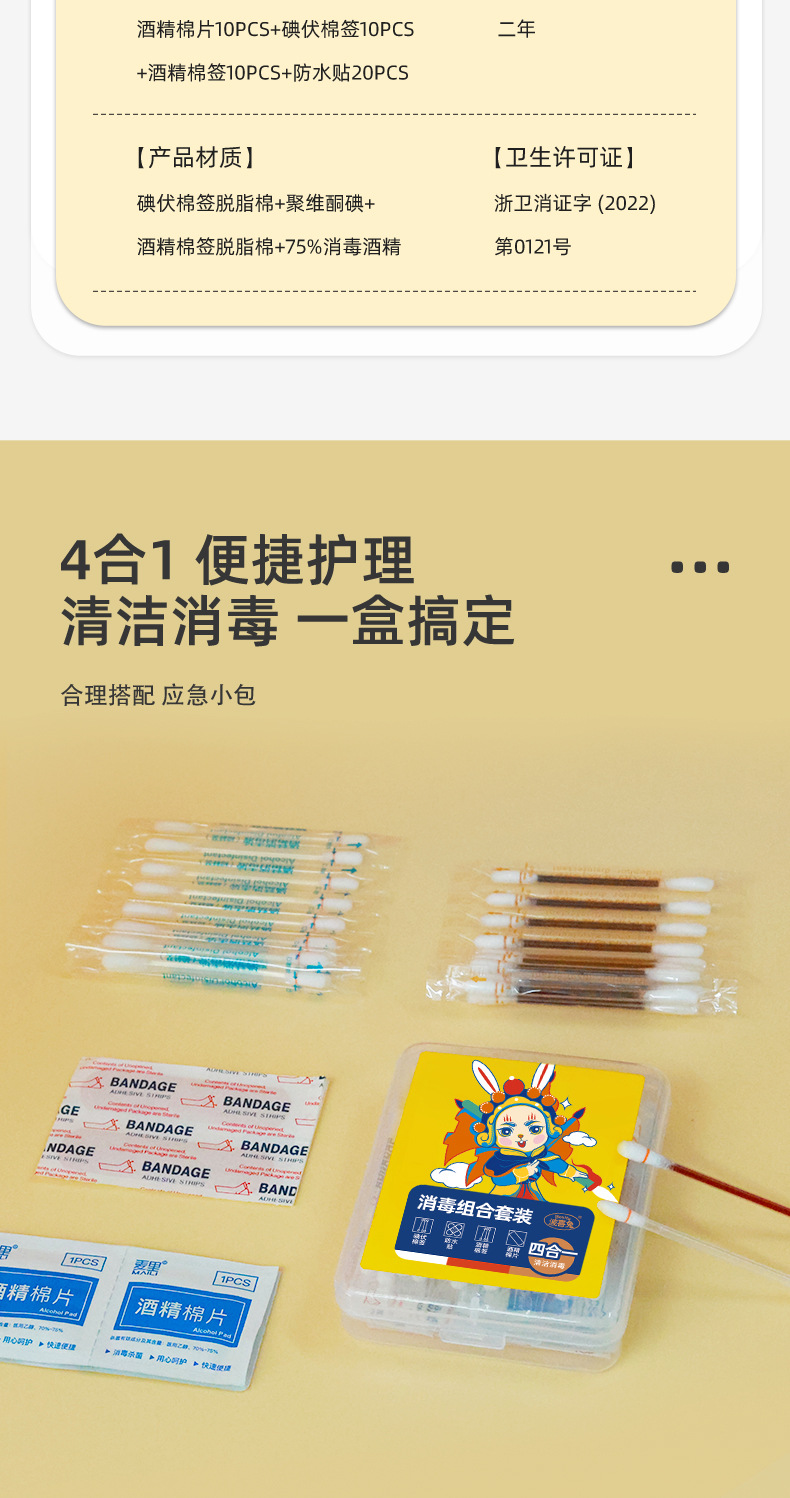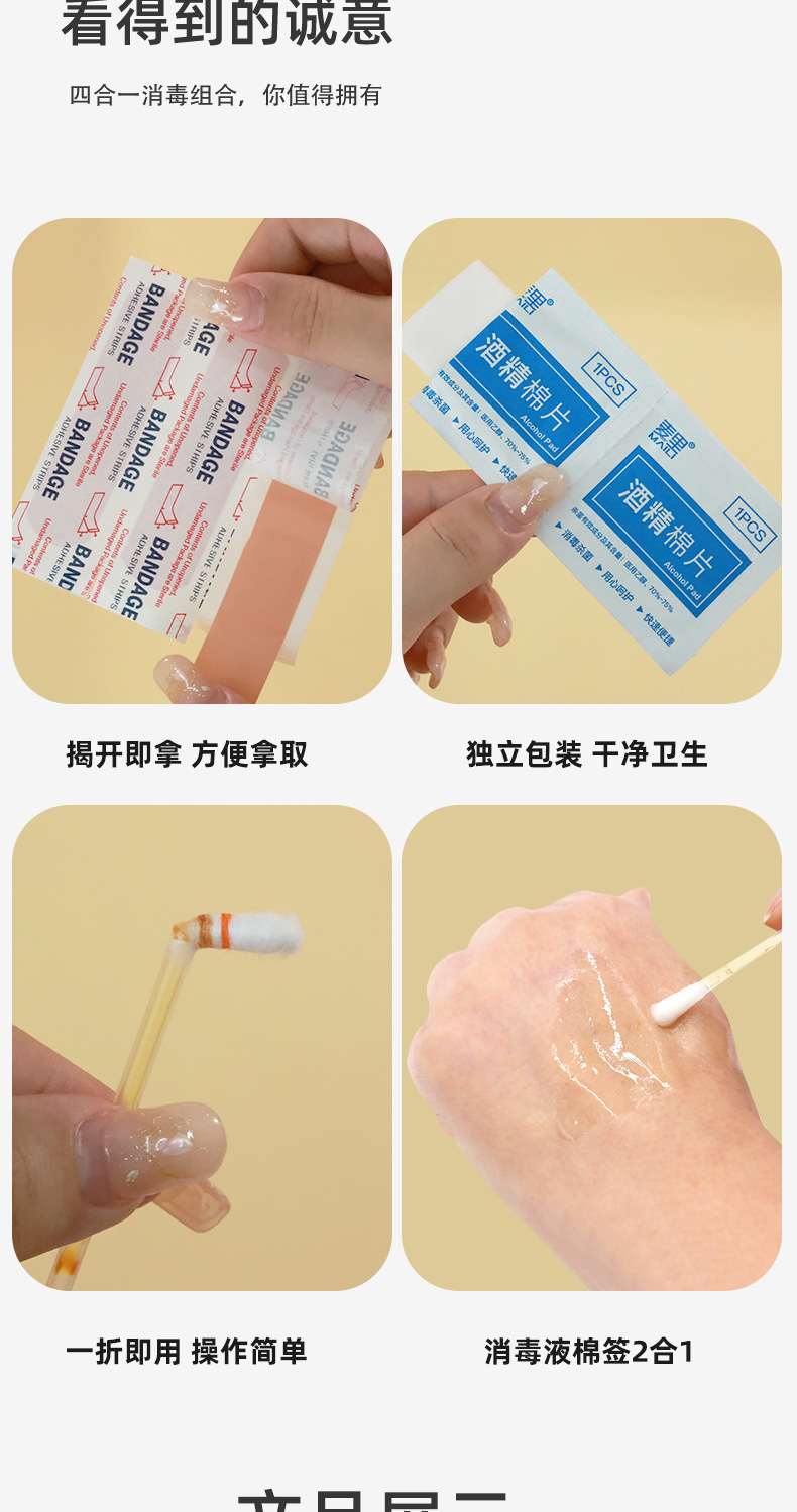 Travel Disposable Alcohol Cotton Pads, Iodophor Cotton Swabs, Waterproof Stickers, Four-In-One Emergency Four-Piece Set, Portable Wholesale