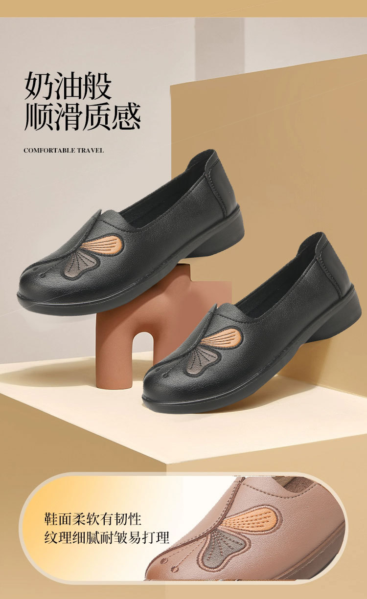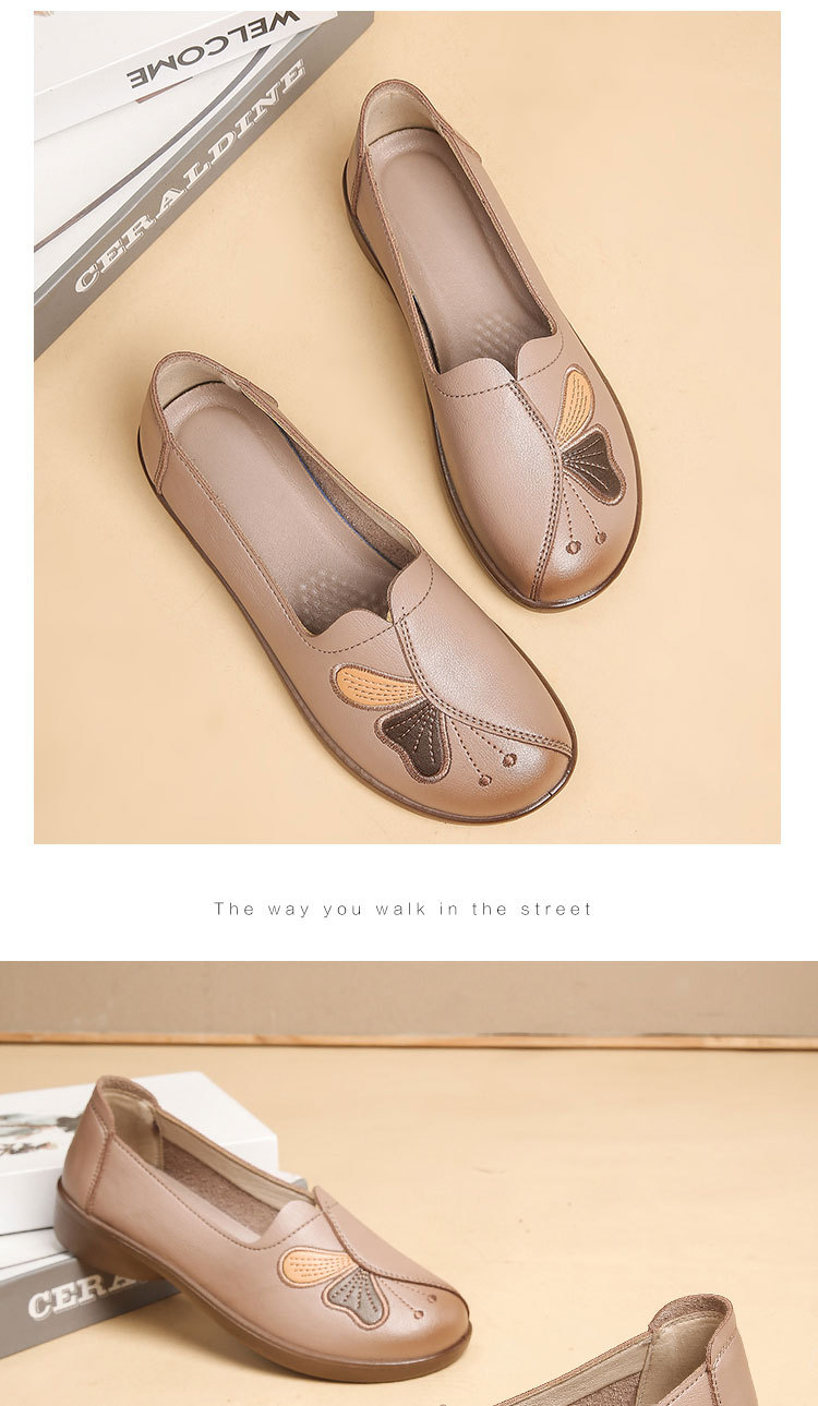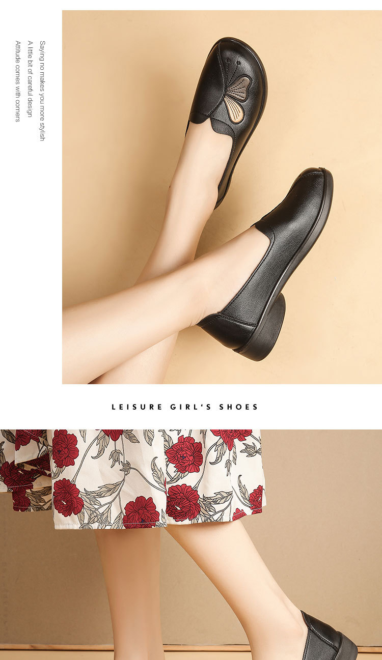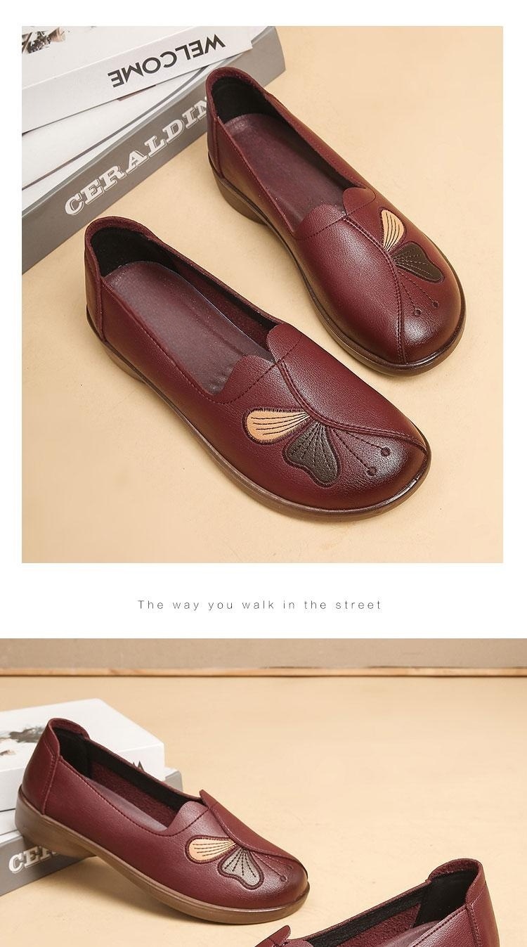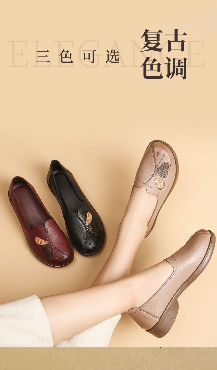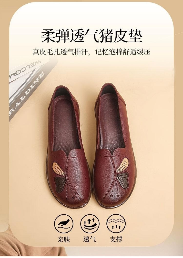 Choice Spring and Autumn Style Genuine Leather Flat Shoes for Middle-Aged and Elderly Women, Non-Slip Soft-Soled Leather Shoes for Seniors, Comfortable and Versatile