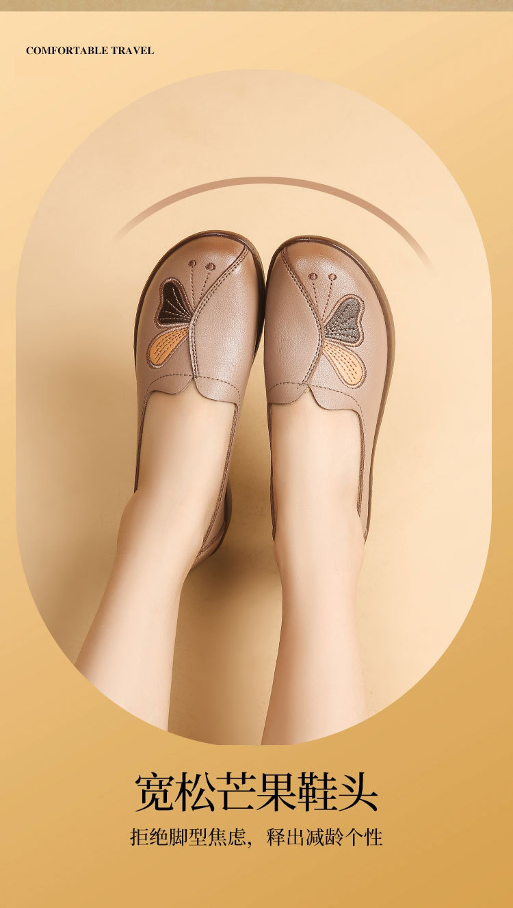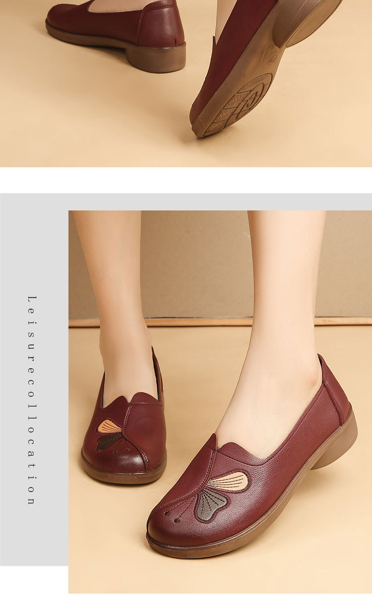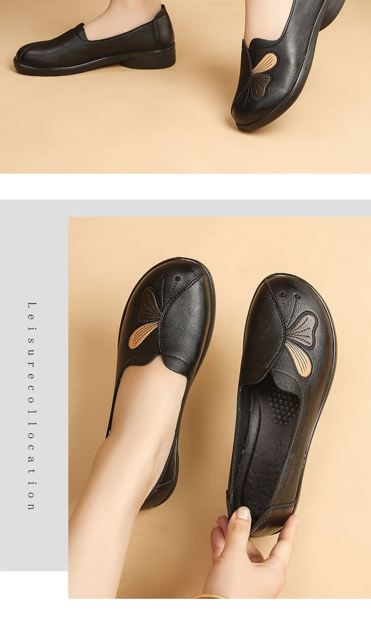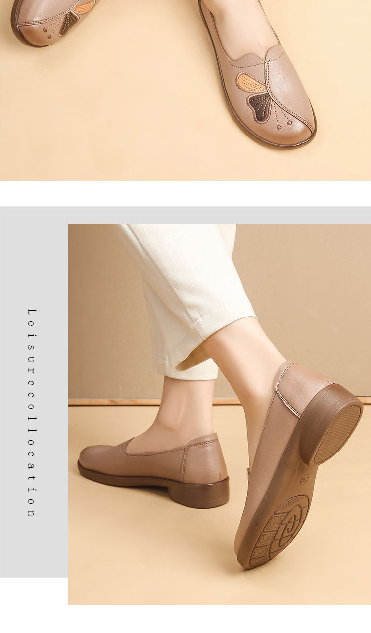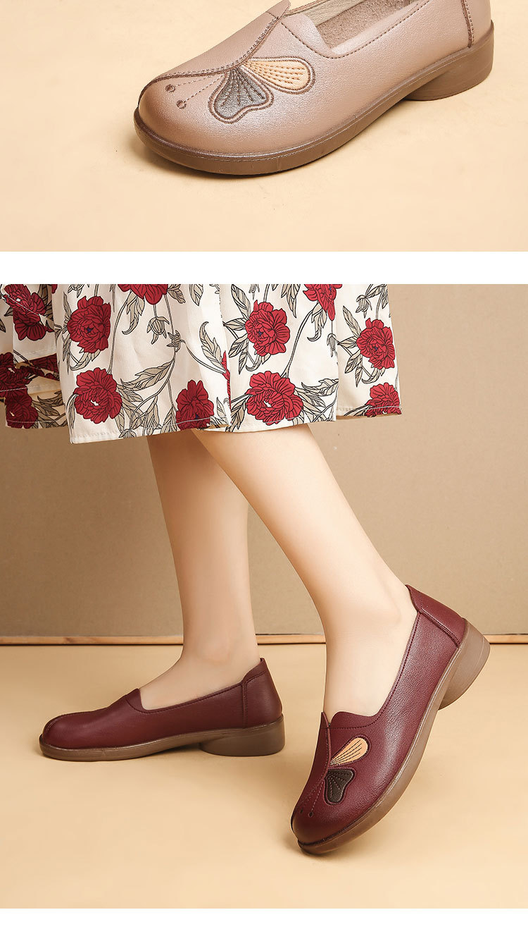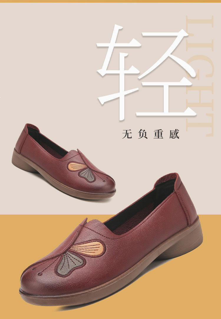 Choice Spring and Autumn Style Genuine Leather Flat Shoes for Middle-Aged and Elderly Women, Non-Slip Soft-Soled Leather Shoes for Seniors, Comfortable and Versatile