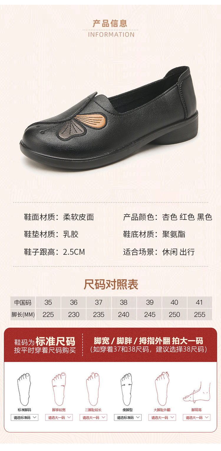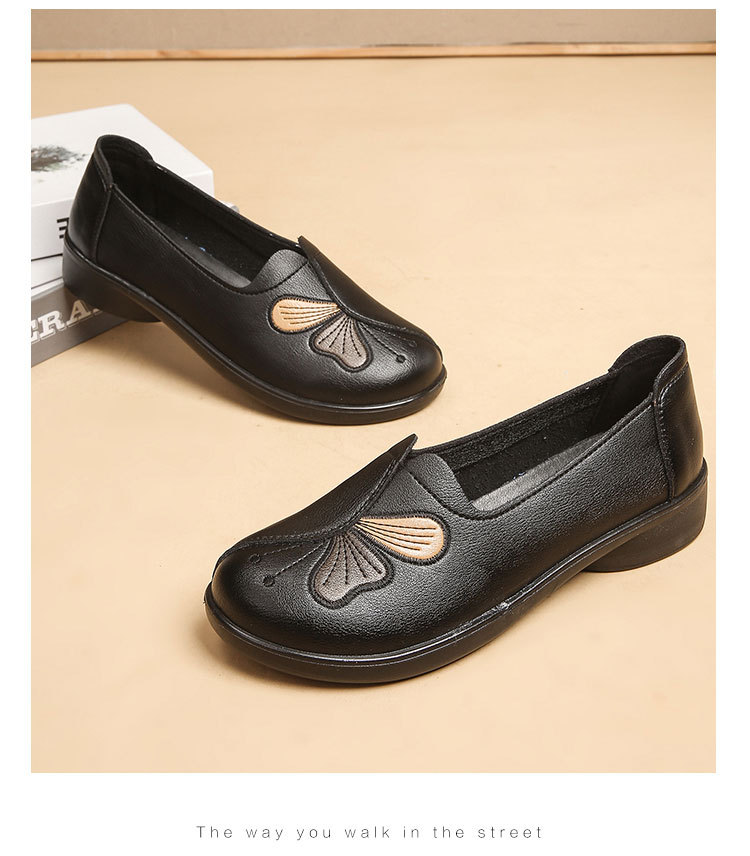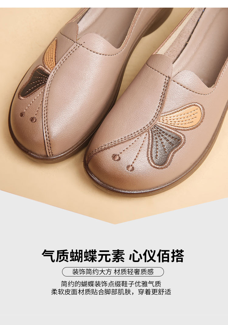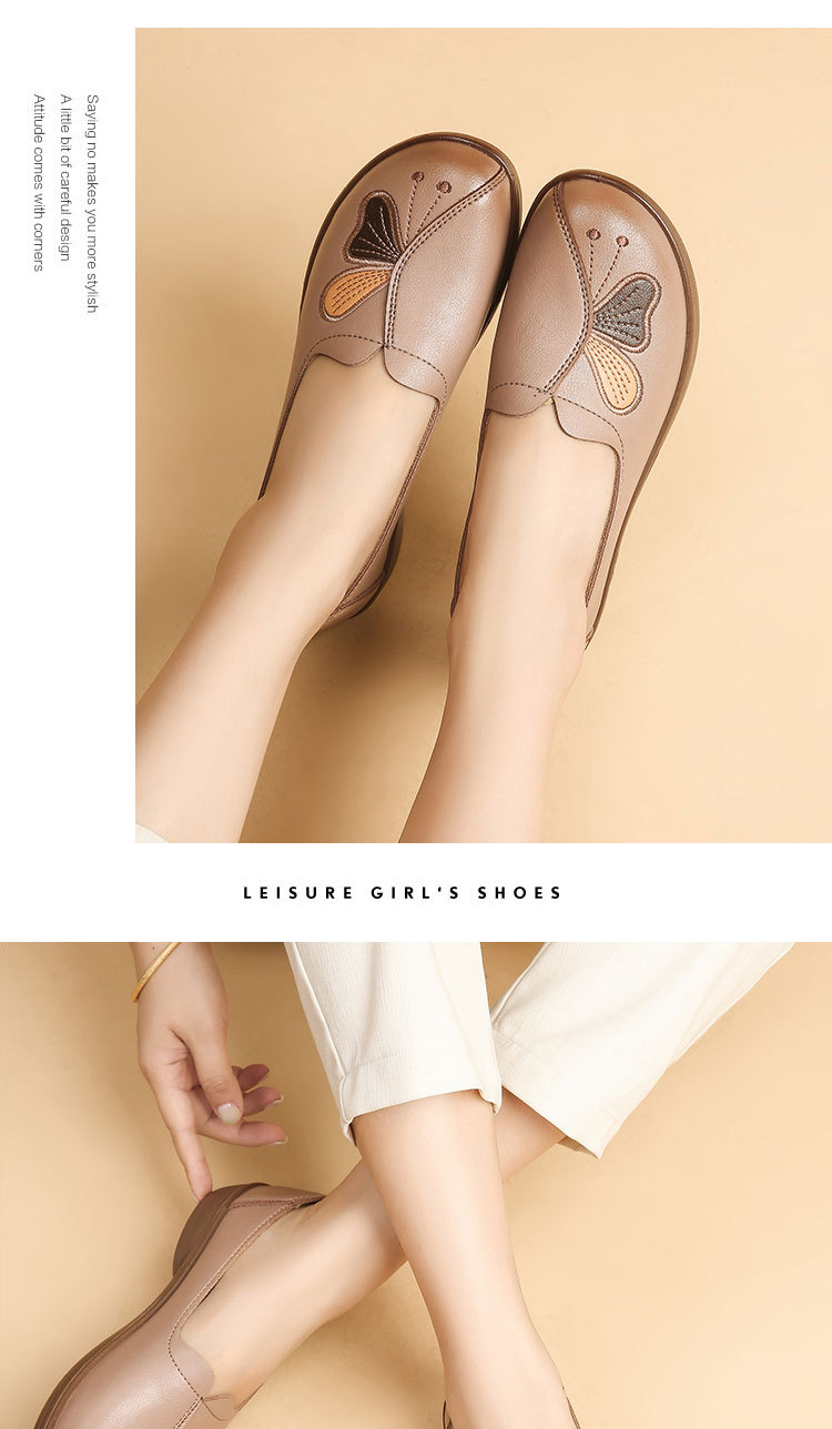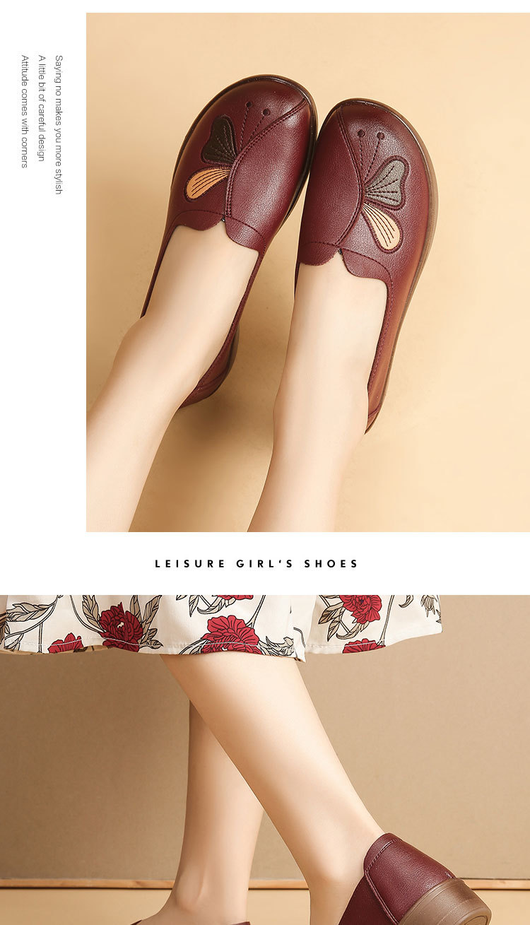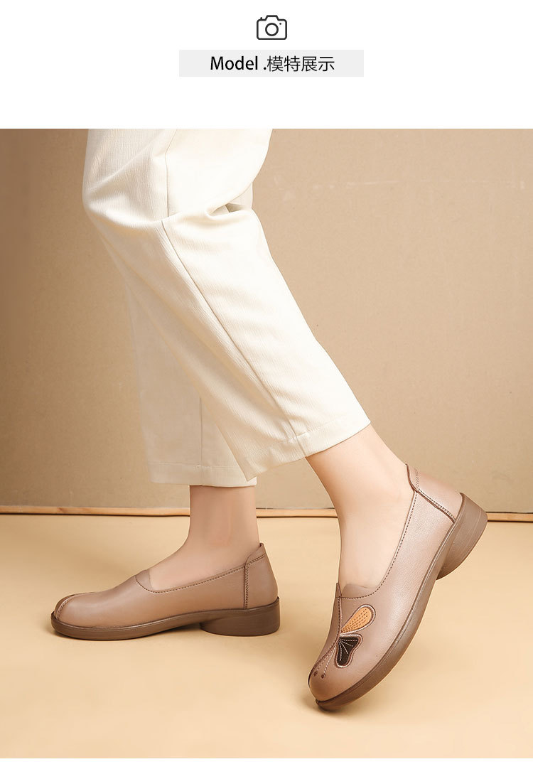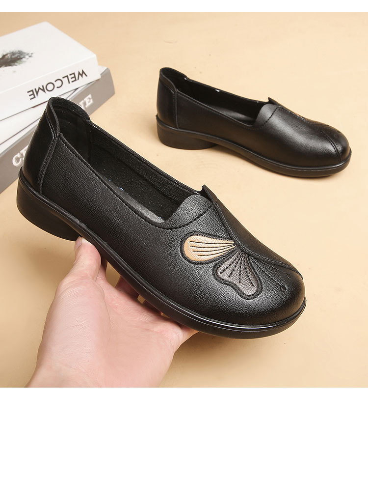 Choice Spring and Autumn Style Genuine Leather Flat Shoes for Middle-Aged and Elderly Women, Non-Slip Soft-Soled Leather Shoes for Seniors, Comfortable and Versatile
