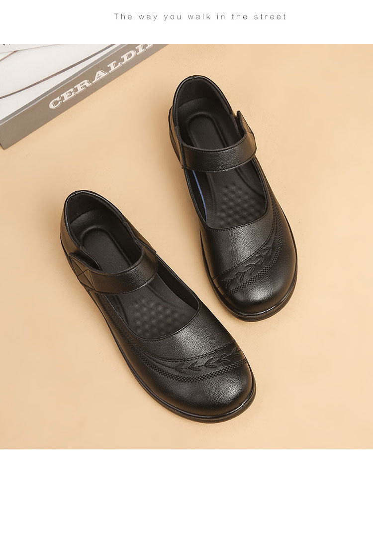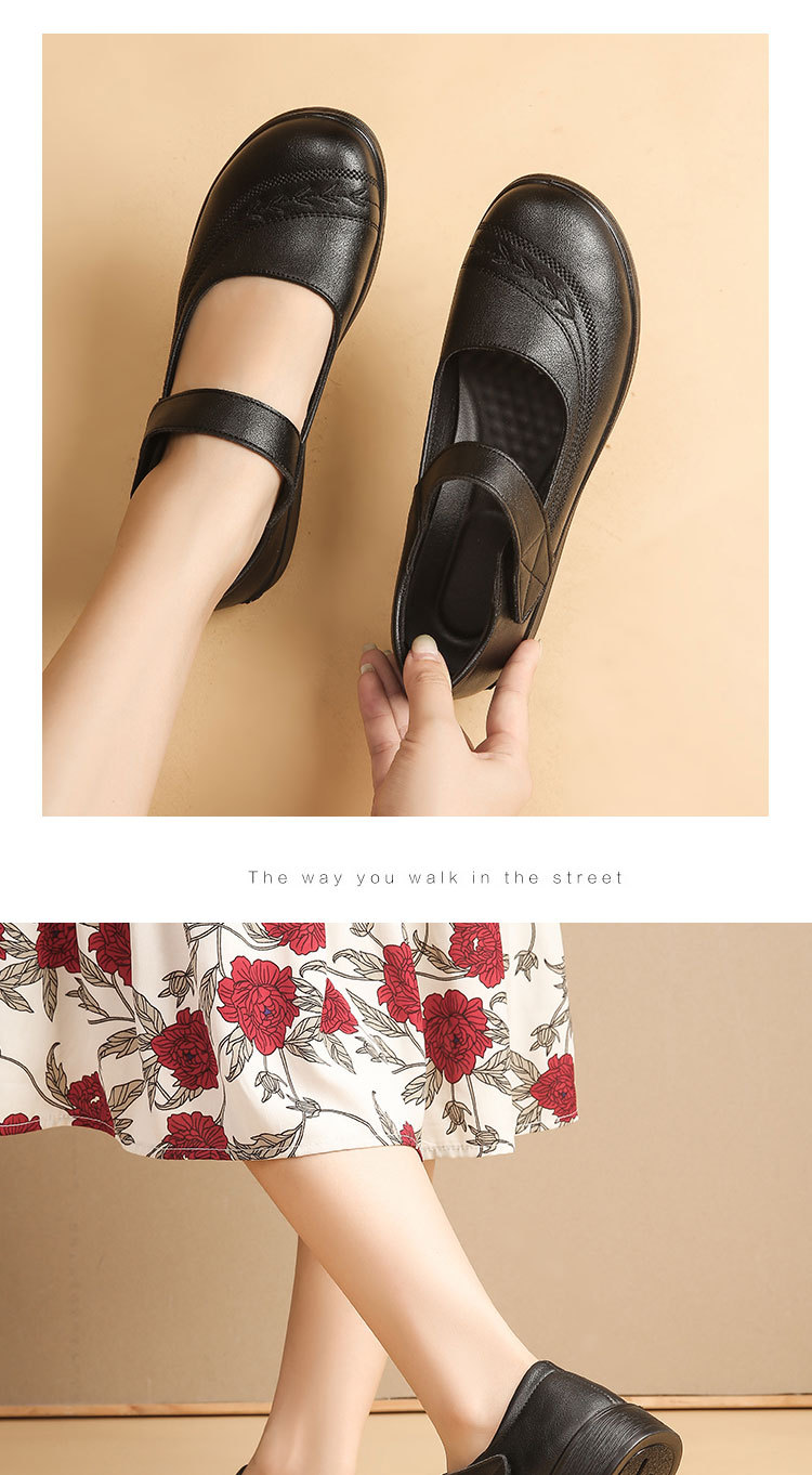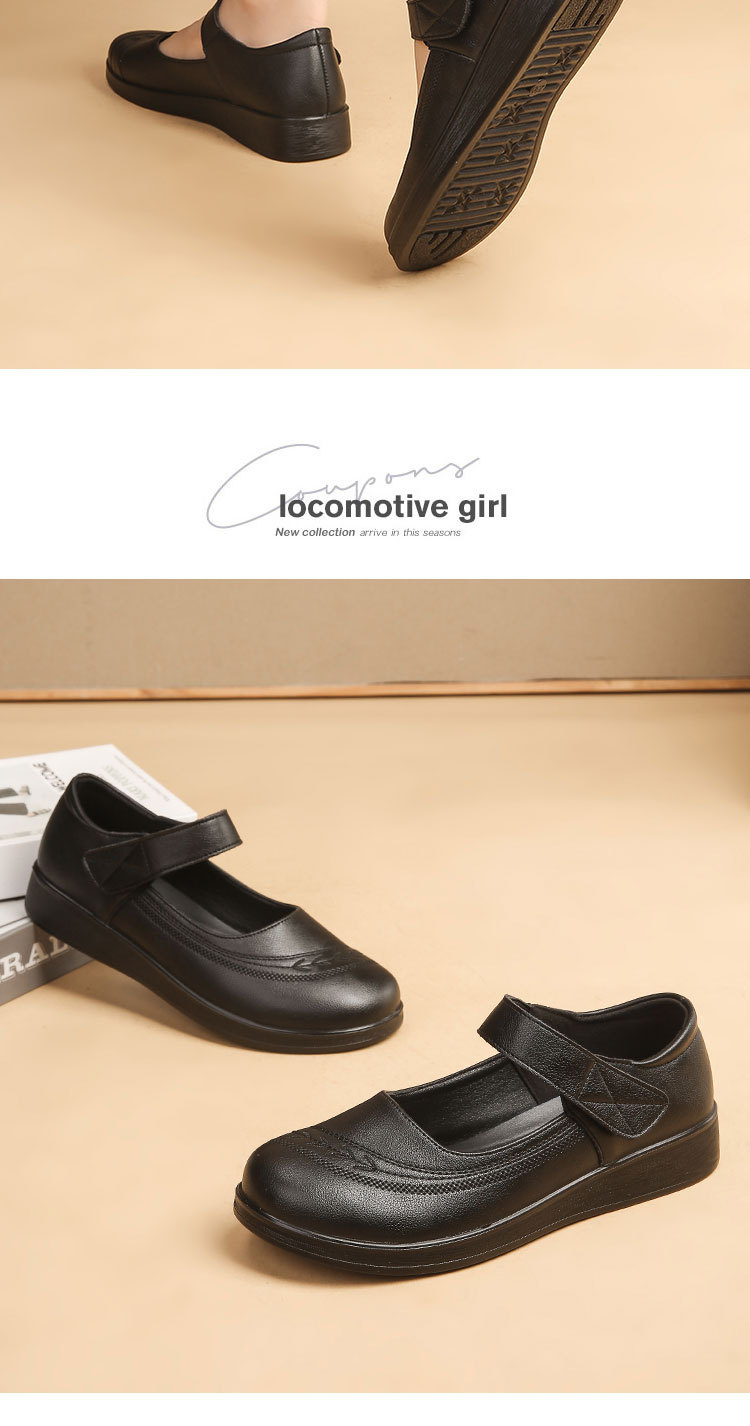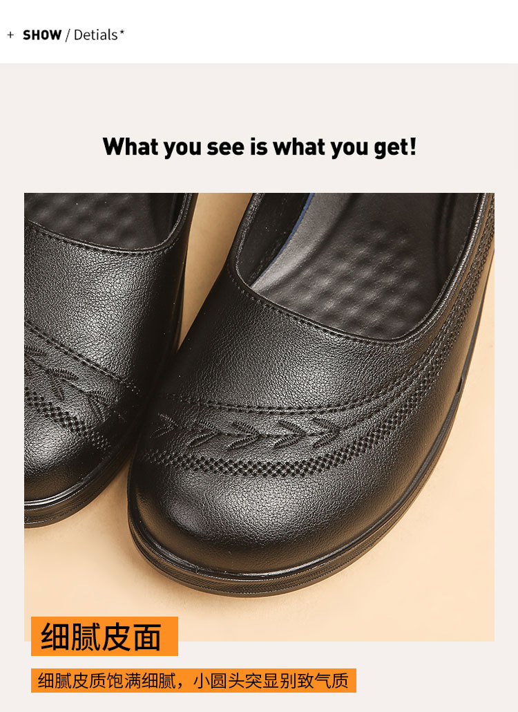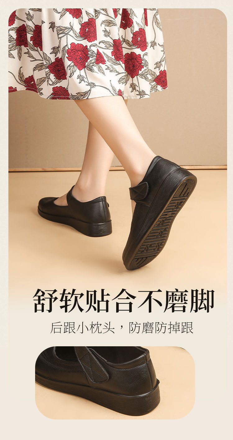 Choice First-Layer Cowhide Leather Shoes, Genuine Leather Soft-Soled Comfortable Flat Casual Women's Shoes, Large Size Mom's Leather Shoes with Shallow Toe