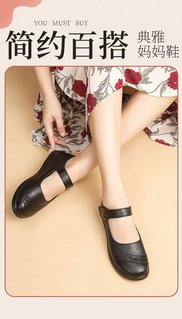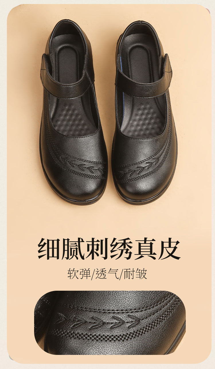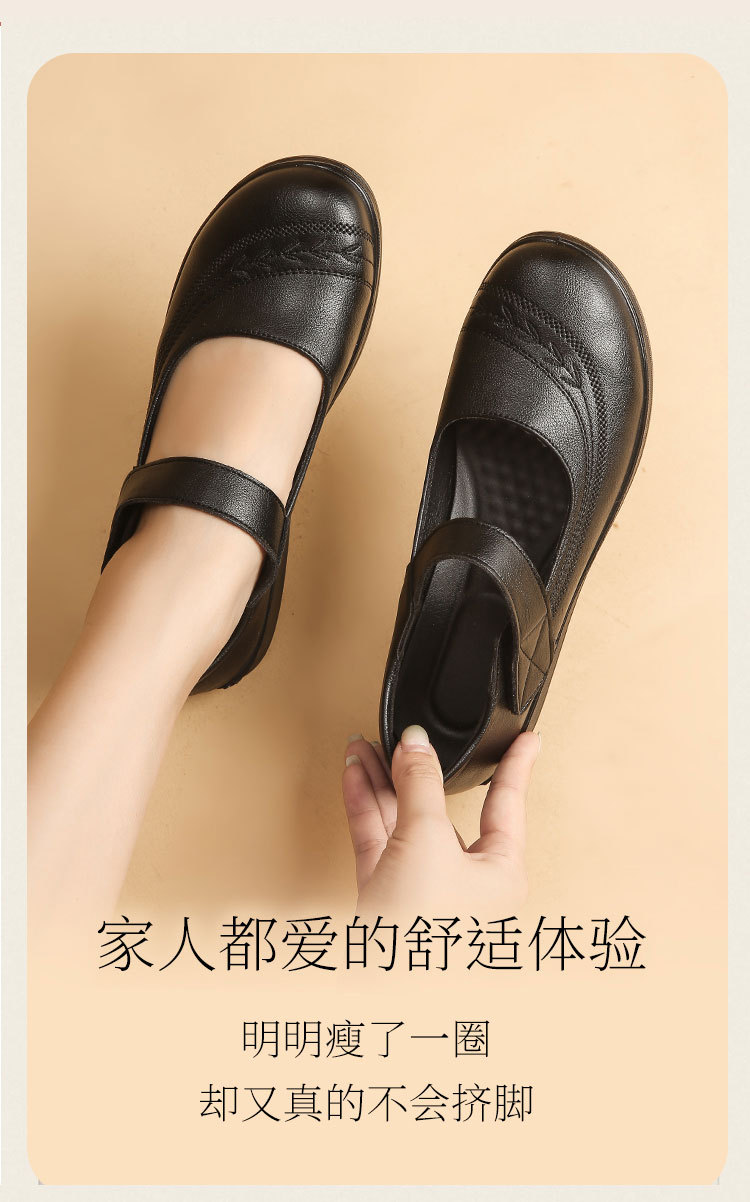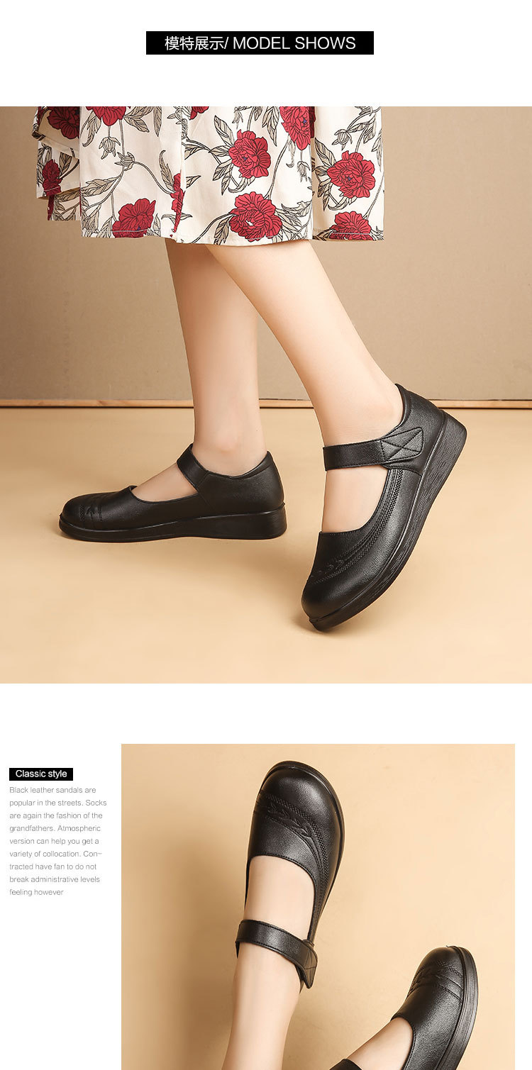 Choice First-Layer Cowhide Leather Shoes, Genuine Leather Soft-Soled Comfortable Flat Casual Women's Shoes, Large Size Mom's Leather Shoes with Shallow Toe
