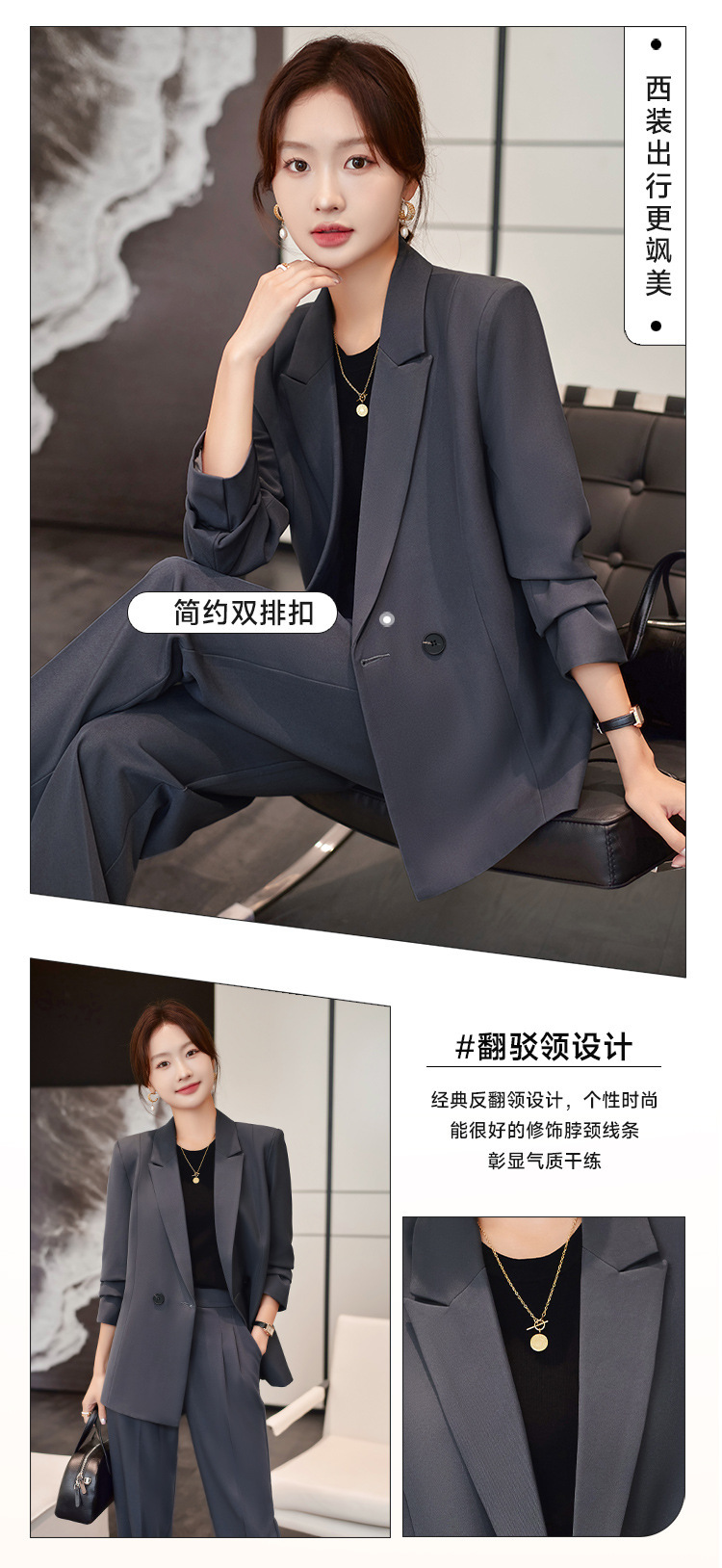 2024 Suit Suit Female College Student Civil Servant Interview Defense Professional Wear Shoulder Pad Suit Jacket Loose Formal Wear