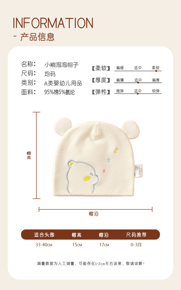 Baby Hat for 0-3 Months Newborns, Postpartum Hat, Double-Layer Head Protection Cap for Babies in the Delivery Room, Newborn Cap