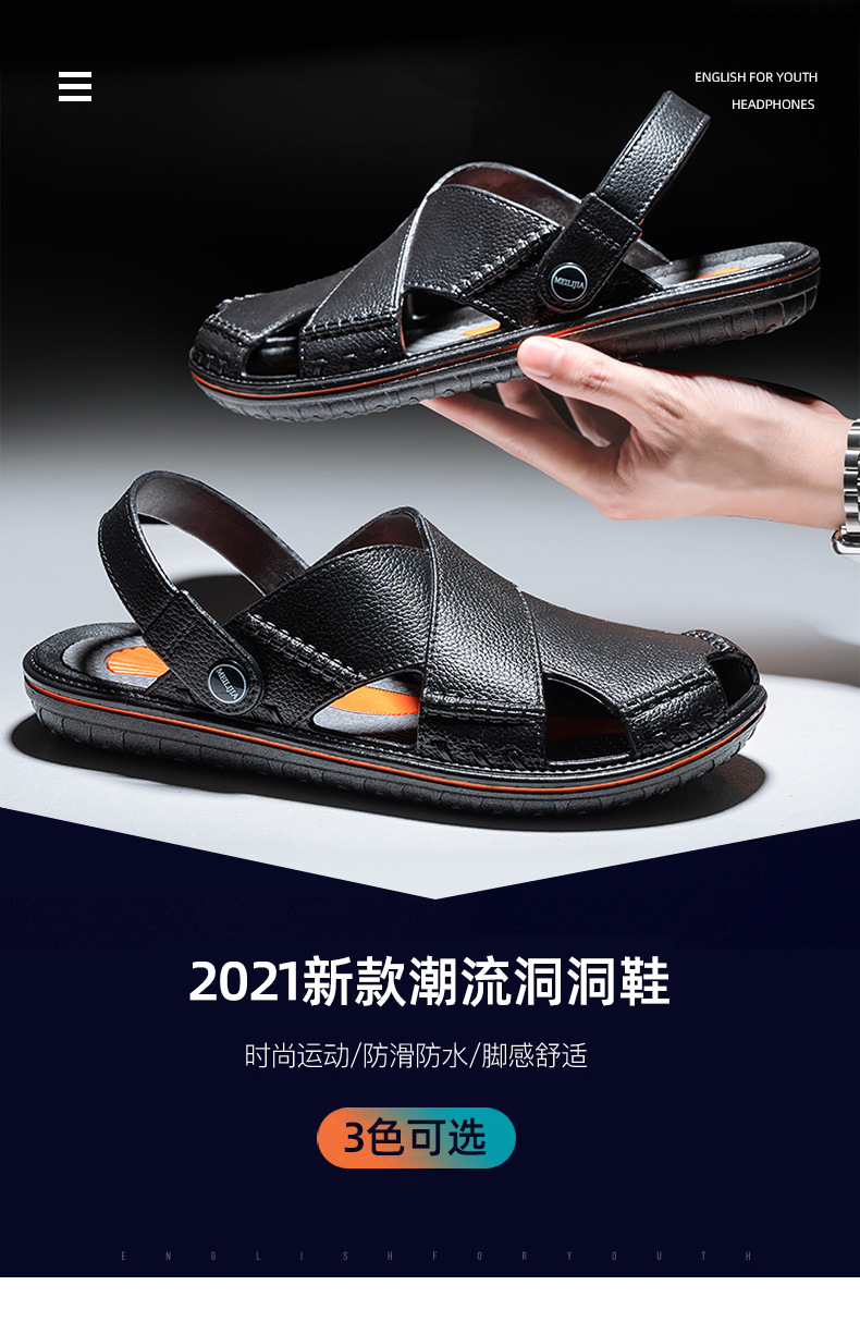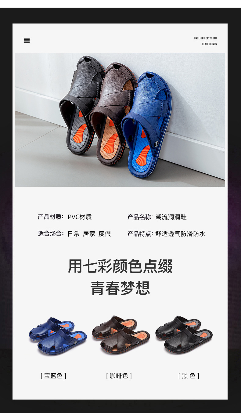 2023 New Hole Slippers Men's Breathable Dual-Purpose Baotou Korean Chef Version Anti-Slip Work Sports Running Sandals Men's