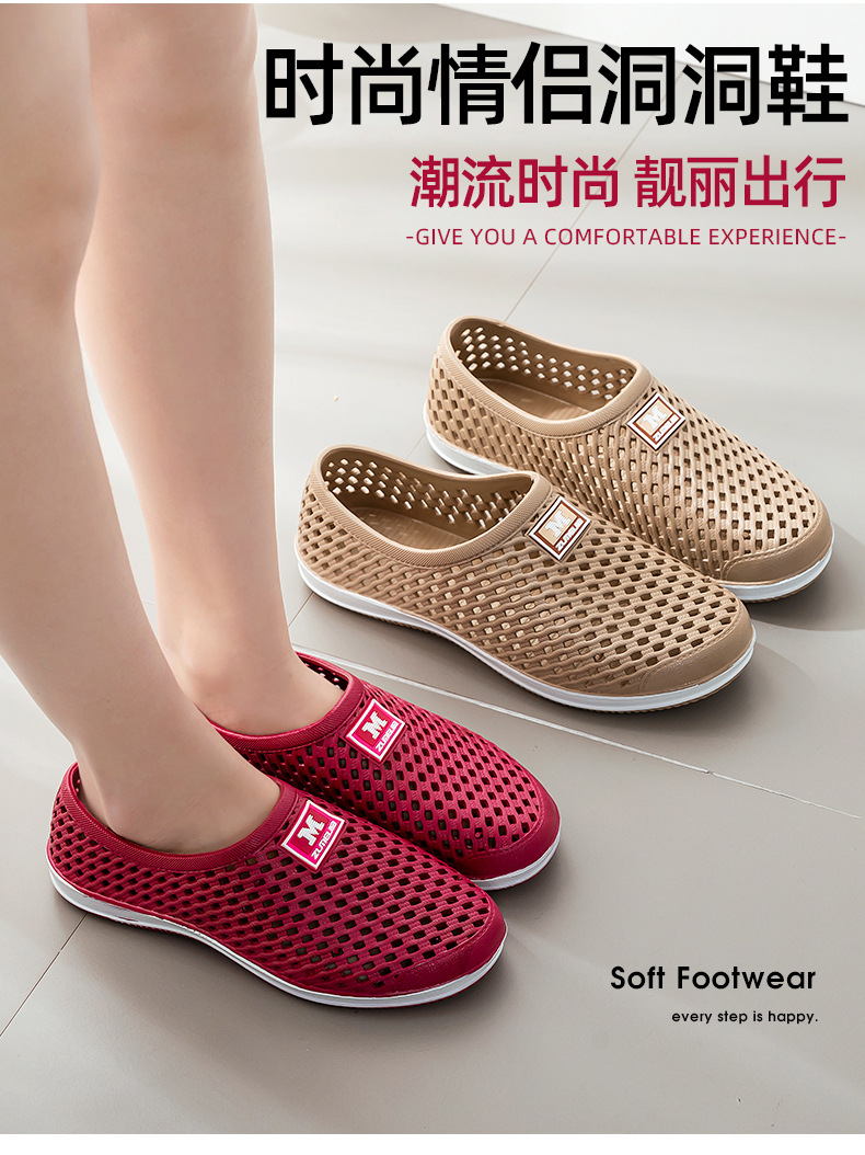 2023 new hole shoes men's and women's breathable closed toe Korean style couple non-slip chef work sports running sandals