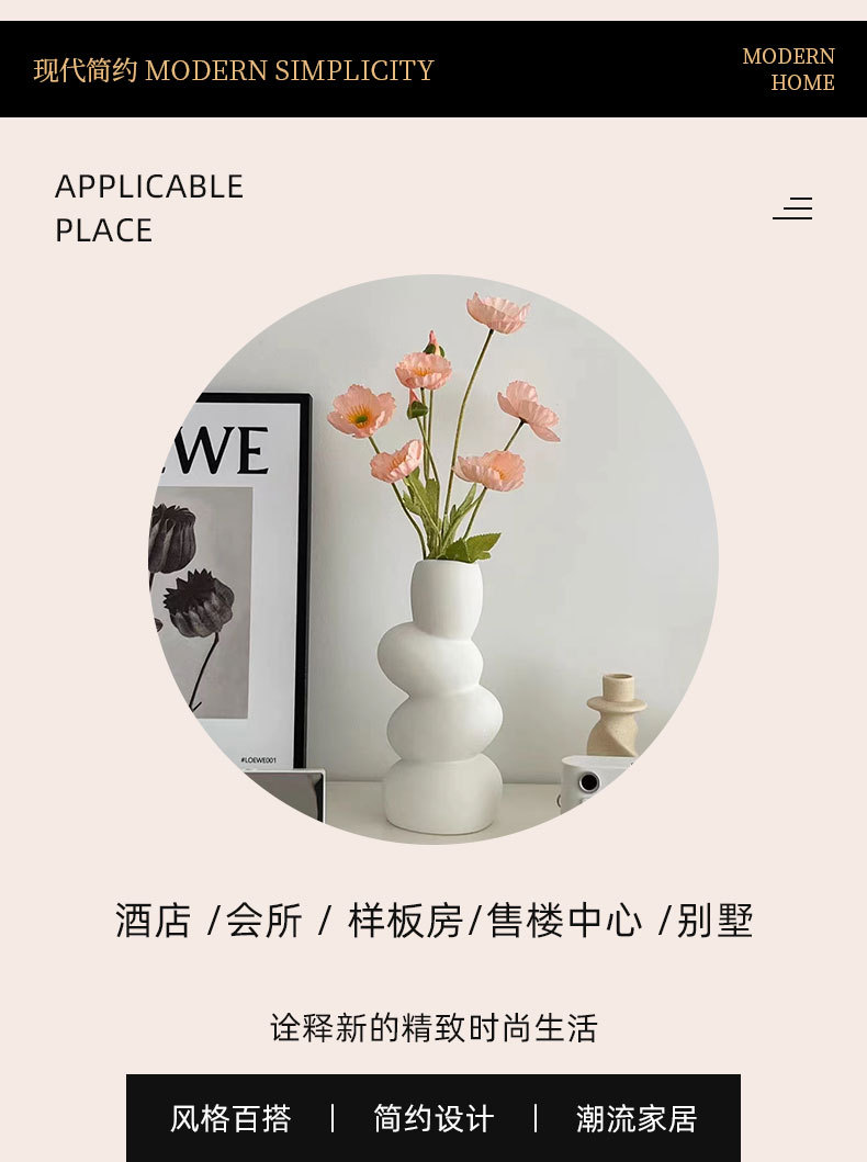 Choice Ins Style Ceramic Vase Flower Arrangement Ornaments High-End Niche Accessible Luxury Vase Ceramic Home Decoration Flower Vessel