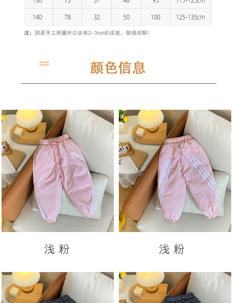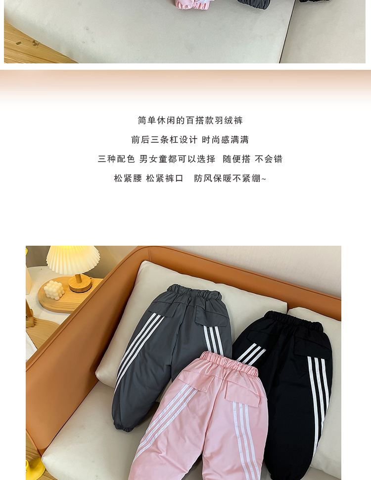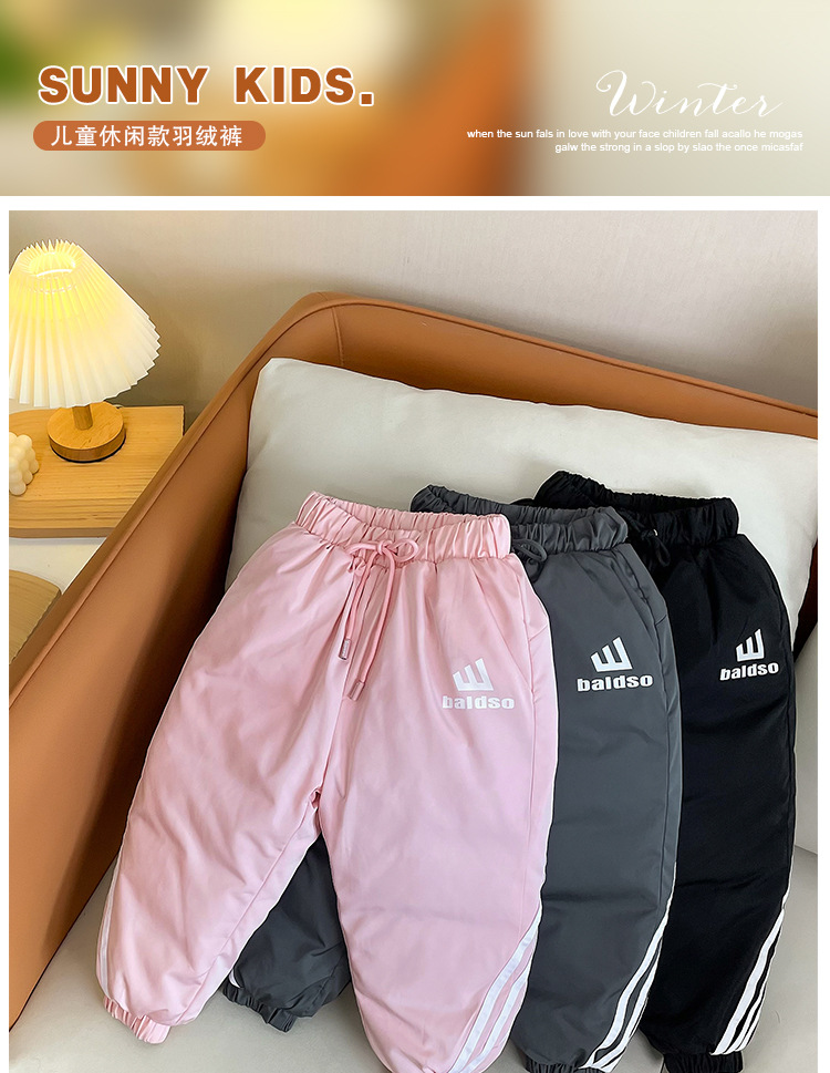 2023 New Kidsren's down Silk Pants for Men and Women, Small and Medium-Sized Kidsren, Thickeneded, Warm, Loose, Casual Kidsren's Pants