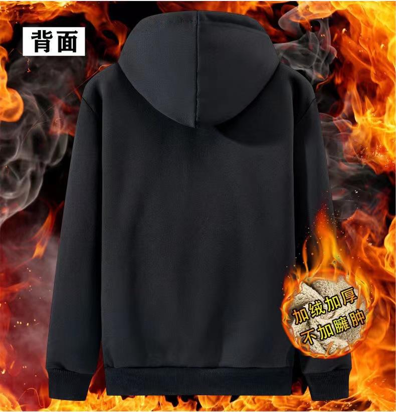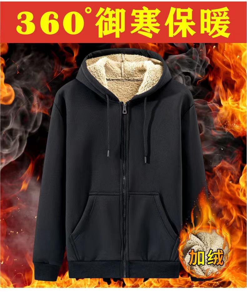 2024 Fall/Winter fleece-lined Thickened Casual Fashion Zipper Cardigan Men's Solid Color Loose plus size Hooded Jacket