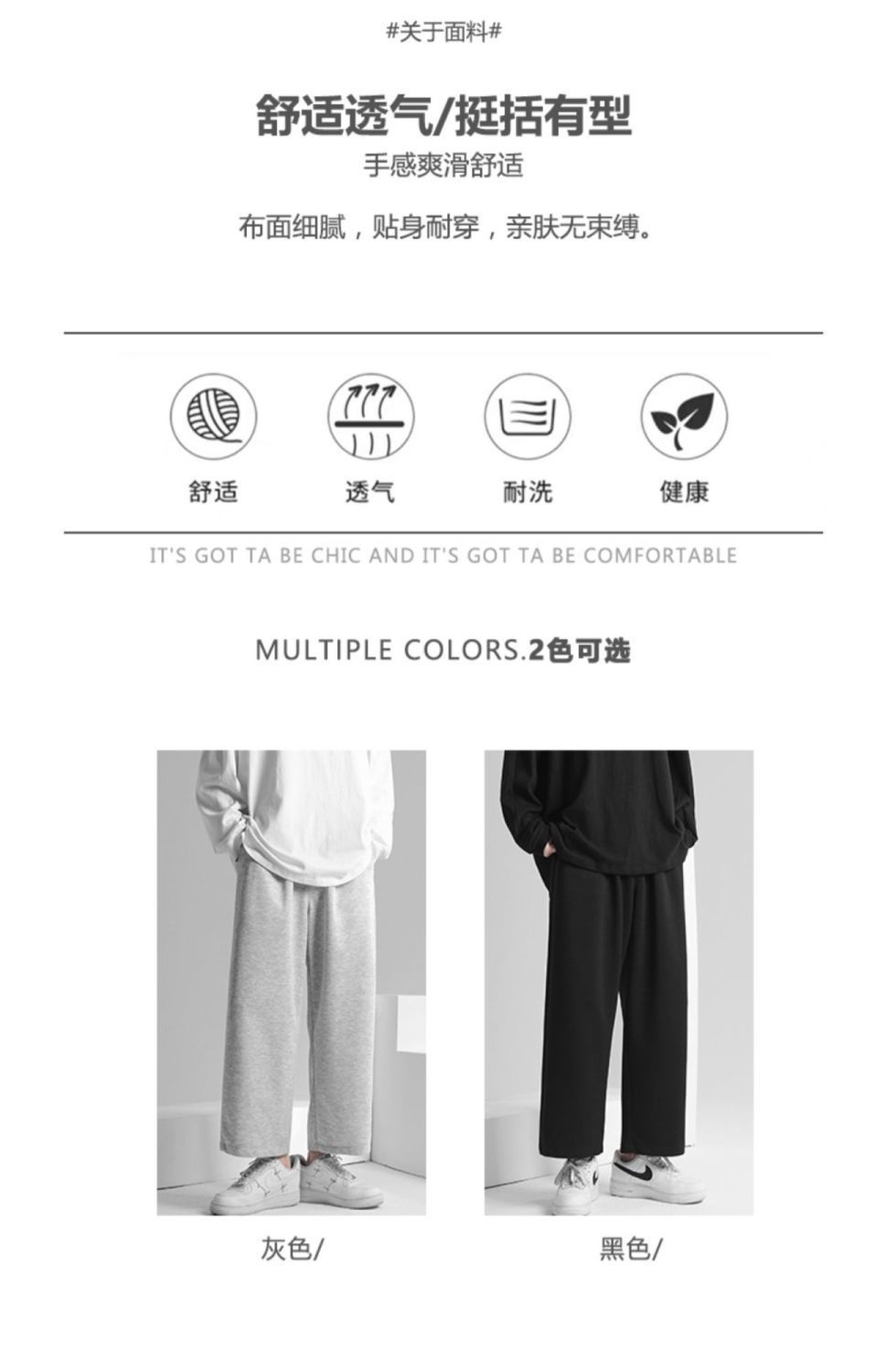 Men's All-match Solid Color Sports Pants Men's Korean-style Fashionable Straight Men's Grey Sweat Pants Casual Ins Loose Pants
