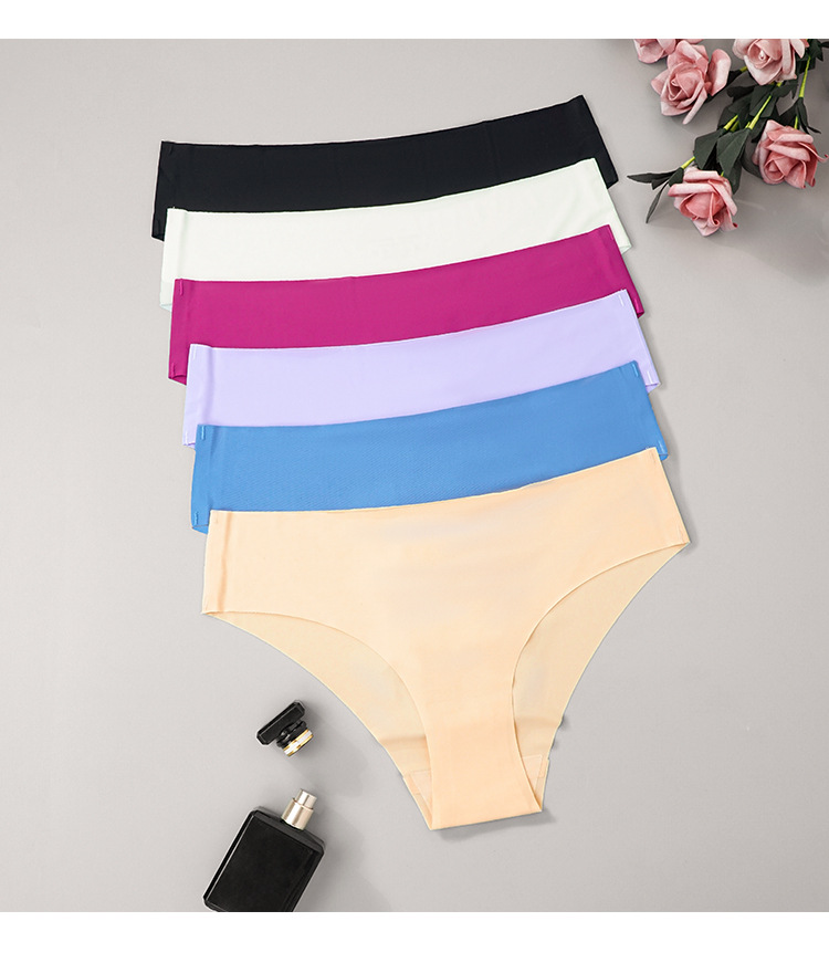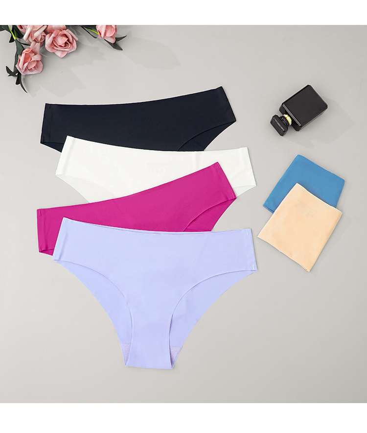 Amazon Cross-Border Women's Seamless Ice Silk Underwear One-Piece Large Size European and American Low-Waist Half-Covering Sports Briefs