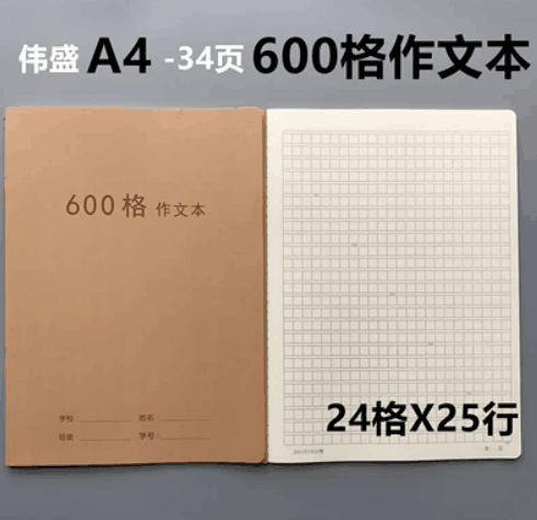 Weisheng 600-grid text A4 large thick cowhide writing book High School junior high school primary school students 600-word square book