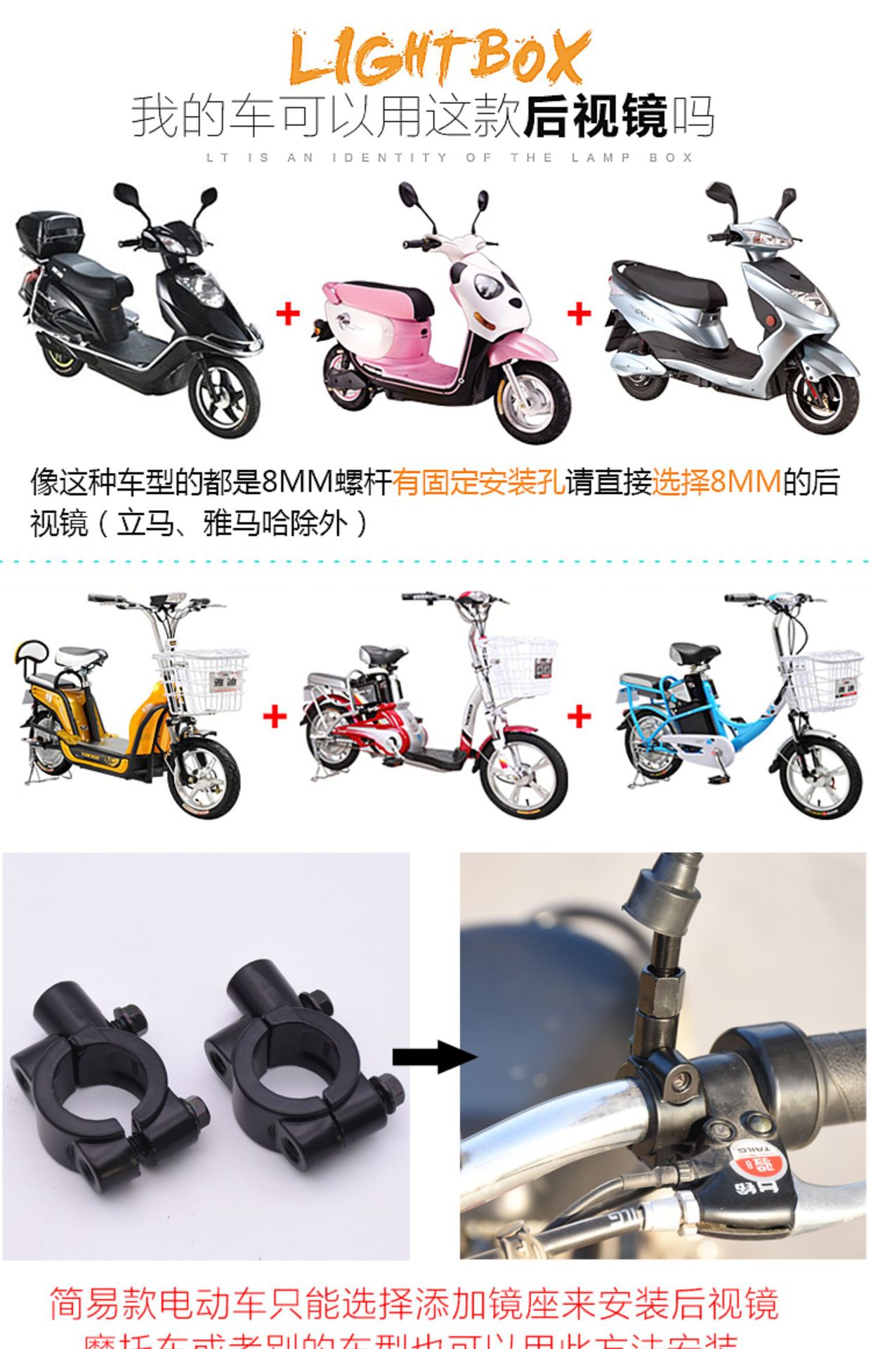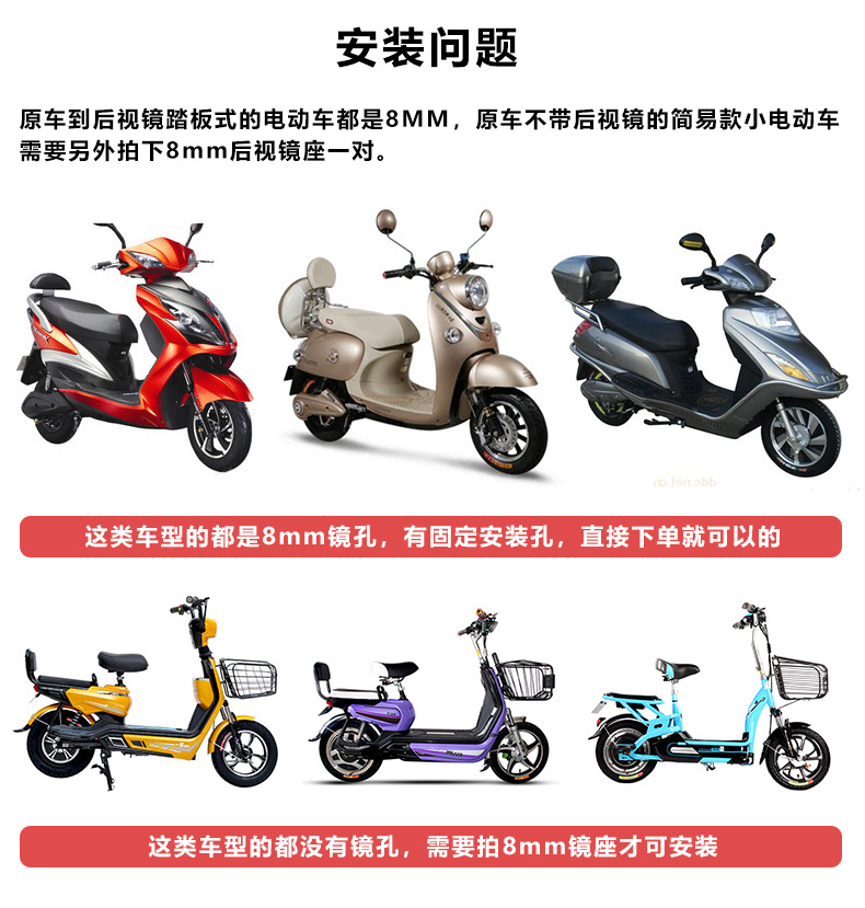Choice Electric Vehicle Rearview Mirror, Motorcycle Reflector, Battery Car Scooter, High-Definition Reversing Mirror, Tricycle Modification, Universal