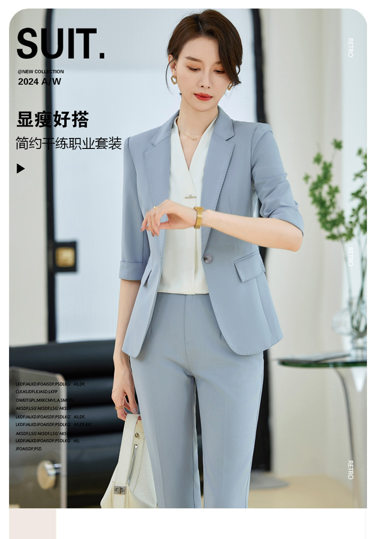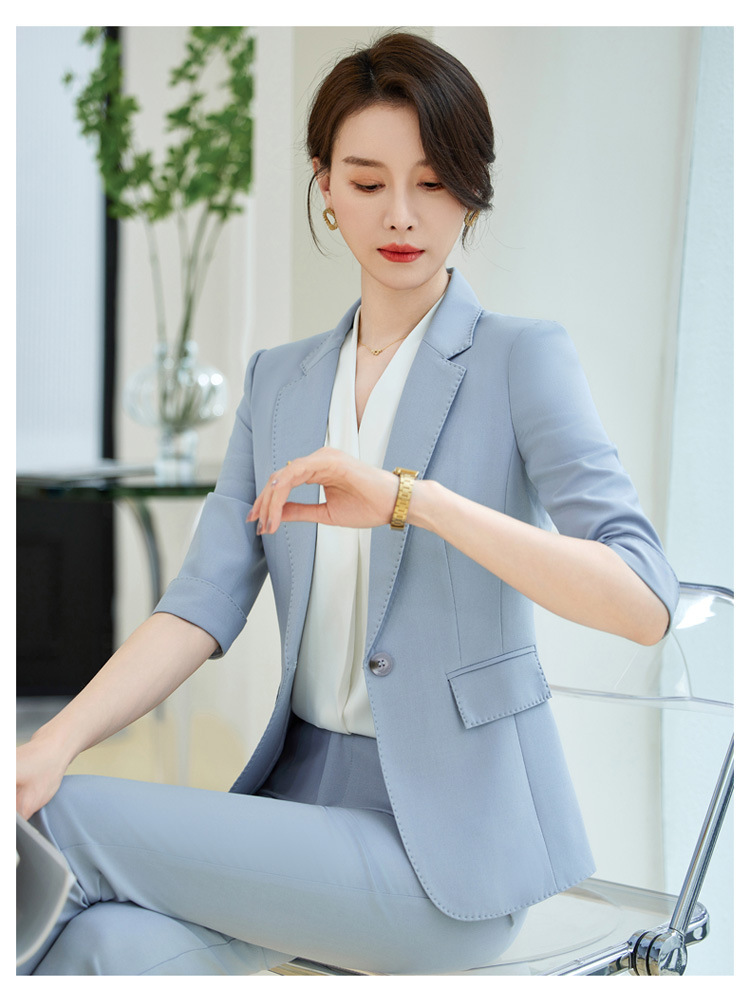 Blue suit suit women's 2024 new summer elegant high sense small suit 3/4 sleeve spring and summer professional formal wear