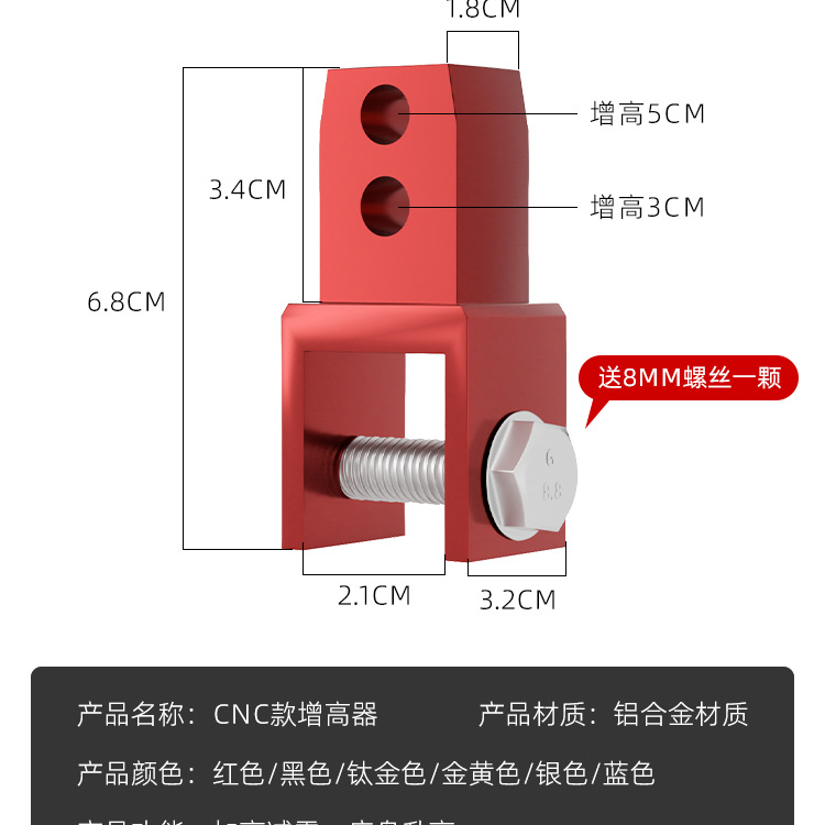 Packaging specifications: Cnc 8mm shock absorber height increaser 1