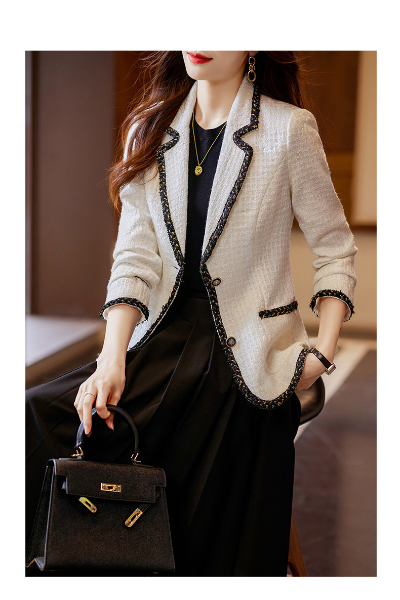 Choice Chanel style white suit jacket for women Spring and Autumn New style small elegant socialite high-grade casual suit top