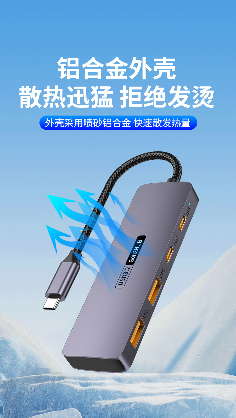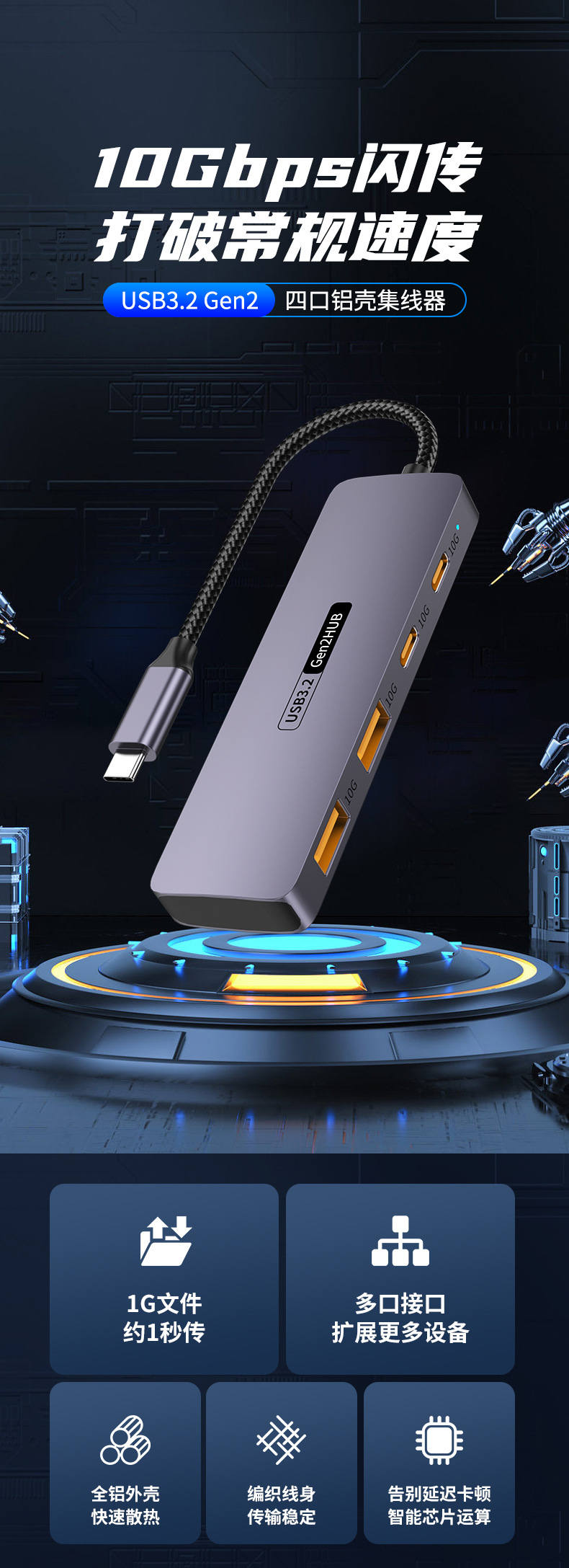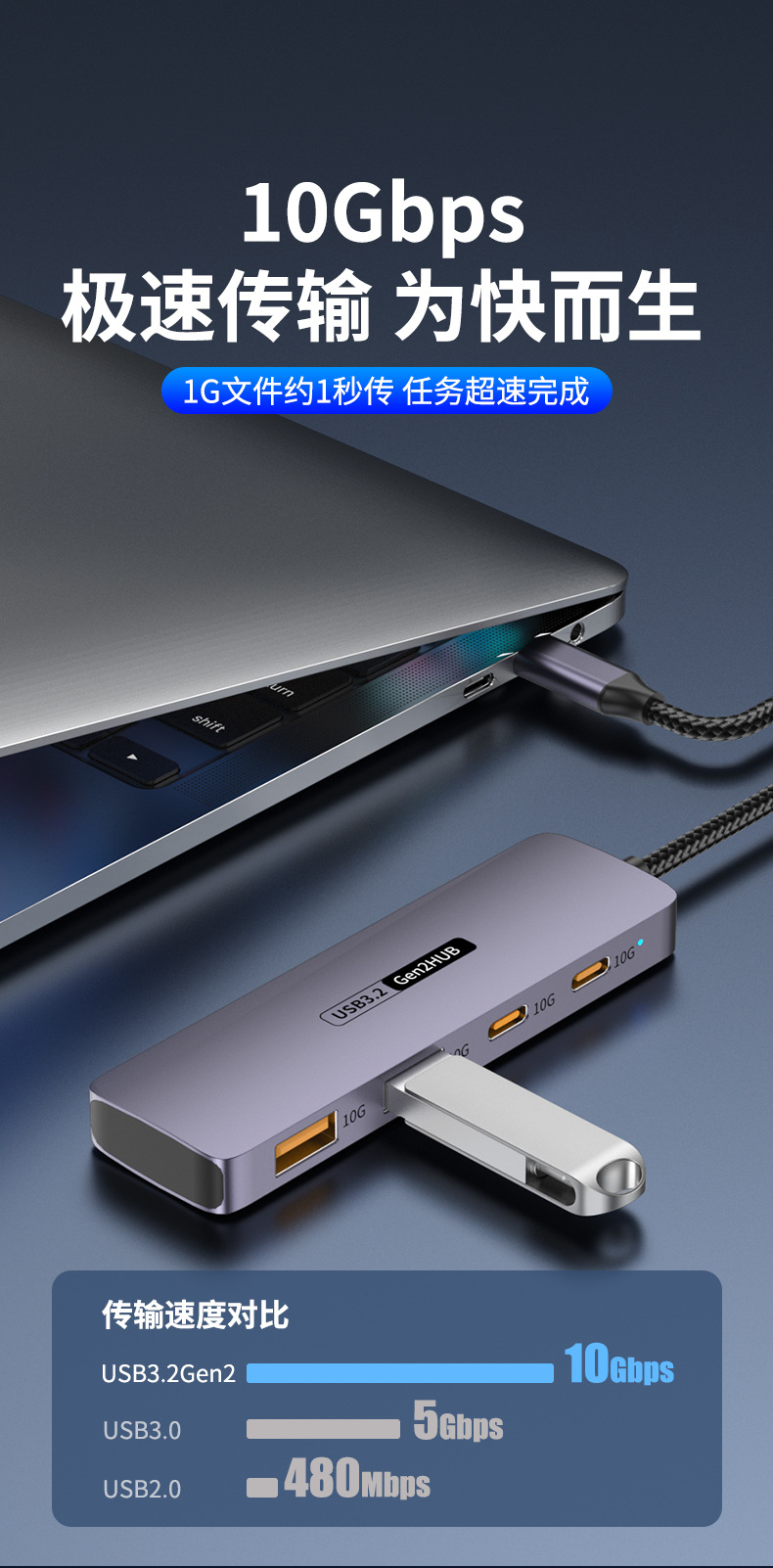 10g High-Speed Docking Station Type-C Hub Splitter Suitable for Multiple Interfaces of Mobile Phones and Computer Peripherals