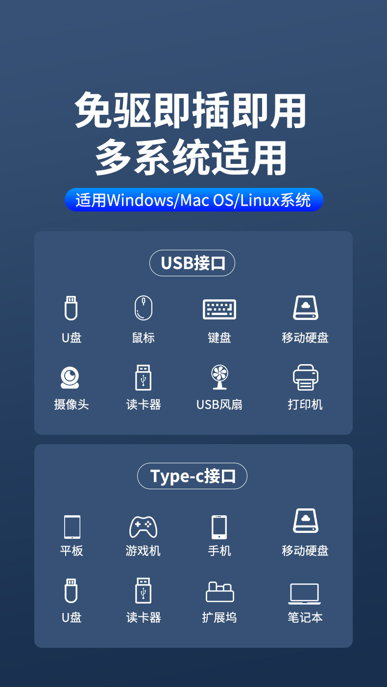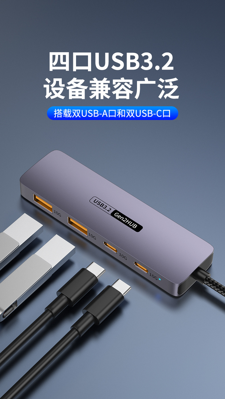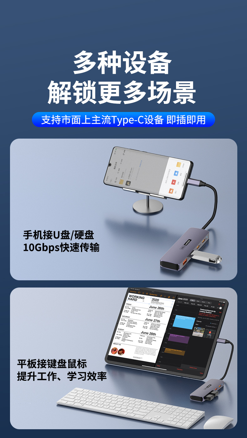 10g High-Speed Docking Station Type-C Hub Splitter Suitable for Multiple Interfaces of Mobile Phones and Computer Peripherals