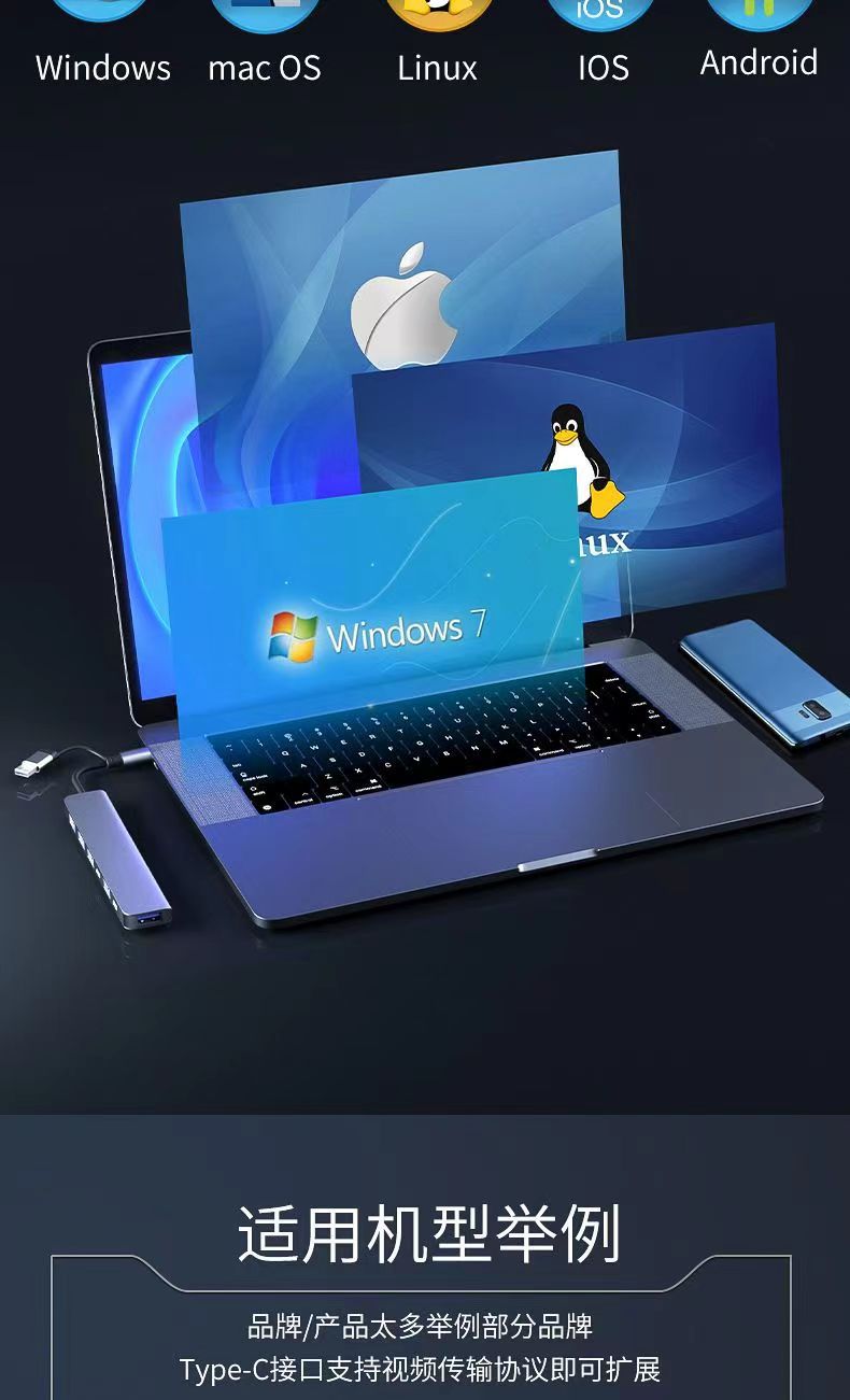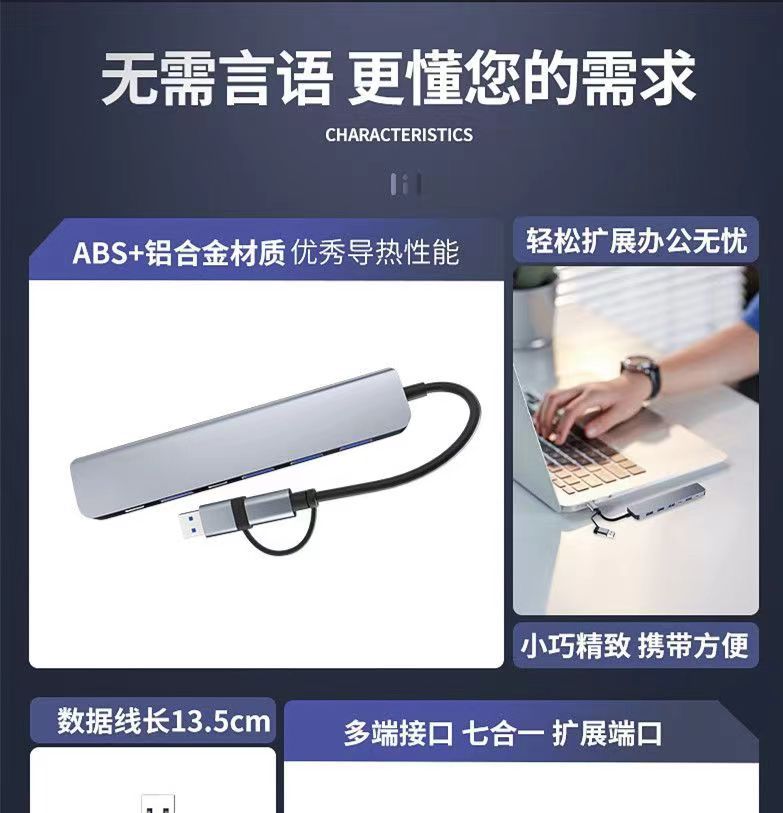Factory Wholesale Hub Hub Type-C Splitter Expands Multiple Interfaces with Aluminum Alloy Shell Suitable for Computers
