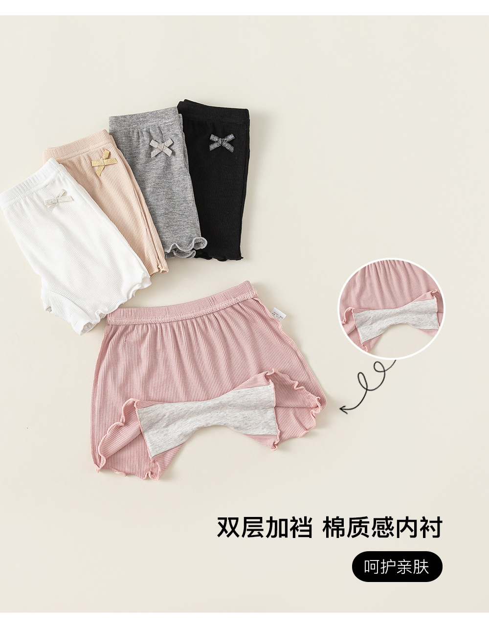 Yibao Kidsren's Clothing Kidsren's Leggings Kidsren's Clothing Bow Fungus Shorts Summer Little Girl Pure Color Safety Pants